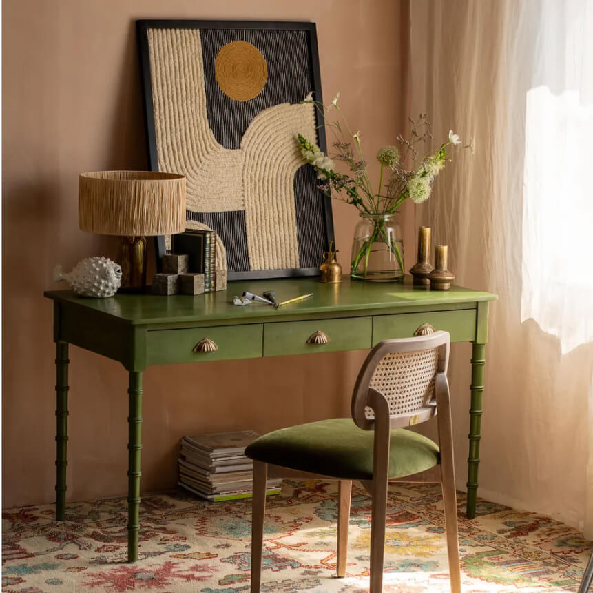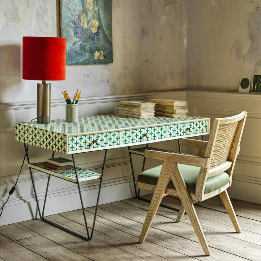 The Farley desk from Soho Home is crafted with a refined silhouette, pairing a natural wood finish with subtle detailing that echoes the brand’s members’ club aesthetic. Both practical and elegant, it brings a sense of understated luxury to home offices, blending seamlessly into contemporary or classic interiors.