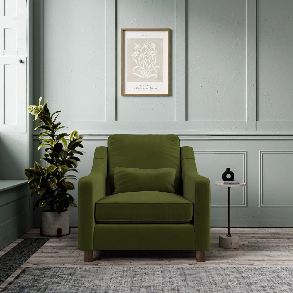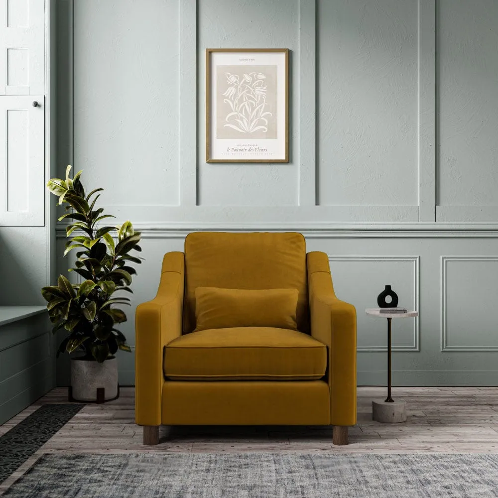 The Hampton Armchair offers comfortable lounging with its high back cushions and swooping armrests. Its medium density foam core seat cushions provide supportive comfort, while the soft fibre back cushions add relaxation. The solid beech wood legs ensure stability, and the hardwood frame construction delivers lasting durability. W77 x D95 x H85 cm