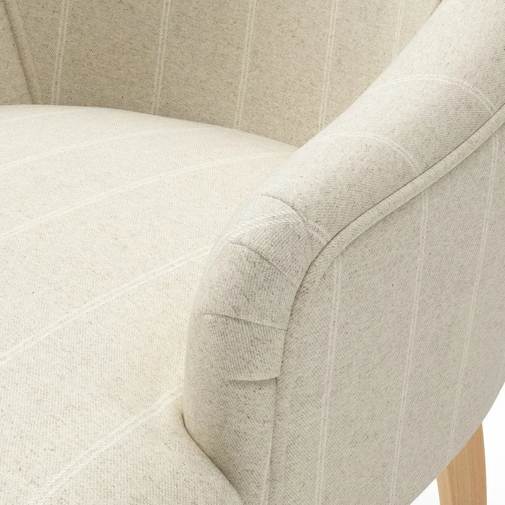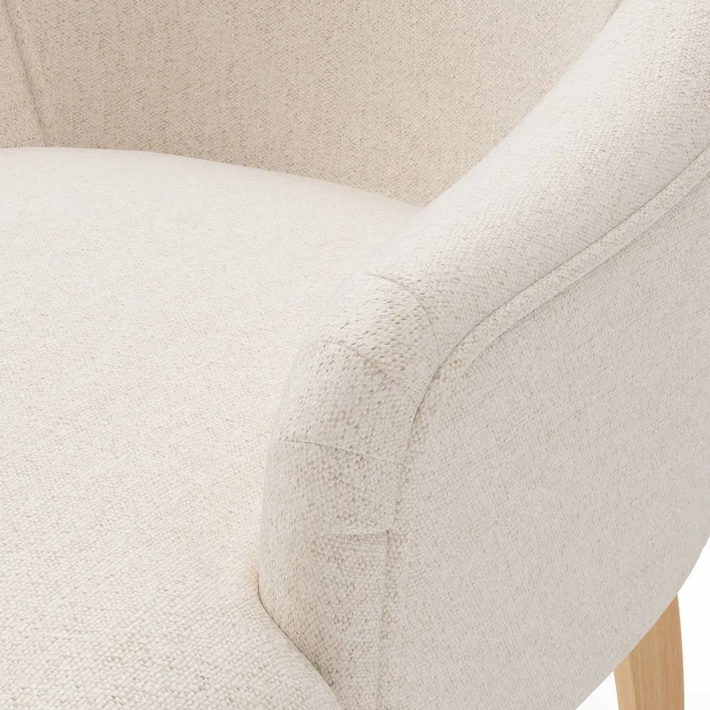 The armchair offers exceptional comfort with its soft, sweeping curves and relaxed design. Hand-turned beech wood legs provide sturdy support while adding natural warmth to the piece. The House Weave upholstery combines durability with visual appeal, making it suitable for both casual and formal settings.