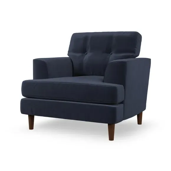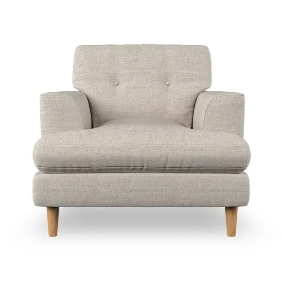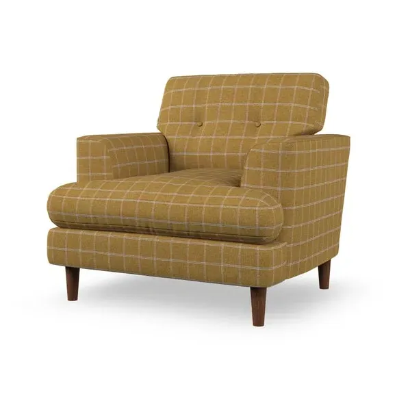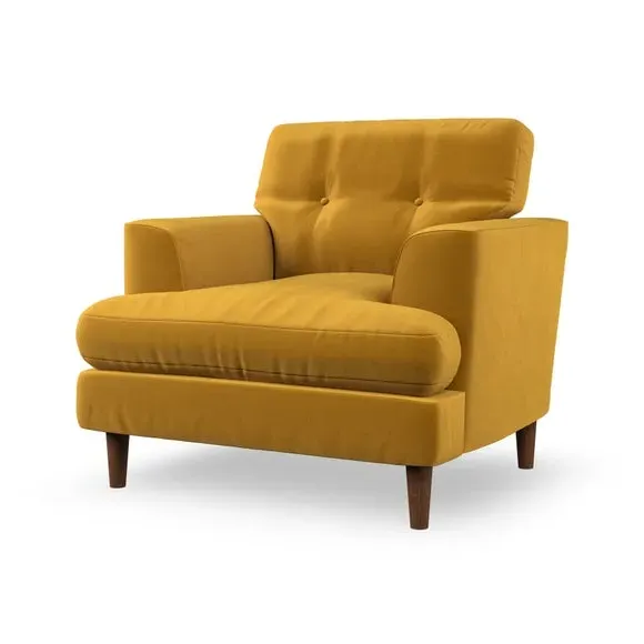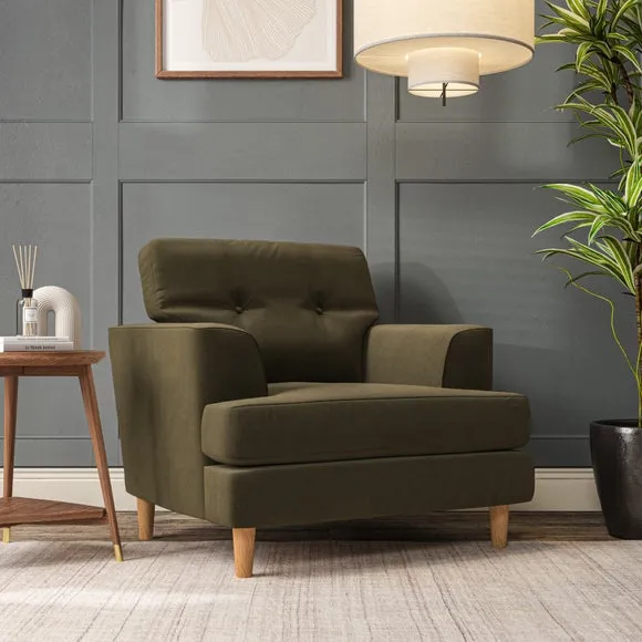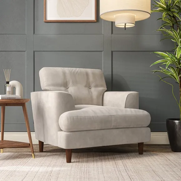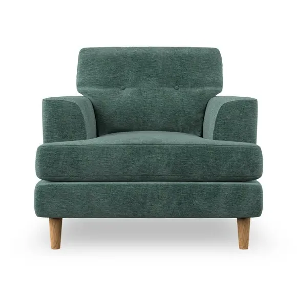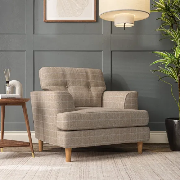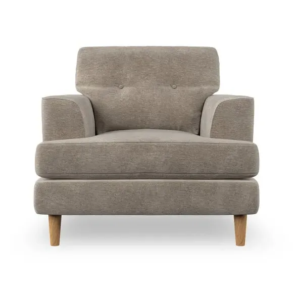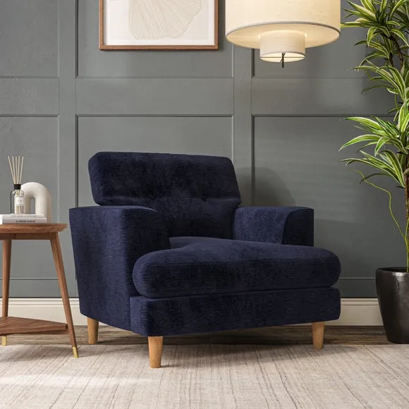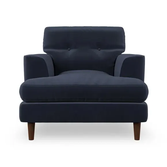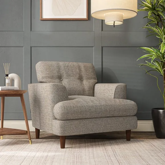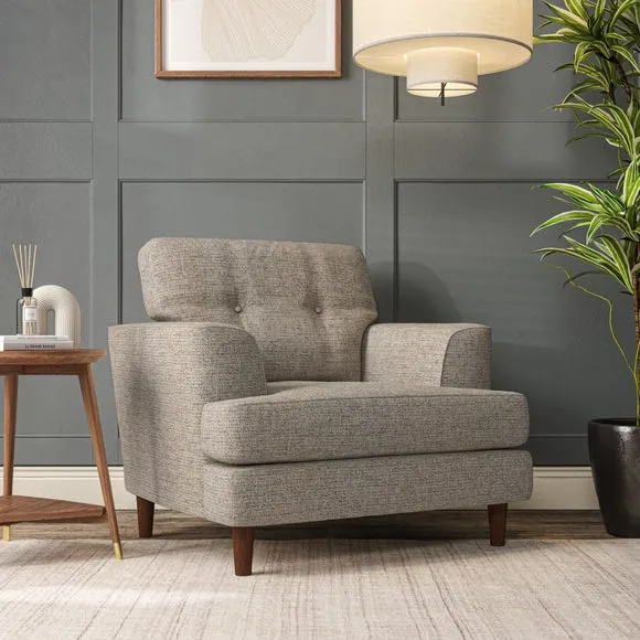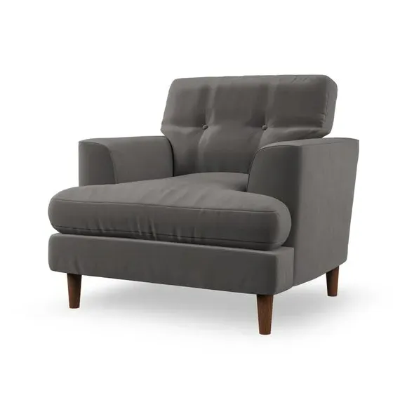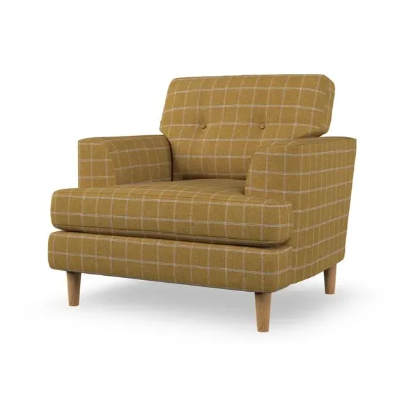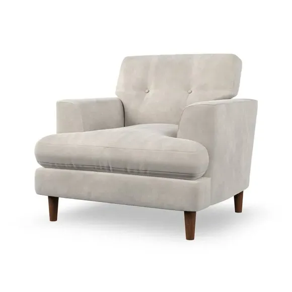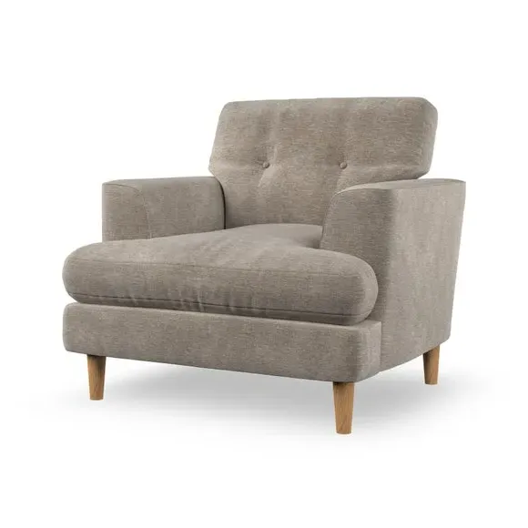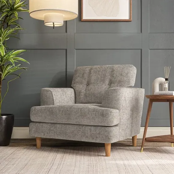 * Scandi inspired design* High legs* Button pull detailing* Choose the cushion filling, leg colour and fabric The Cooper Armchair is a compact yet striking piece that embodies Scandinavian-inspired sophistication. Featuring clean lines, an elegant high-leg frame, and a generous T-shaped seat cushion, it’s a stylish addition to any room. The fibre-filled back cushion, adorned with button-pull detailing, provides excellent support and comfort. Customise this armchair to suit your décor with a choice of fabrics, leg finishes, and cushion fillings.