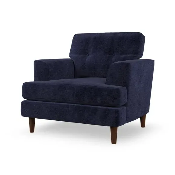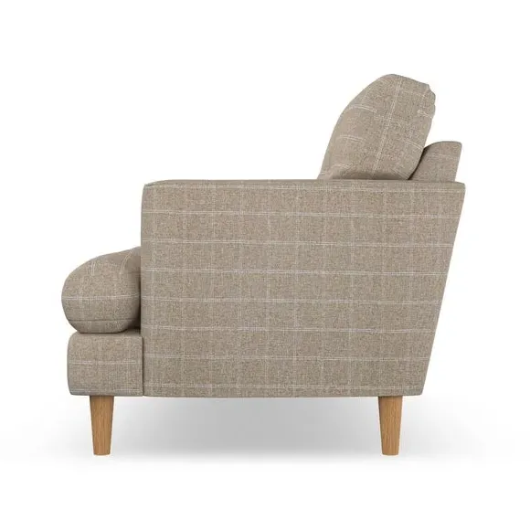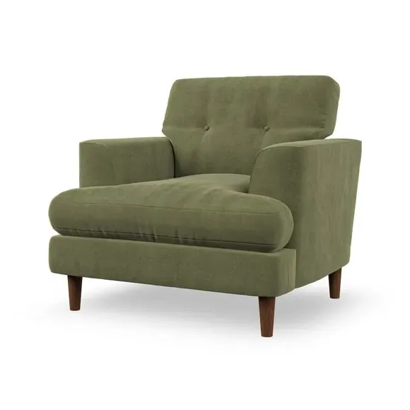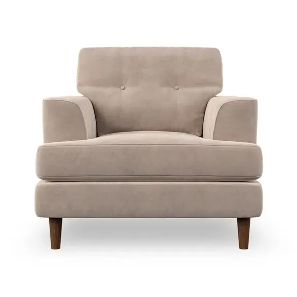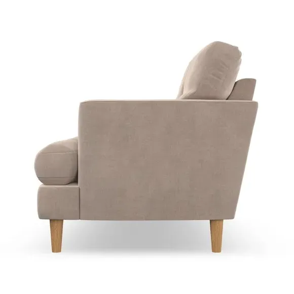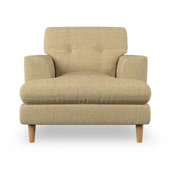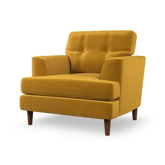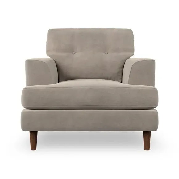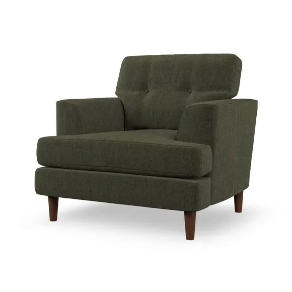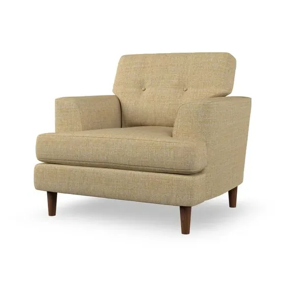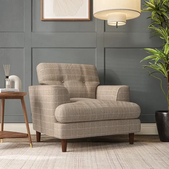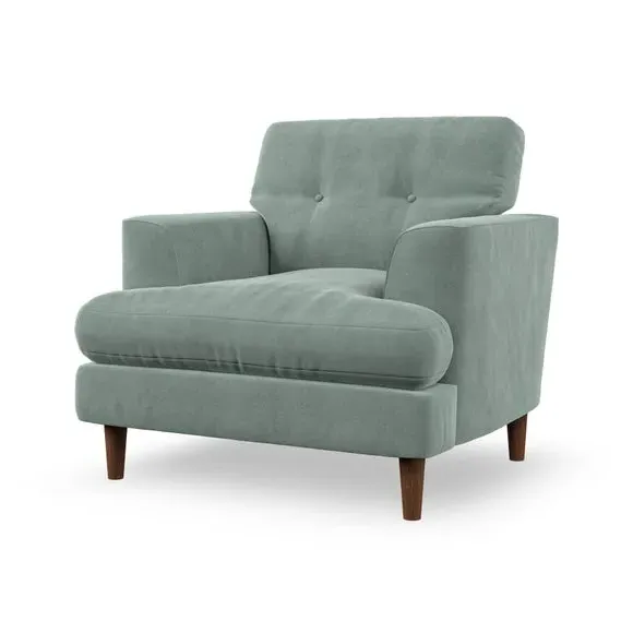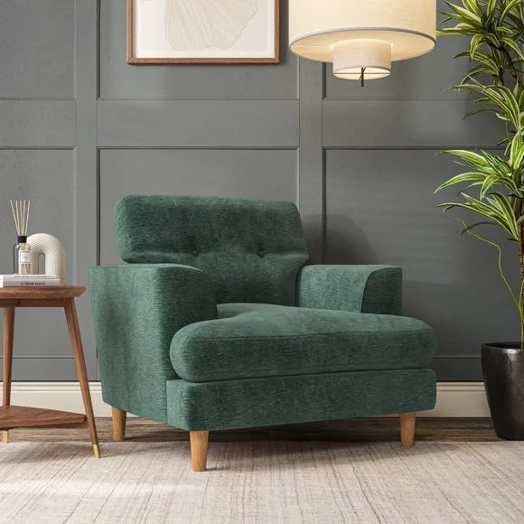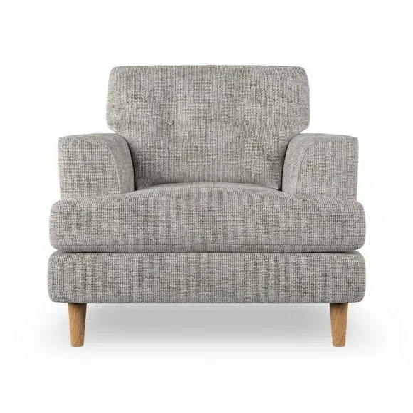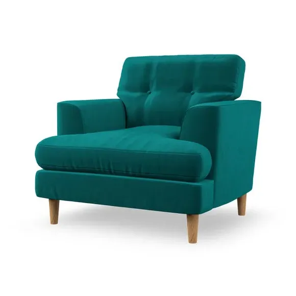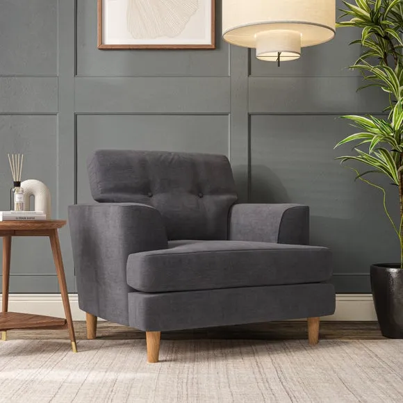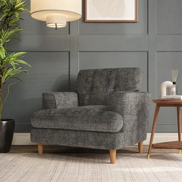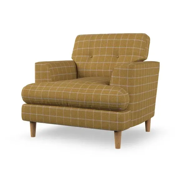 * Scandi inspired design* High legs* Button pull detailing* Choose the cushion filling, leg colour and fabric The Cooper Armchair is a compact yet striking piece that embodies Scandinavian-inspired sophistication. Featuring clean lines, an elegant high-leg frame, and a generous T-shaped seat cushion, it’s a stylish addition to any room. The fibre-filled back cushion, adorned with button-pull detailing, provides excellent support and comfort. Customise this armchair to suit your décor with a choice of fabrics, leg finishes, and cushion fillings.