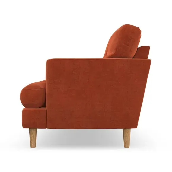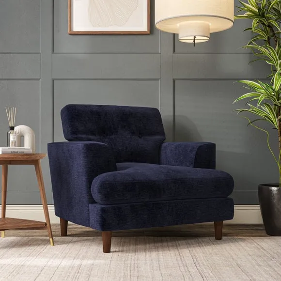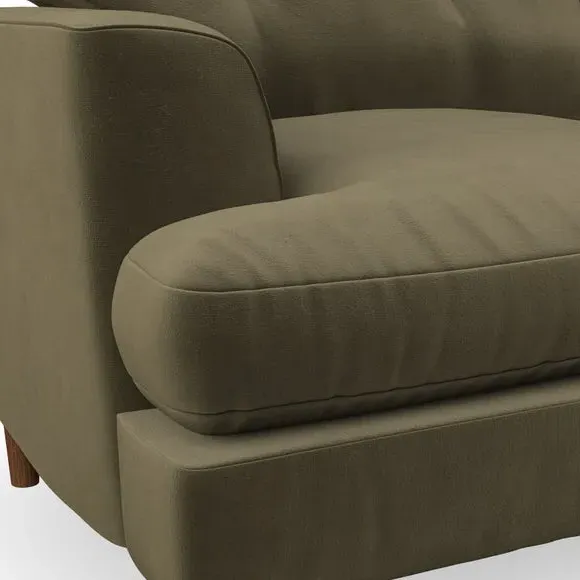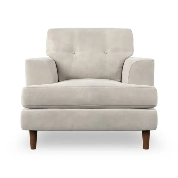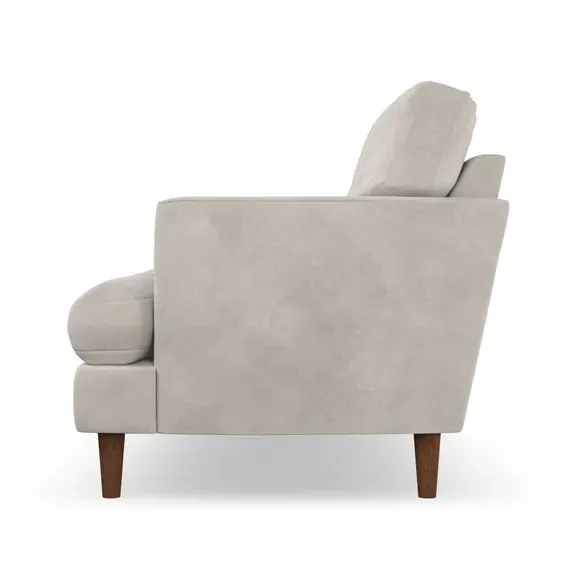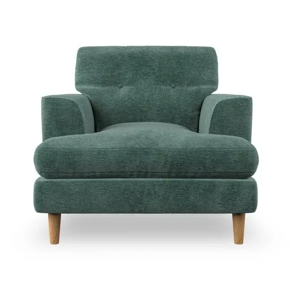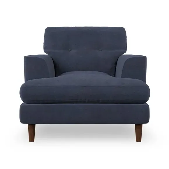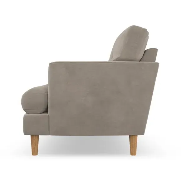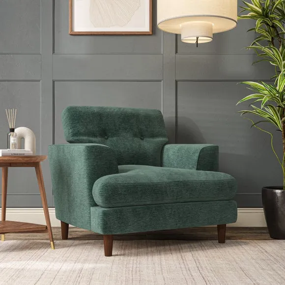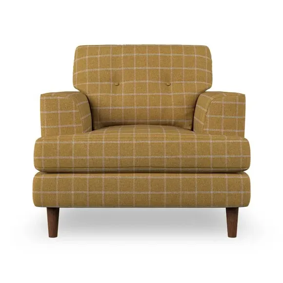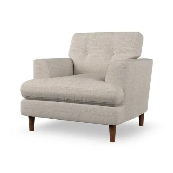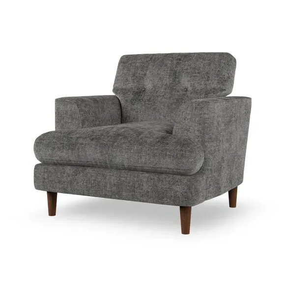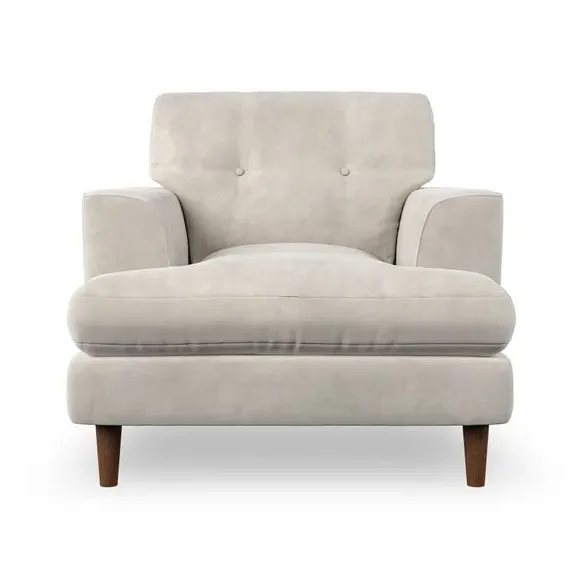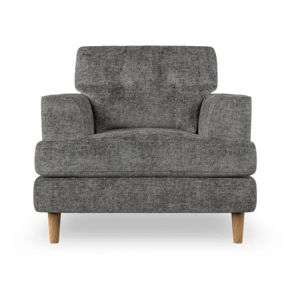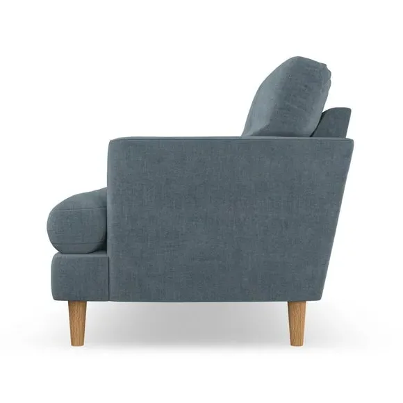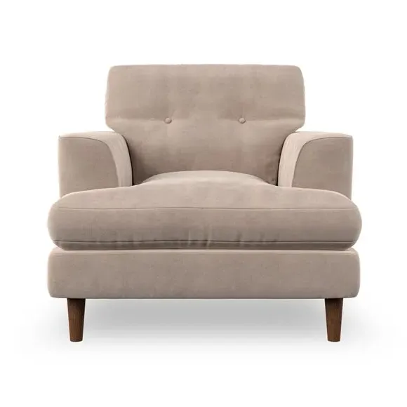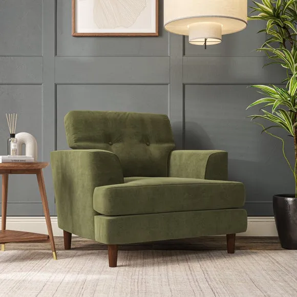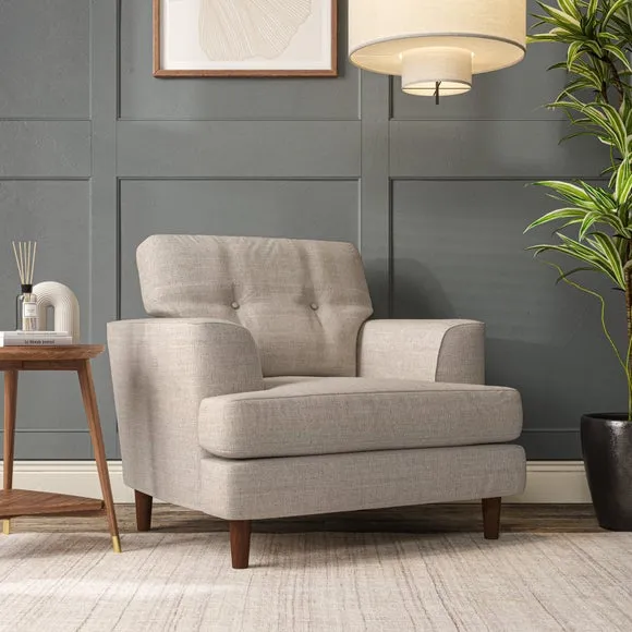 * Scandi inspired design* High legs* Button pull detailing* Choose the cushion filling, leg colour and fabric The Cooper Armchair is a compact yet striking piece that embodies Scandinavian-inspired sophistication. Featuring clean lines, an elegant high-leg frame, and a generous T-shaped seat cushion, it’s a stylish addition to any room. The fibre-filled back cushion, adorned with button-pull detailing, provides excellent support and comfort. Customise this armchair to suit your décor with a choice of fabrics, leg finishes, and cushion fillings.
