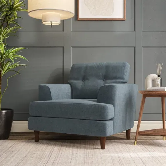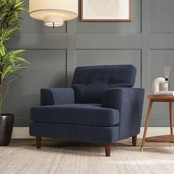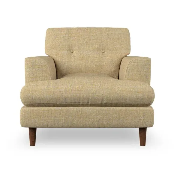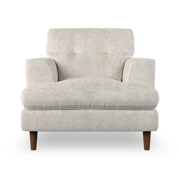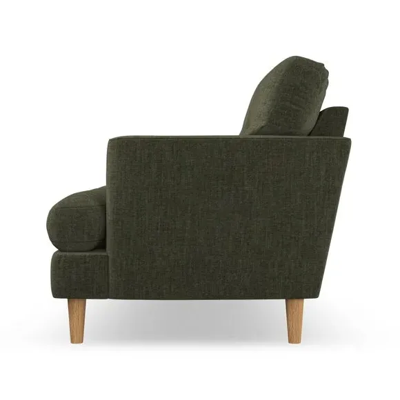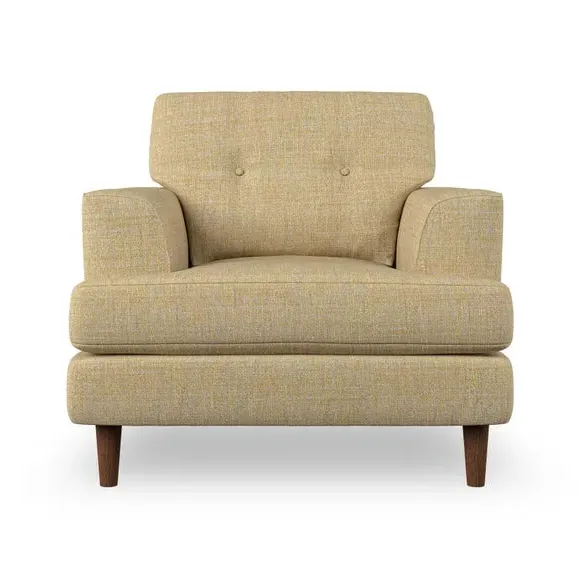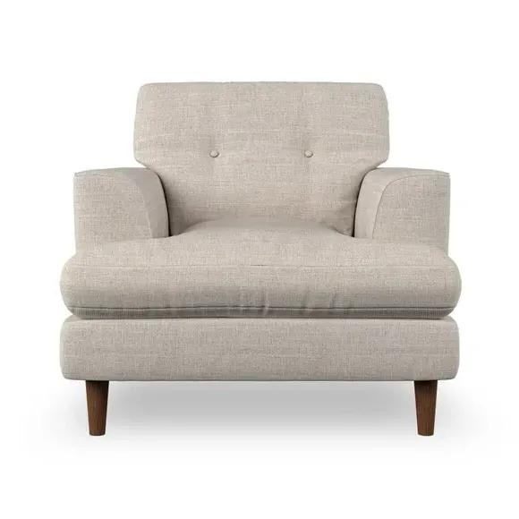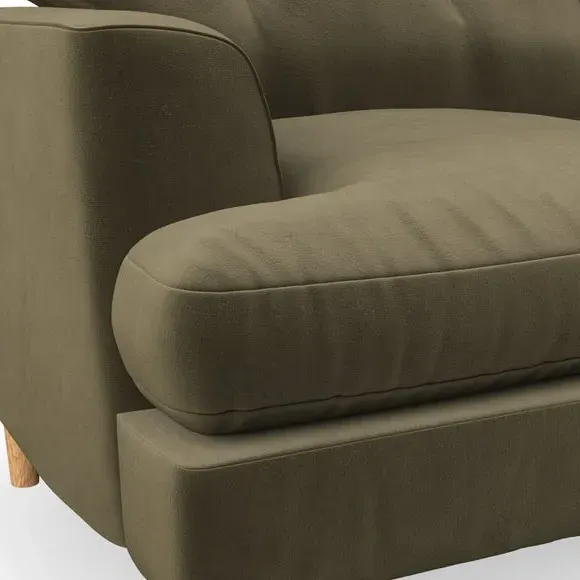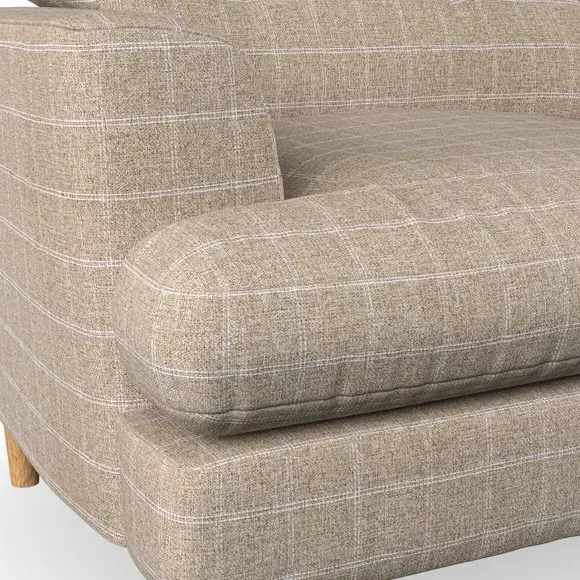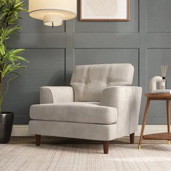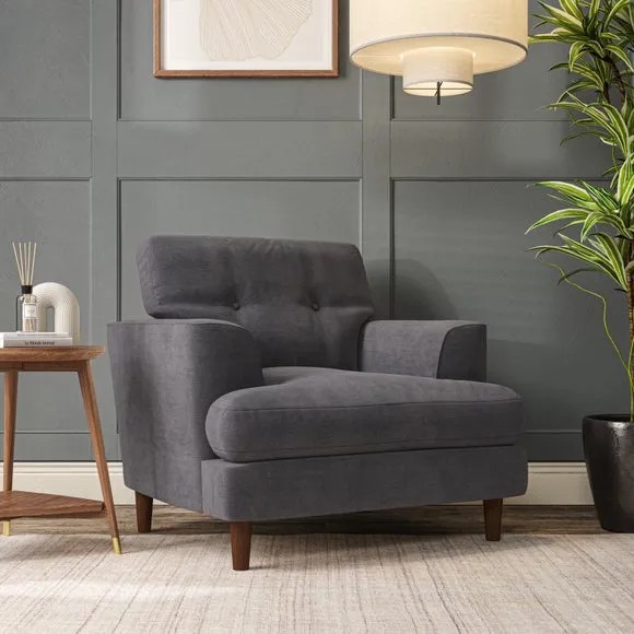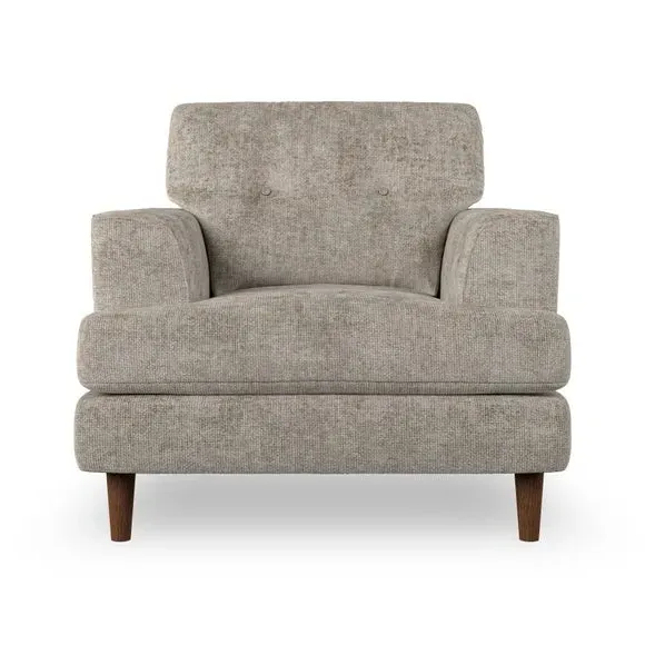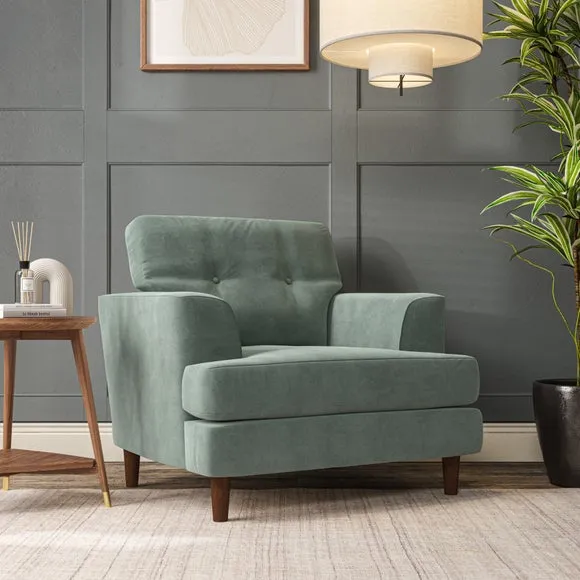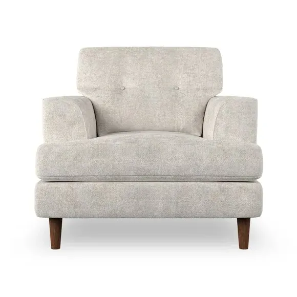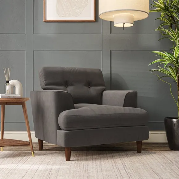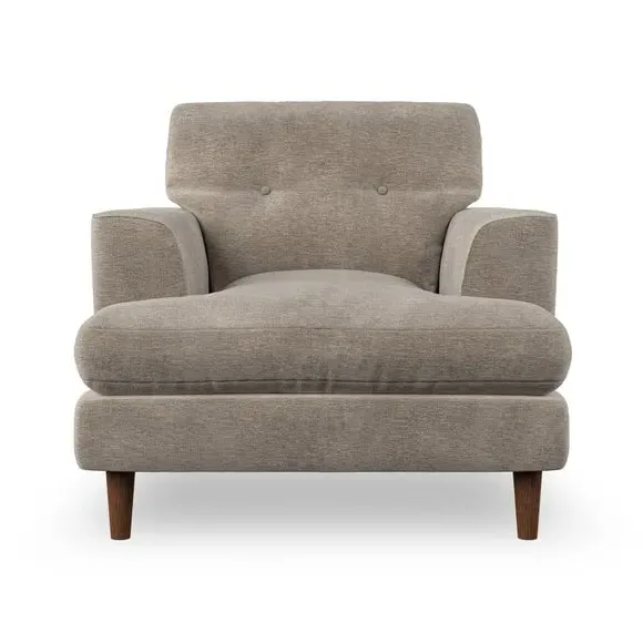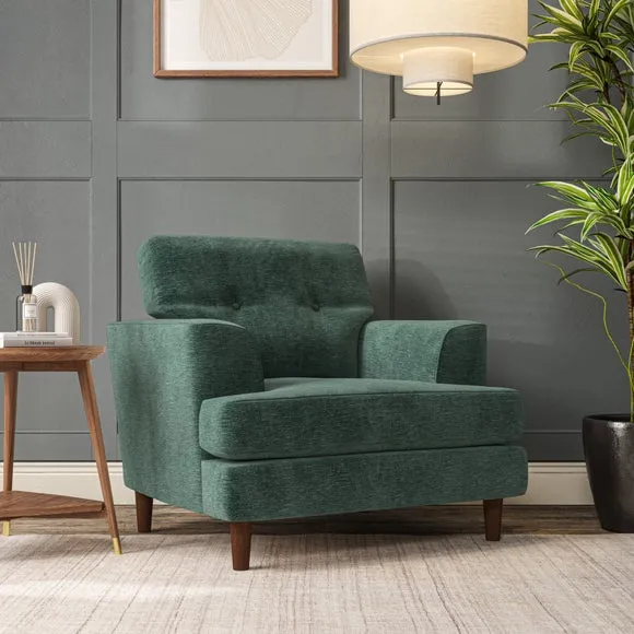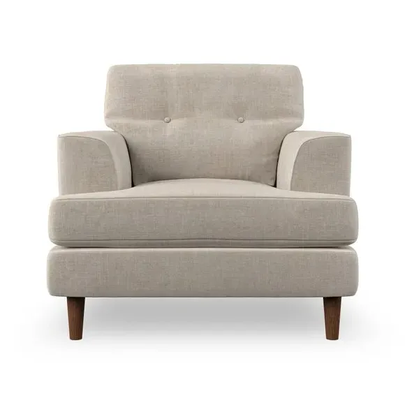 * Scandi inspired design* High legs* Button pull detailing* Choose the cushion filling, leg colour and fabric The Cooper Armchair is a compact yet striking piece that embodies Scandinavian-inspired sophistication. Featuring clean lines, an elegant high-leg frame, and a generous T-shaped seat cushion, it’s a stylish addition to any room. The fibre-filled back cushion, adorned with button-pull detailing, provides excellent support and comfort. Customise this armchair to suit your décor with a choice of fabrics, leg finishes, and cushion fillings.