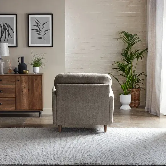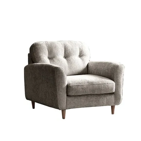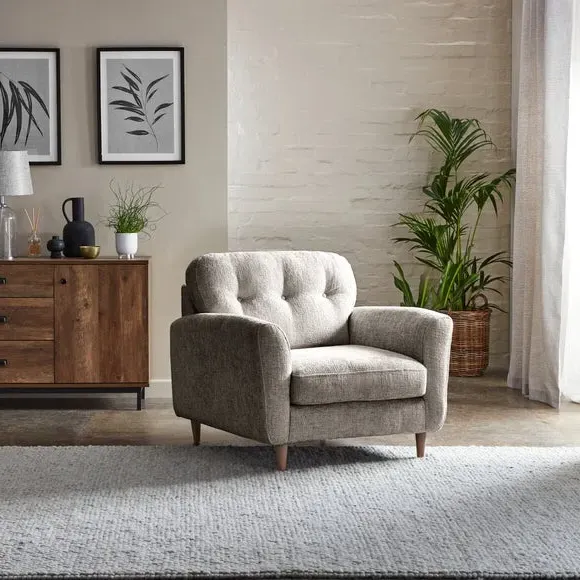 * 100% recycled polyester* Soft touch chenille upholstery* Buttoned back cushions* Comfortable foam and fibre-wrap seat* Compact design A compact snuggle chair with a modern buttoned back and soft touch chenille upholstery, this chair is made from 100% recycled polyester to ensure a low carbon footprint. Comfortable foam and fibre-wrap seat cushions allow you to relax for hours on end.