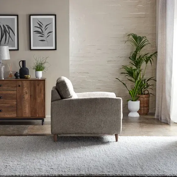 The snuggle chair combines comfort with sustainable design, featuring soft touch chenille upholstery made from 100% recycled polyester. Its buttoned back cushions add visual interest, while the foam and fibre-wrap seat provides lasting comfort. The compact design suits smaller spaces, and the eco-friendly construction reduces environmental impact.
