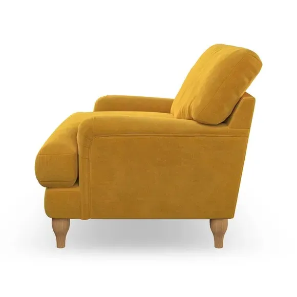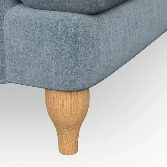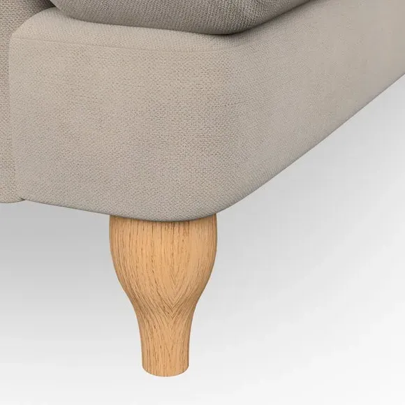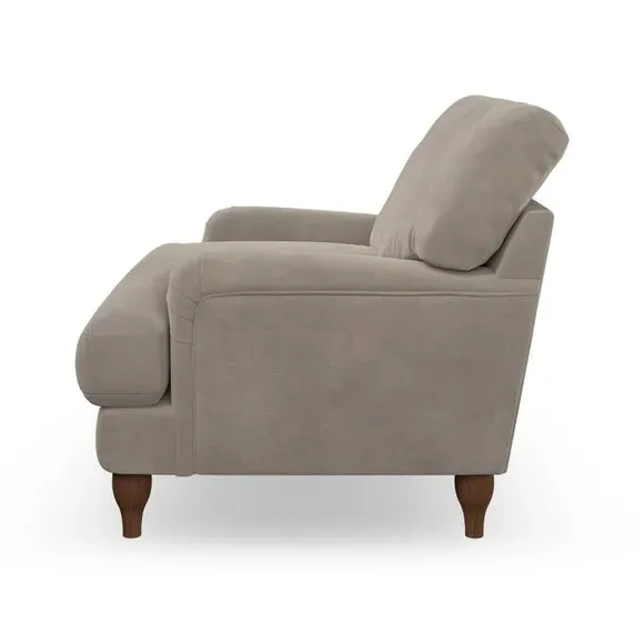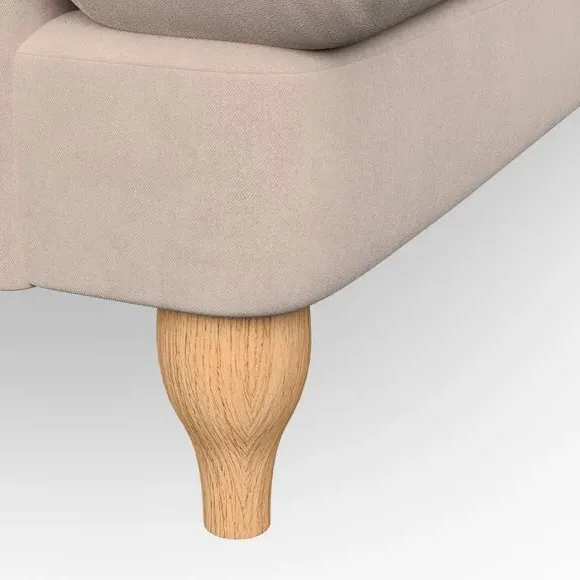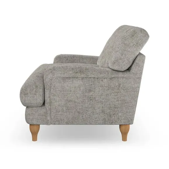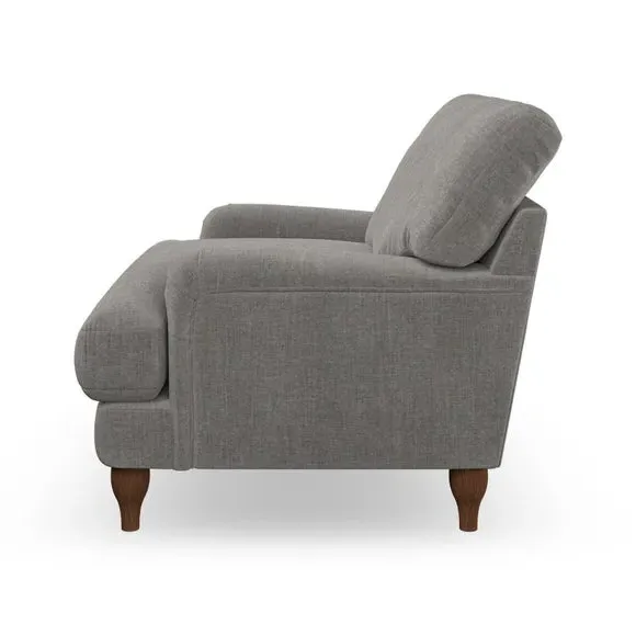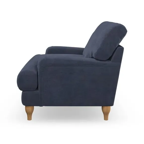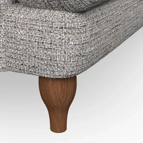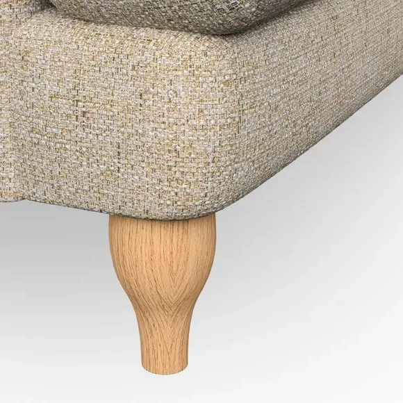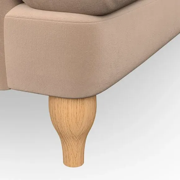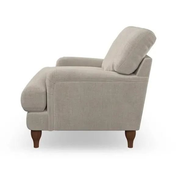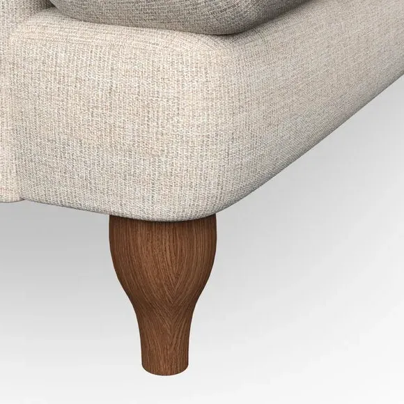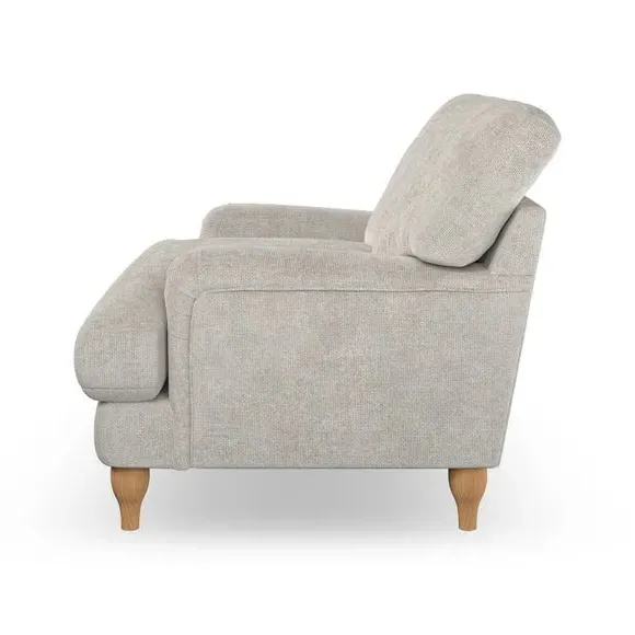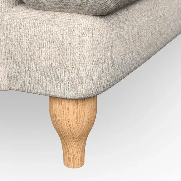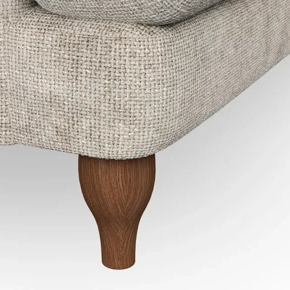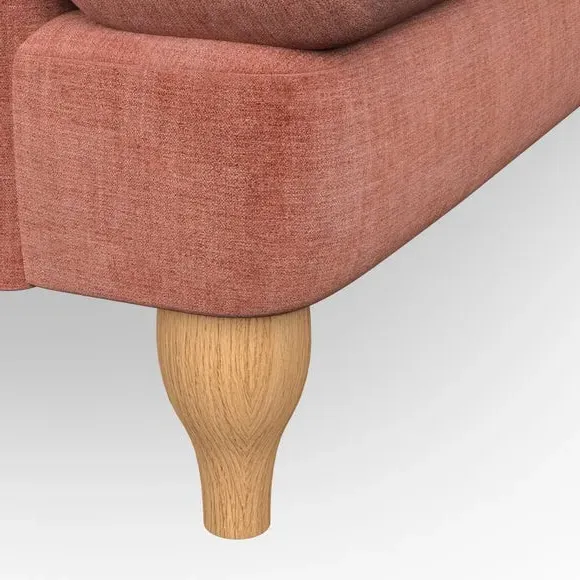 * Classic style* Bandaged Arms* Pleated details* Serpentine seat springs* Choose your support, fabric and leg colour This chair offers a fresh take on the classic bandaged arm design, featuring pleat details and a lugged seat for a unique look. Built for longevity and comfort, it includes serpentine seat springs and deep fibre-filled back cushions for excellent support. Customise your comfort by choosing between a low-maintenance foam seat or the inviting ‘Qualofill Blue’ fibre seat, made from 100% recycled polyester. The ‘T’ cushion seat and arm design ensure a compact and contemporary feel, complemented by self-sewn seat and back cushions. Available with ‘hour glass’ shaped turned hardwood legs in two finishes, this chair is both easy to fit and perfect for creating a snug, stylish corner in your living space. Plus, you can select your preferred fabric and colour to perfectly match your decor.