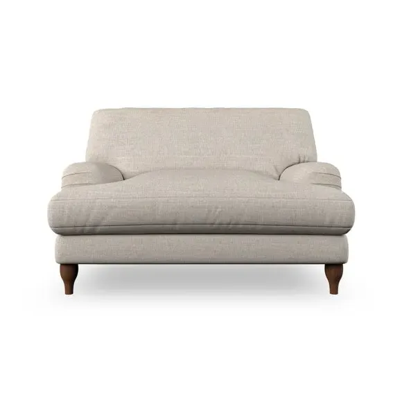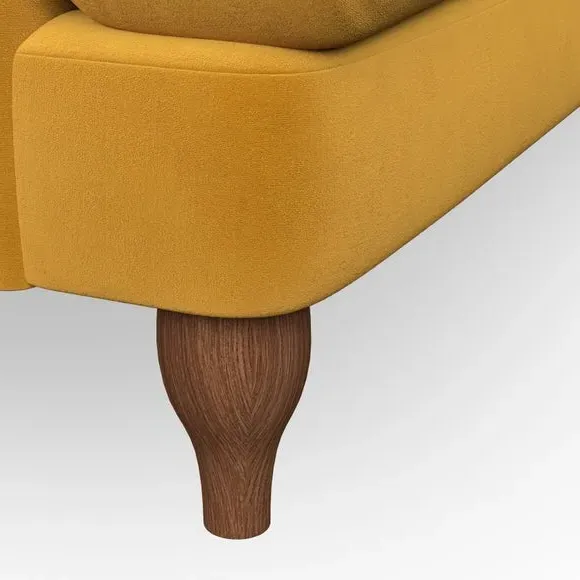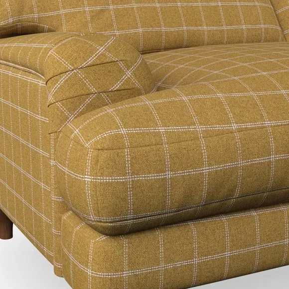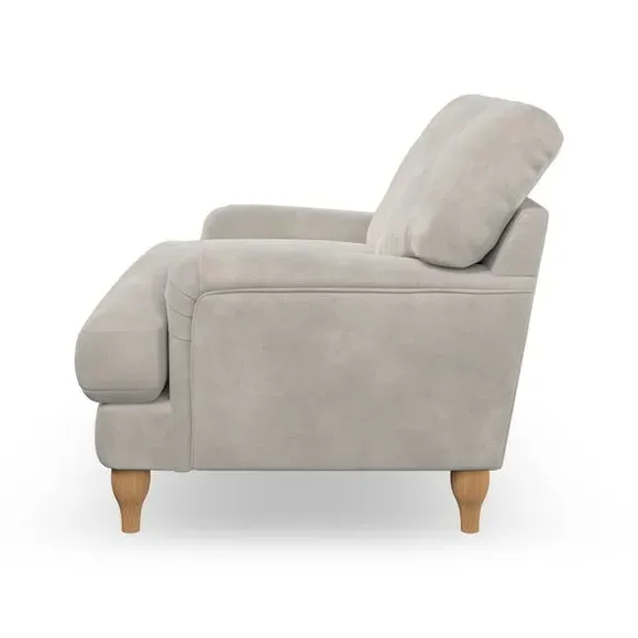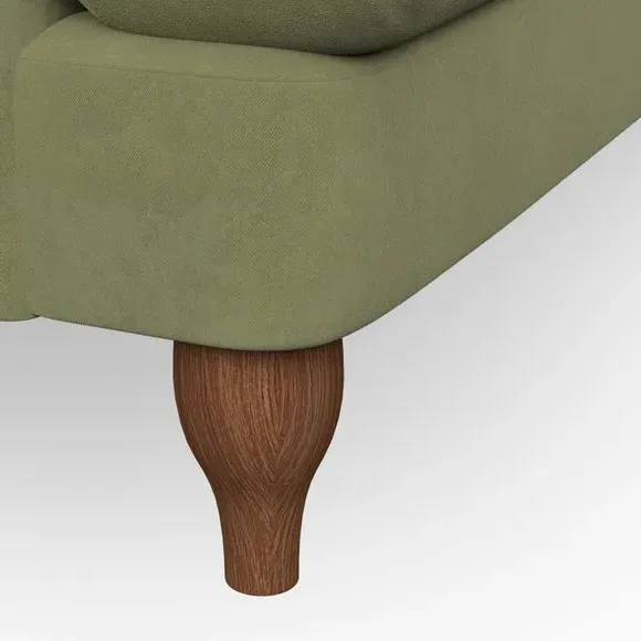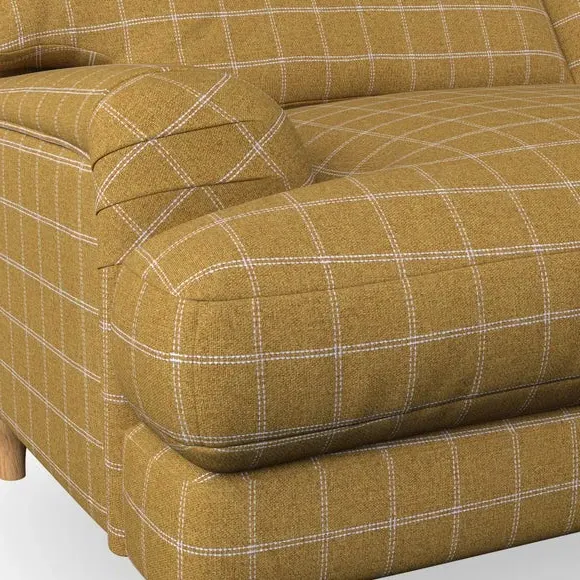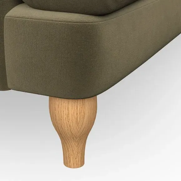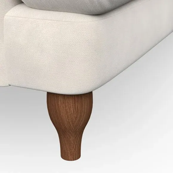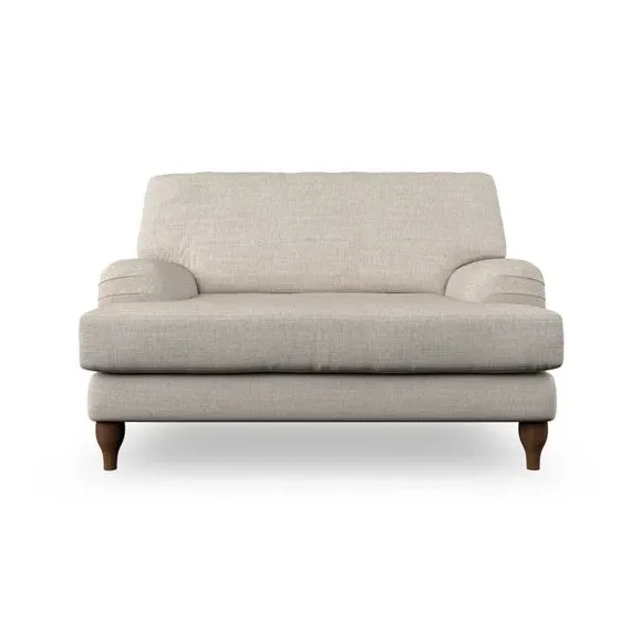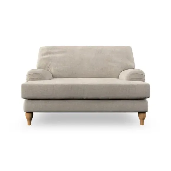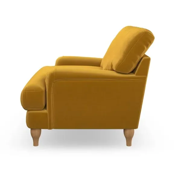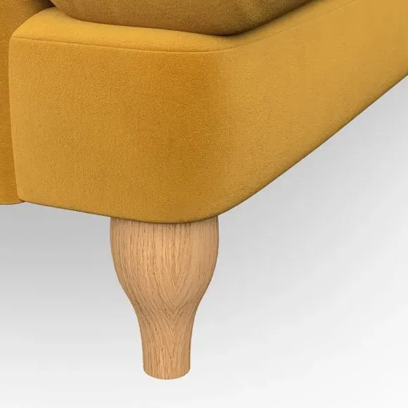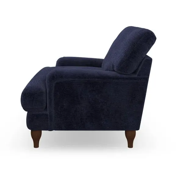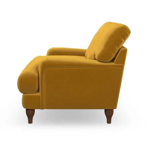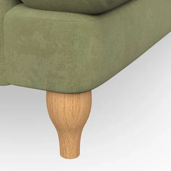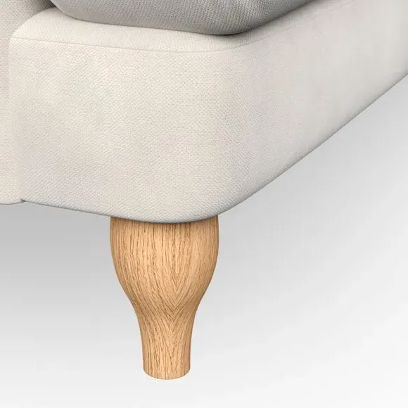 * Classic style* Bandaged Arms* Pleated details* Serpentine seat springs* Choose your support, fabric and leg colour This chair offers a fresh take on the classic bandaged arm design, featuring pleat details and a lugged seat for a unique look. Built for longevity and comfort, it includes serpentine seat springs and deep fibre-filled back cushions for excellent support. Customise your comfort by choosing between a low-maintenance foam seat or the inviting ‘Qualofill Blue’ fibre seat, made from 100% recycled polyester. The ‘T’ cushion seat and arm design ensure a compact and contemporary feel, complemented by self-sewn seat and back cushions. Available with ‘hour glass’ shaped turned hardwood legs in two finishes, this chair is both easy to fit and perfect for creating a snug, stylish corner in your living space. Plus, you can select your preferred fabric and colour to perfectly match your decor.