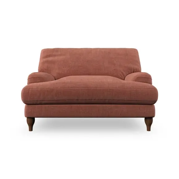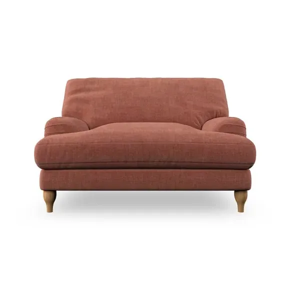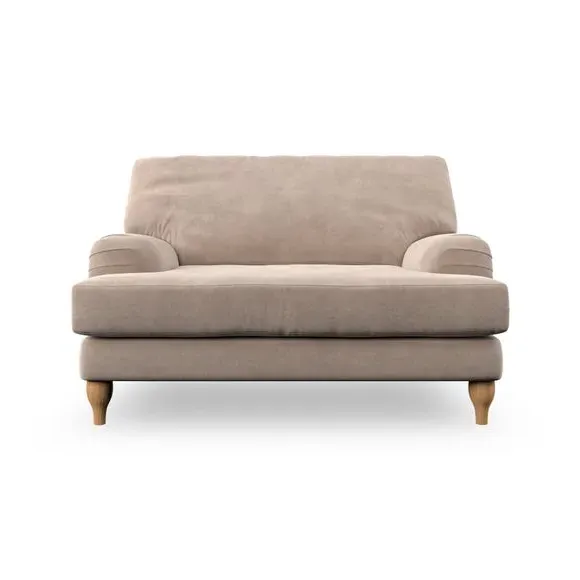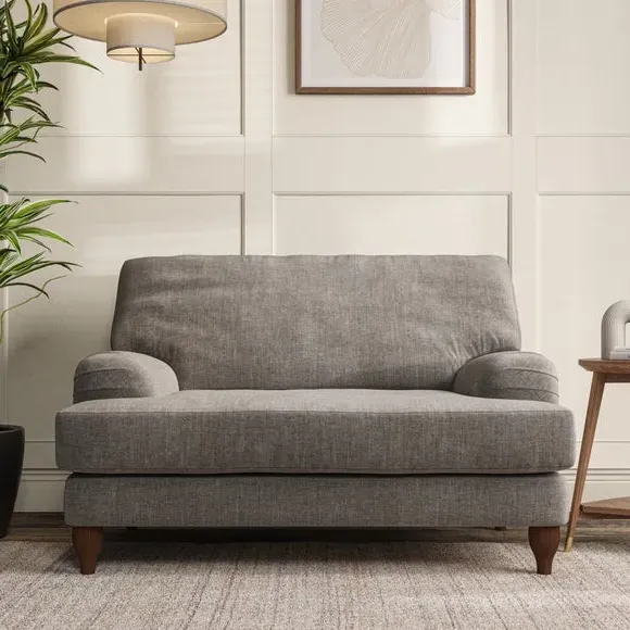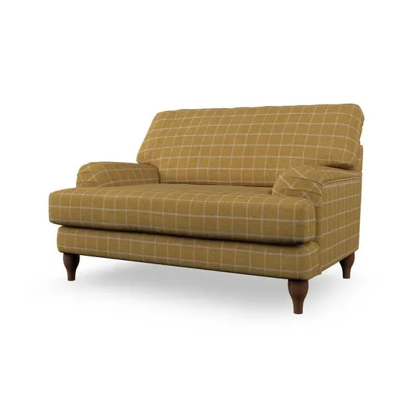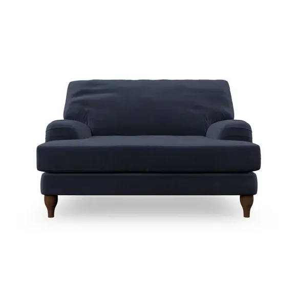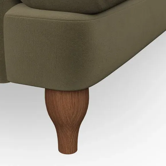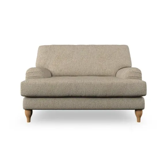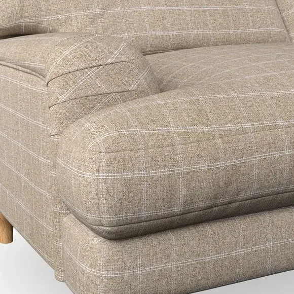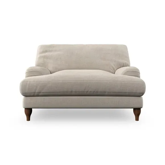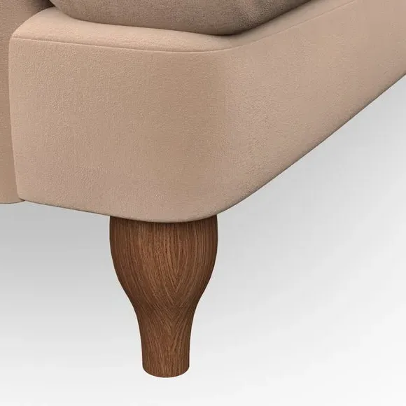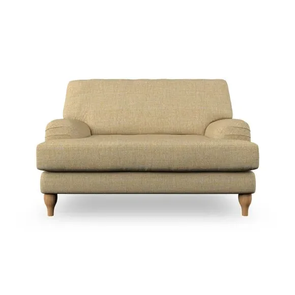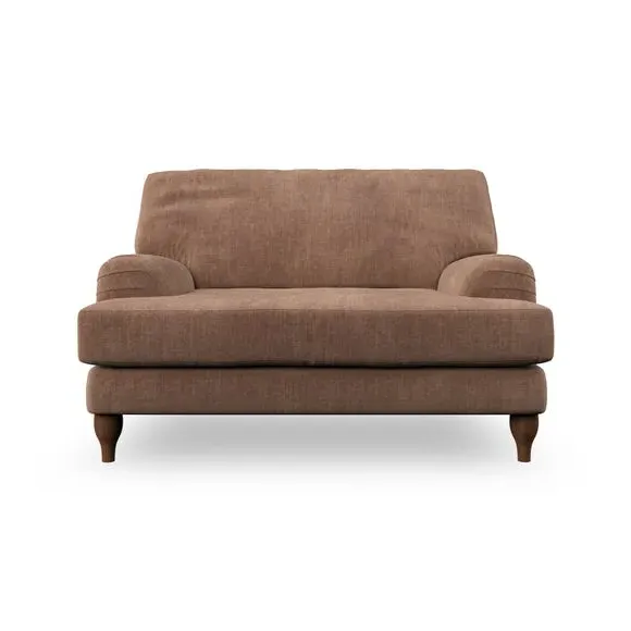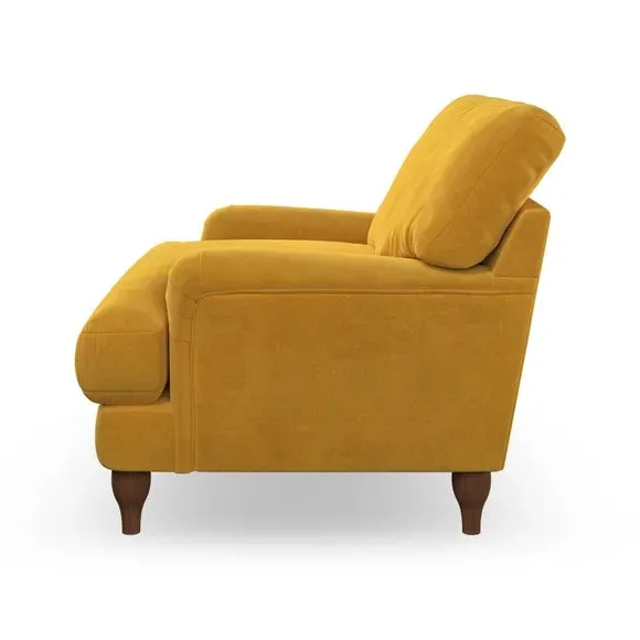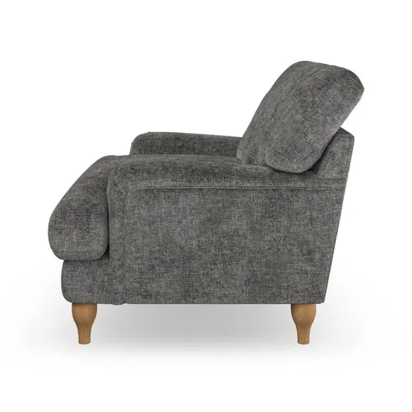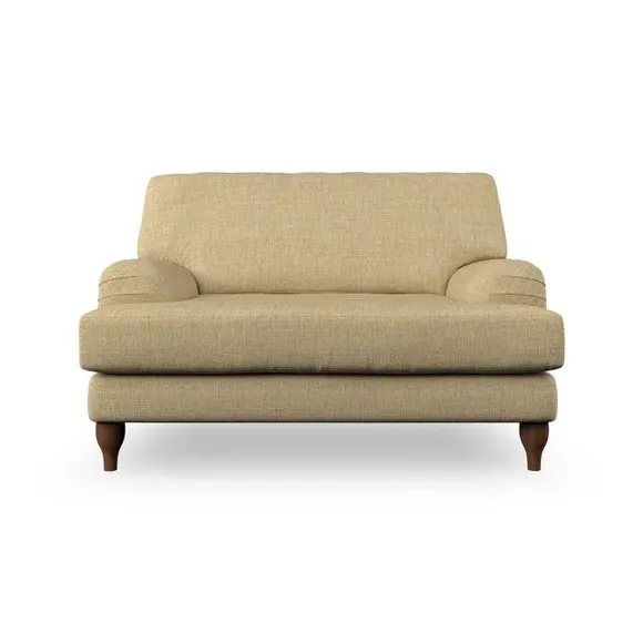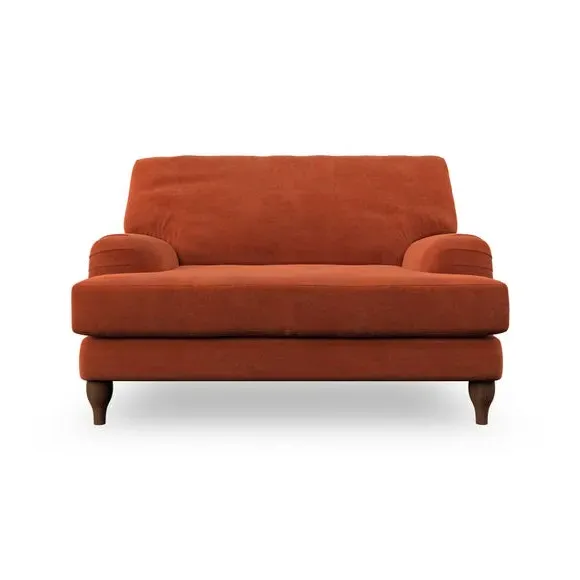 * Classic style* Bandaged Arms* Pleated details* Serpentine seat springs* Choose your support, fabric and leg colour This chair offers a fresh take on the classic bandaged arm design, featuring pleat details and a lugged seat for a unique look. Built for longevity and comfort, it includes serpentine seat springs and deep fibre-filled back cushions for excellent support. Customise your comfort by choosing between a low-maintenance foam seat or the inviting ‘Qualofill Blue’ fibre seat, made from 100% recycled polyester. The ‘T’ cushion seat and arm design ensure a compact and contemporary feel, complemented by self-sewn seat and back cushions. Available with ‘hour glass’ shaped turned hardwood legs in two finishes, this chair is both easy to fit and perfect for creating a snug, stylish corner in your living space. Plus, you can select your preferred fabric and colour to perfectly match your decor.