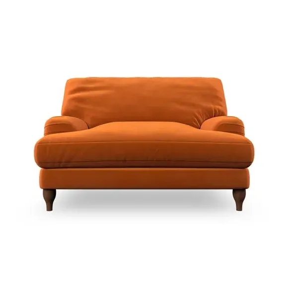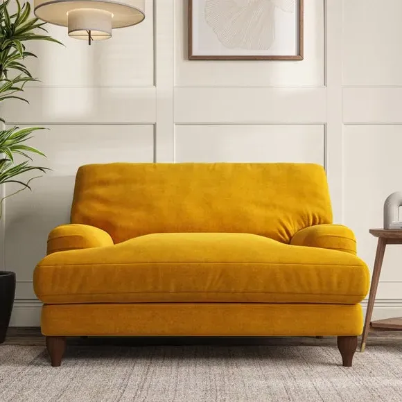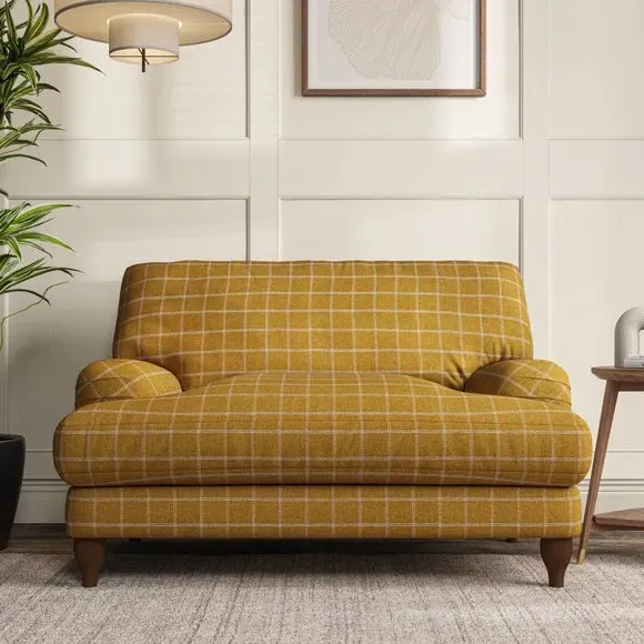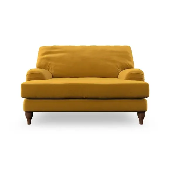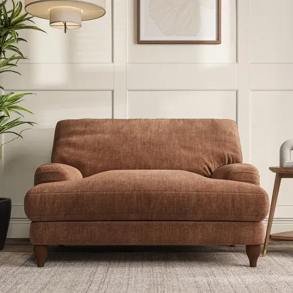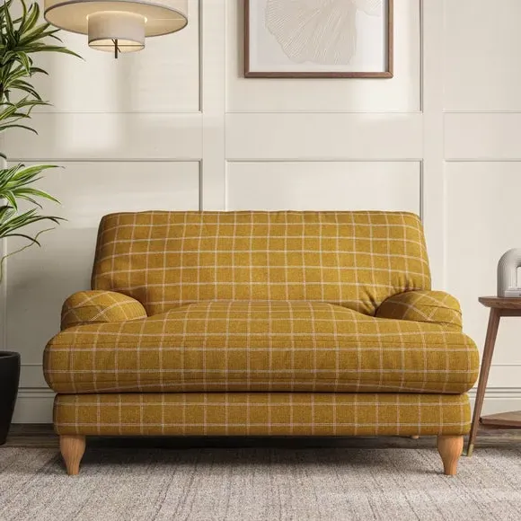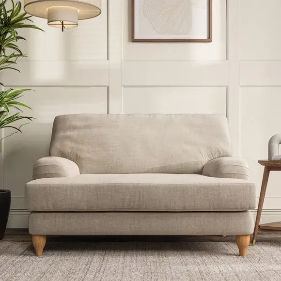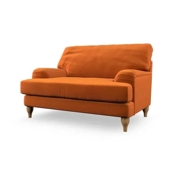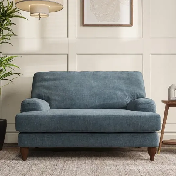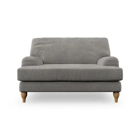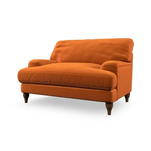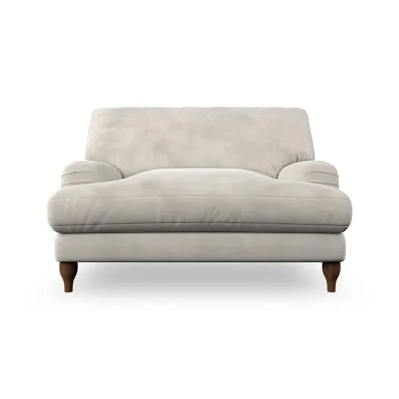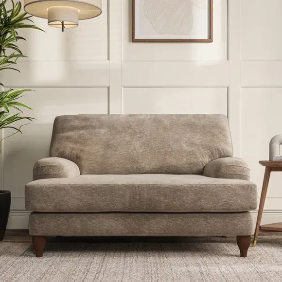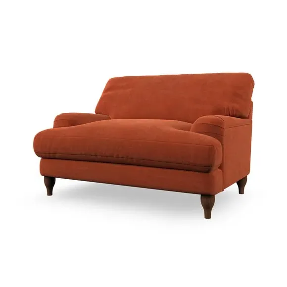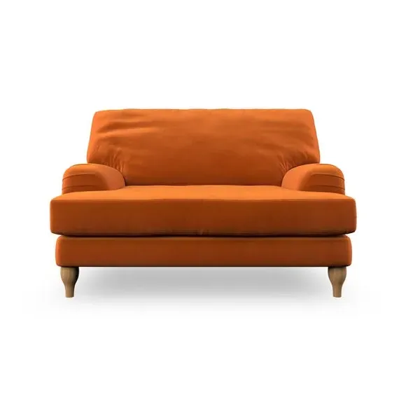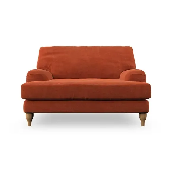* Classic style* Bandaged Arms* Pleated details* Serpentine seat springs* Choose your support, fabric and leg colour This chair offers a fresh take on the classic bandaged arm design, featuring pleat details and a lugged seat for a unique look. Built for longevity and comfort, it includes serpentine seat springs and deep fibre-filled back cushions for excellent support. Customise your comfort by choosing between a low-maintenance foam seat or the inviting ‘Qualofill Blue’ fibre seat, made from 100% recycled polyester. The ‘T’ cushion seat and arm design ensure a compact and contemporary feel, complemented by self-sewn seat and back cushions. Available with ‘hour glass’ shaped turned hardwood legs in two finishes, this chair is both easy to fit and perfect for creating a snug, stylish corner in your living space. Plus, you can select your preferred fabric and colour to perfectly match your decor.