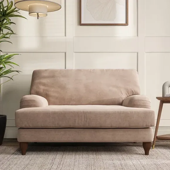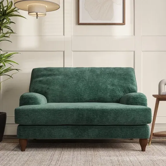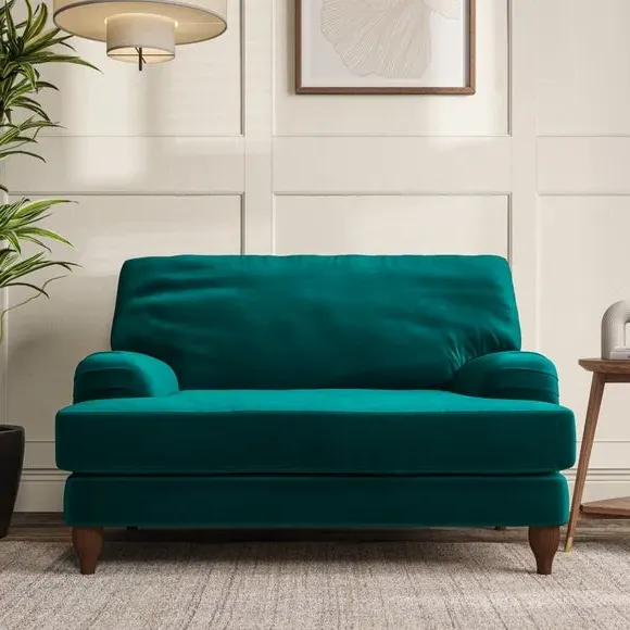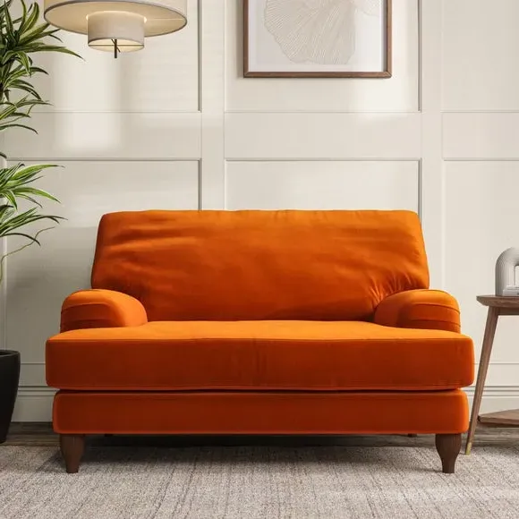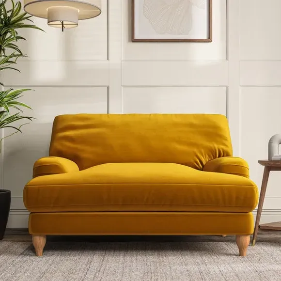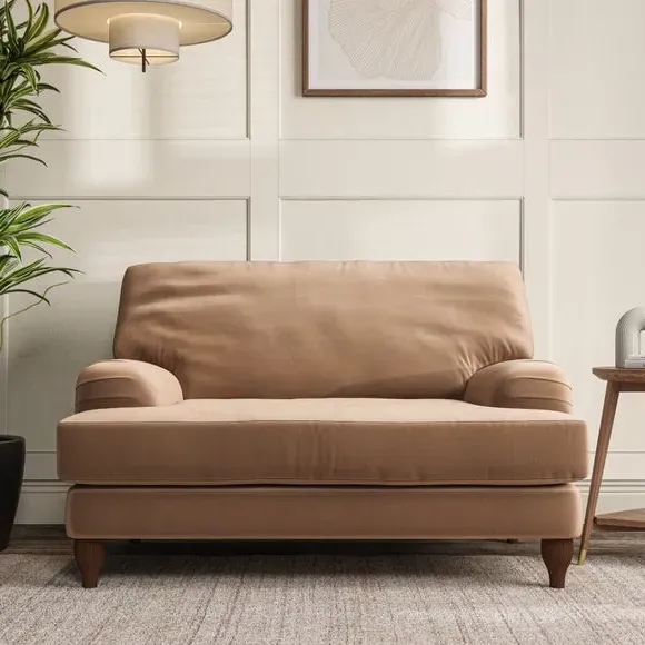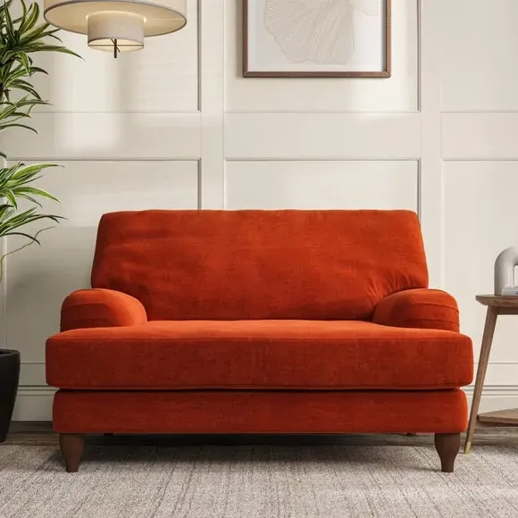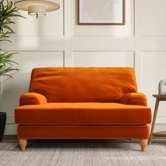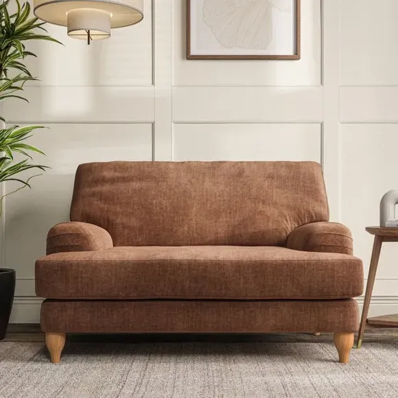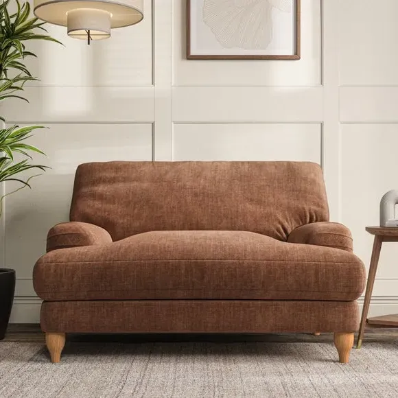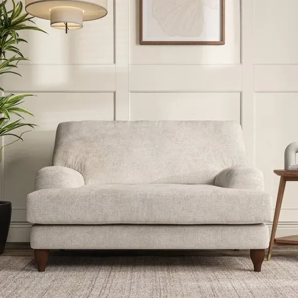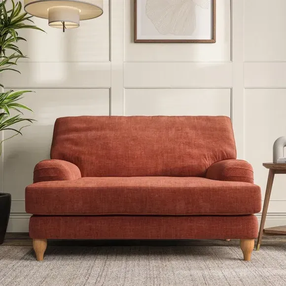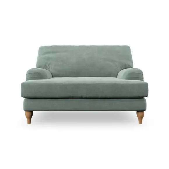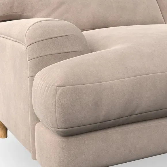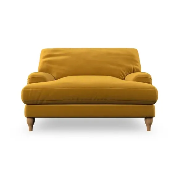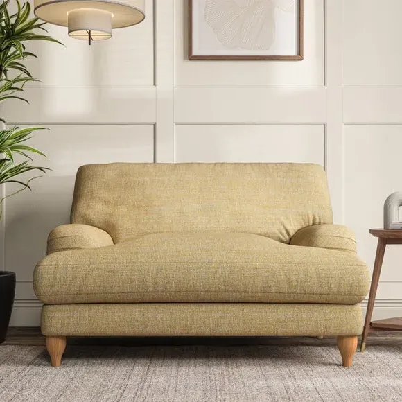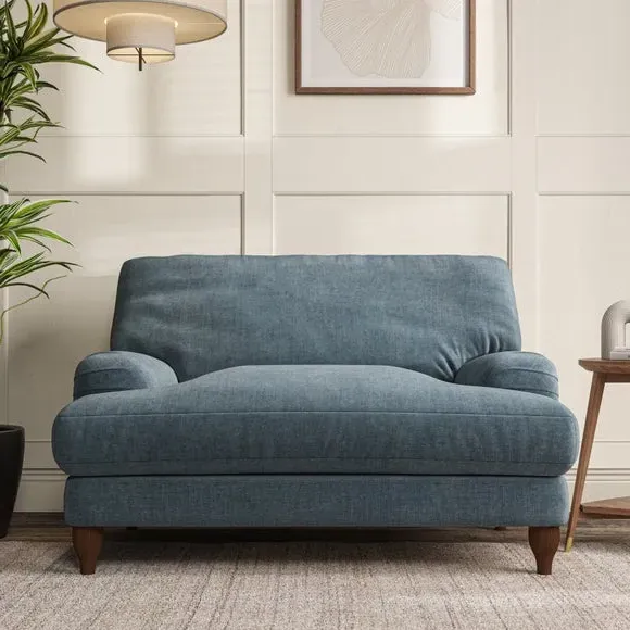 * Classic style* Bandaged Arms* Pleated details* Serpentine seat springs* Choose your support, fabric and leg colour This chair offers a fresh take on the classic bandaged arm design, featuring pleat details and a lugged seat for a unique look. Built for longevity and comfort, it includes serpentine seat springs and deep fibre-filled back cushions for excellent support. Customise your comfort by choosing between a low-maintenance foam seat or the inviting ‘Qualofill Blue’ fibre seat, made from 100% recycled polyester. The ‘T’ cushion seat and arm design ensure a compact and contemporary feel, complemented by self-sewn seat and back cushions. Available with ‘hour glass’ shaped turned hardwood legs in two finishes, this chair is both easy to fit and perfect for creating a snug, stylish corner in your living space. Plus, you can select your preferred fabric and colour to perfectly match your decor.