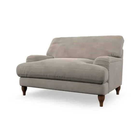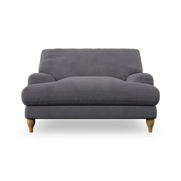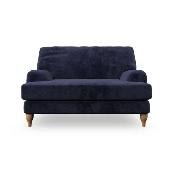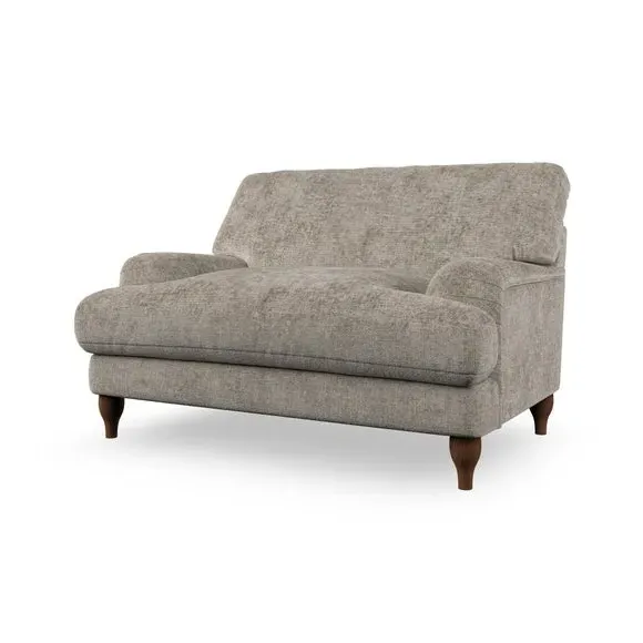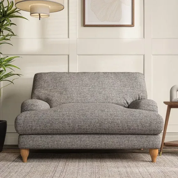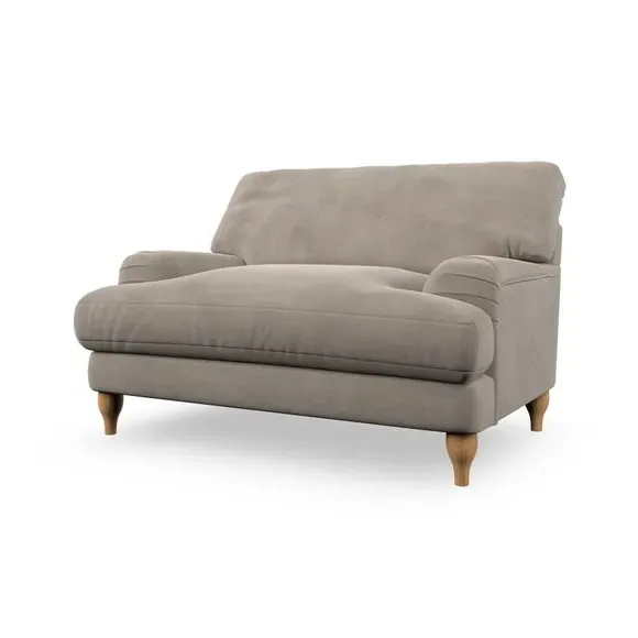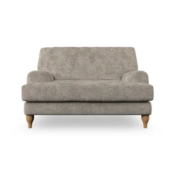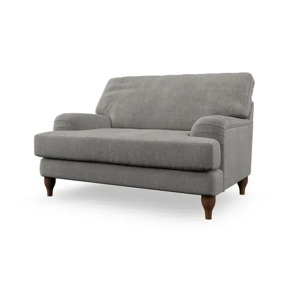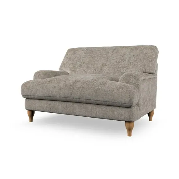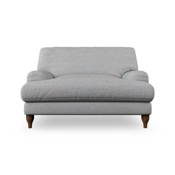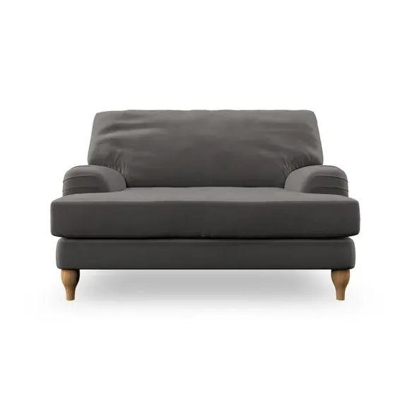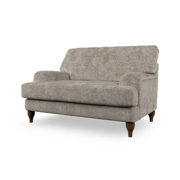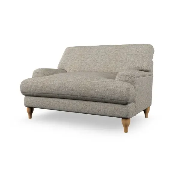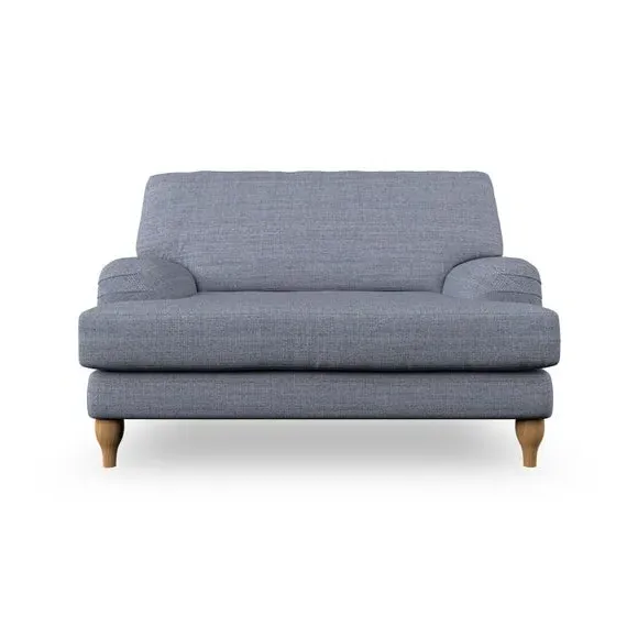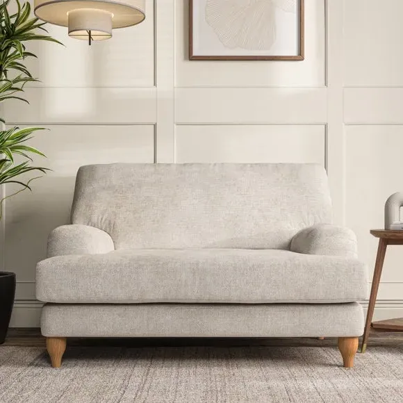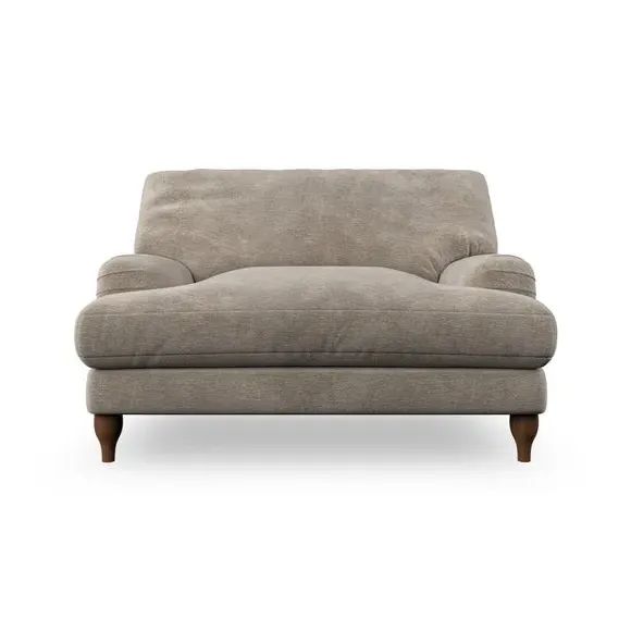 The snuggle chair combines classic bandaged arm design with contemporary pleat details and a lugged seat construction. Its serpentine seat springs provide excellent support, while deep fibre-filled back cushions add comfort. The T-cushion seat design ensures a compact feel, and the hour glass shaped turned hardwood legs offer stability with style.