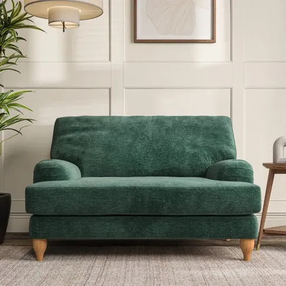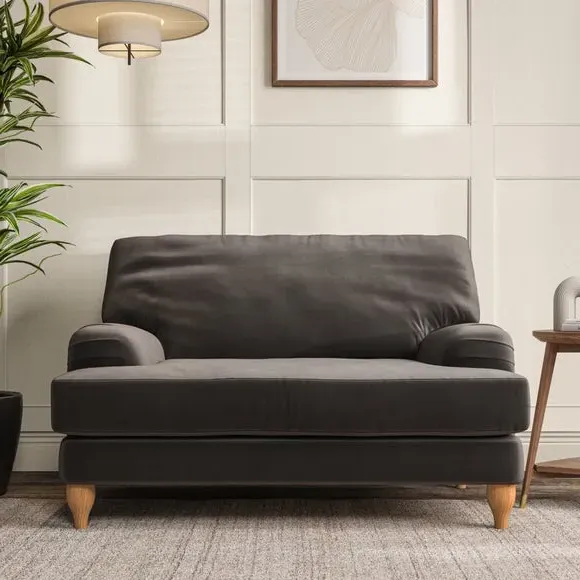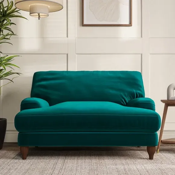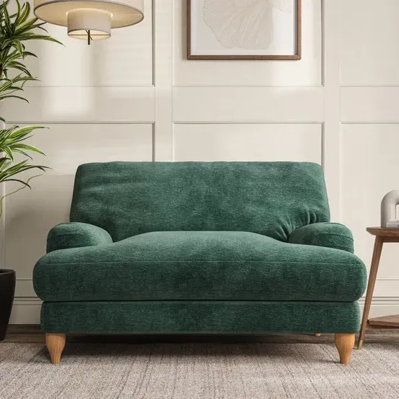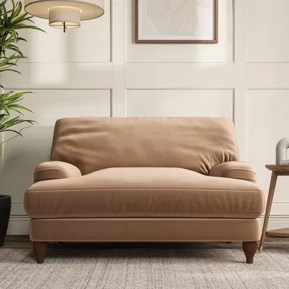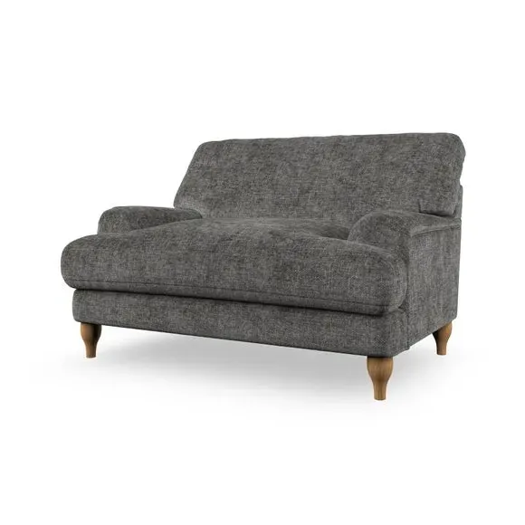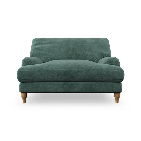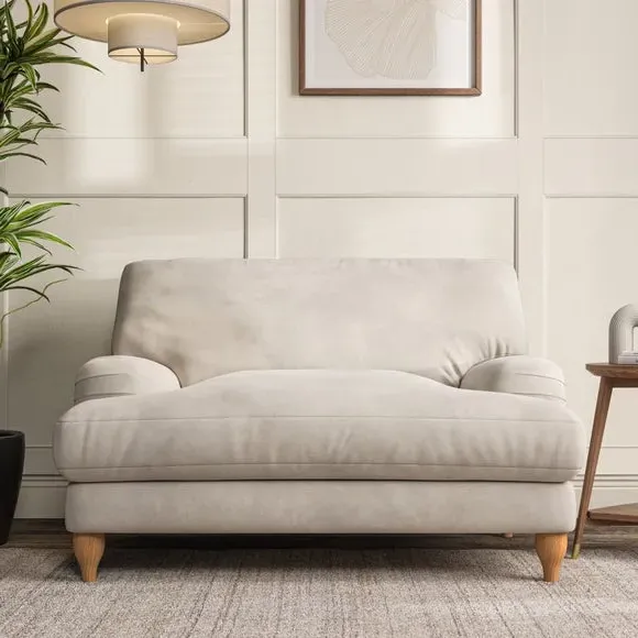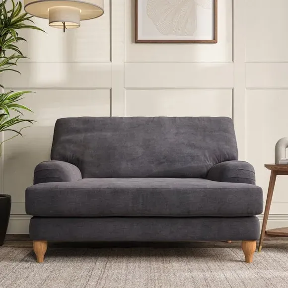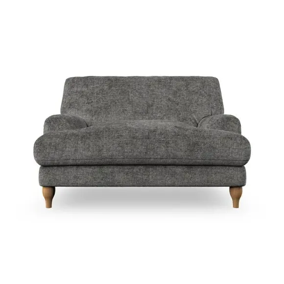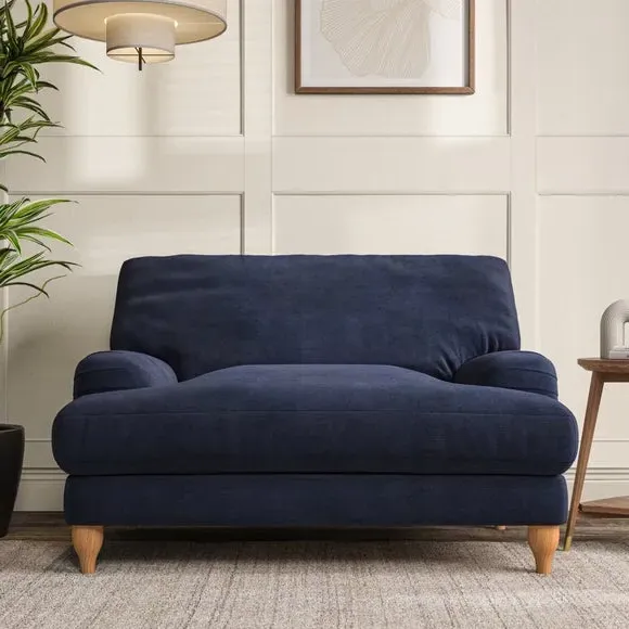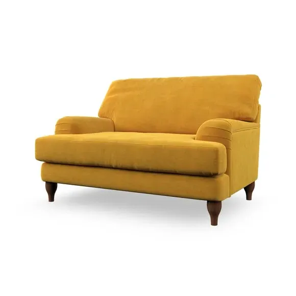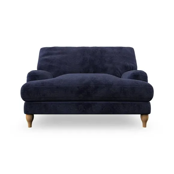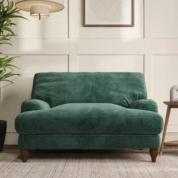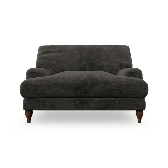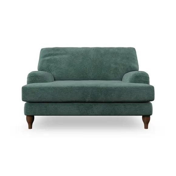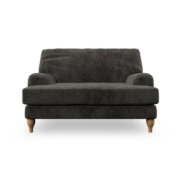 The snuggle chair combines classic bandaged arm design with contemporary pleat details and a lugged seat construction. Its serpentine seat springs provide excellent support, while deep fibre-filled back cushions add comfort. The T-cushion seat design ensures a compact feel, and the hour glass shaped turned hardwood legs offer stability with style.