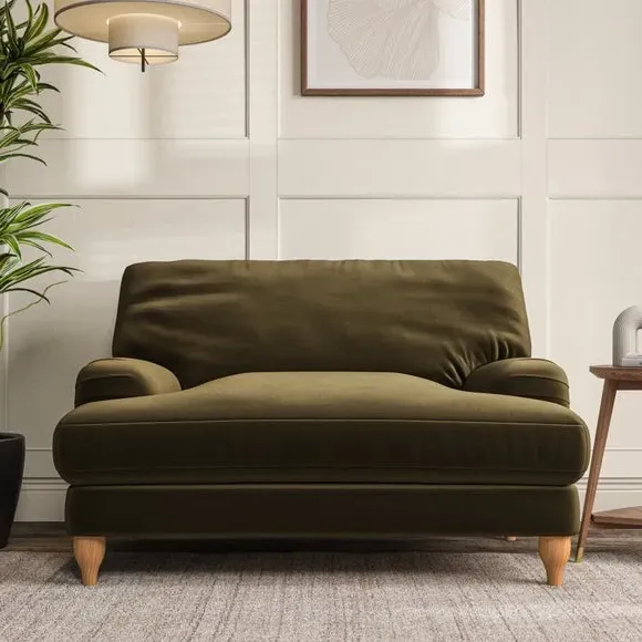 Home  /  Living Room  /  Armchairs & Accent Chairs  /  Snuggle Chair with Bandaged Arms - Olive