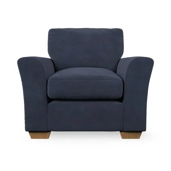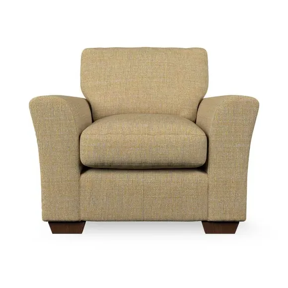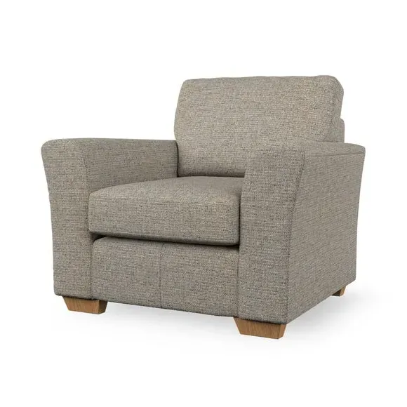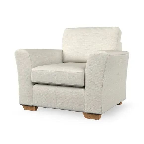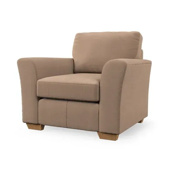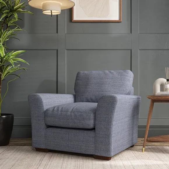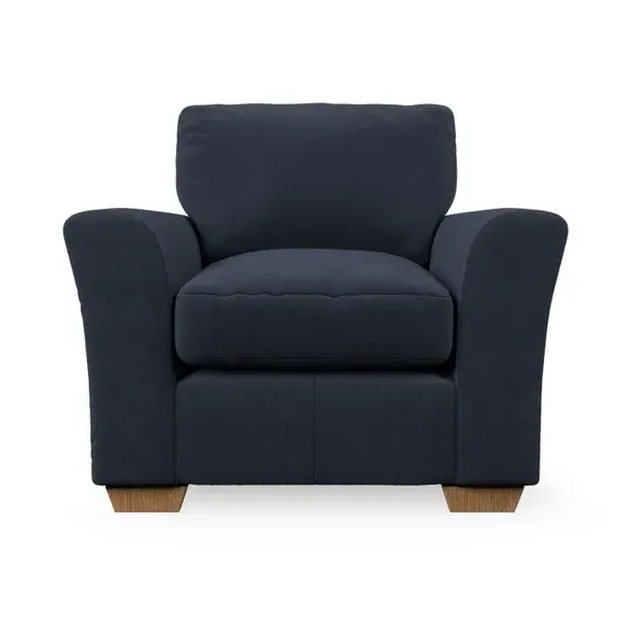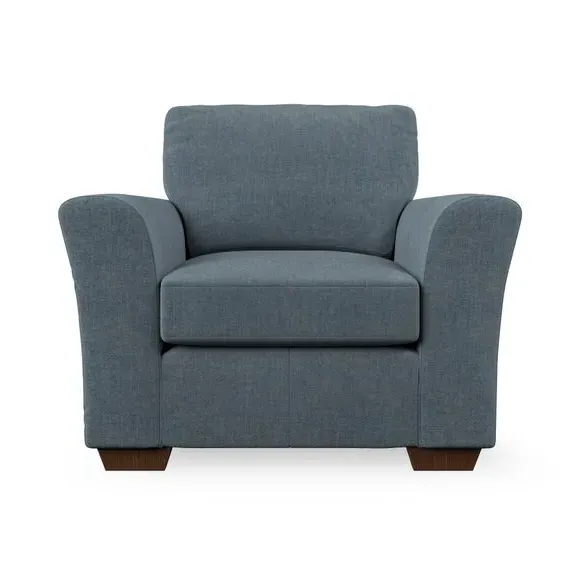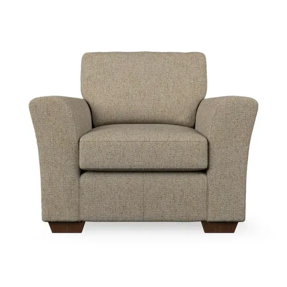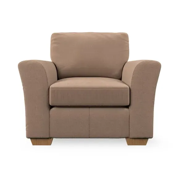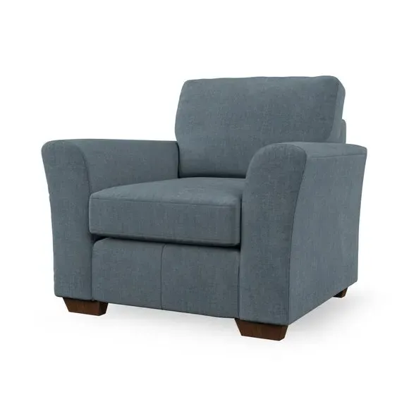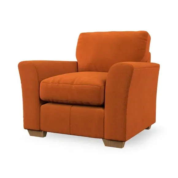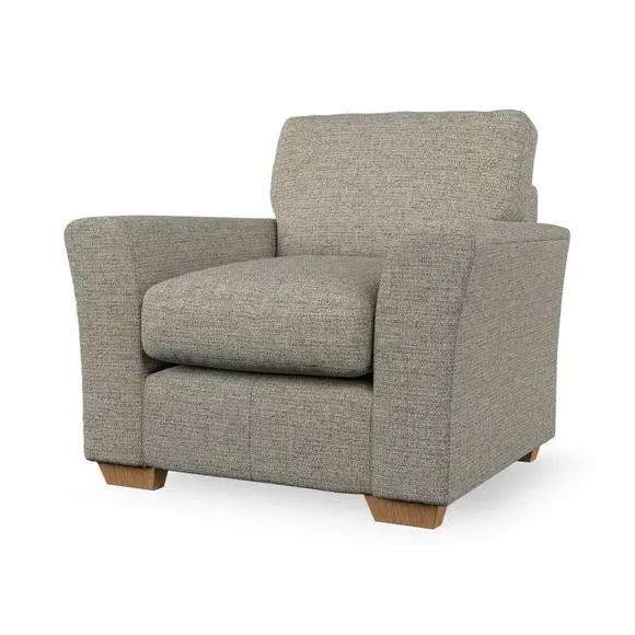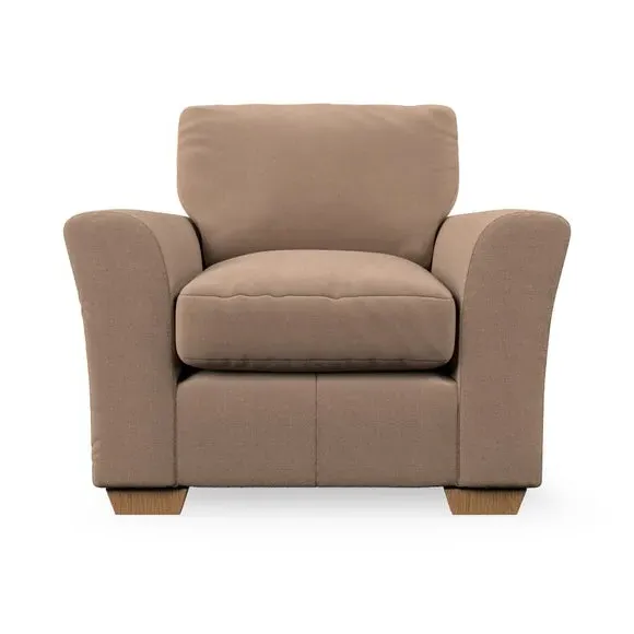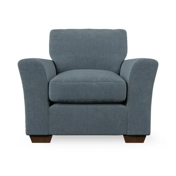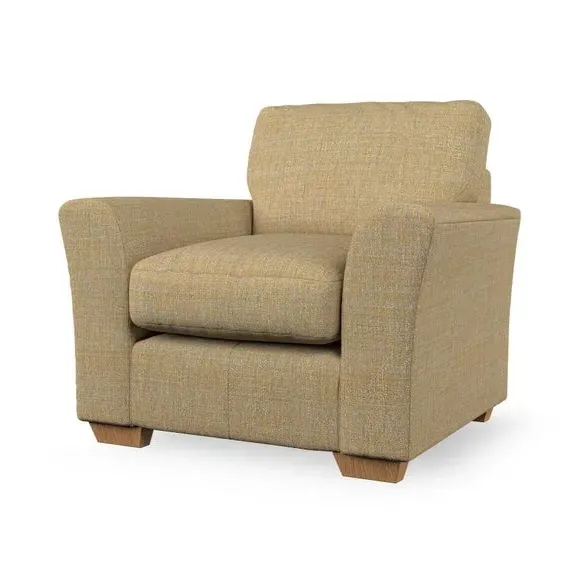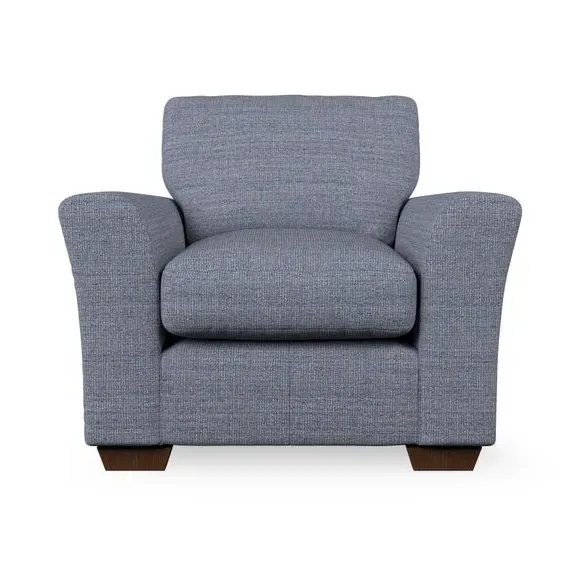 * Classical modern style* Flared arms* Stitched arm detailing* High back* Serpentine seat springs* Choose your support, fabric and leg colour This armchair's soft, swept armrests and refined stitching details give it an elegant look. The fibre-filled back cushion offers outstanding support, while the seat can be customised with either foam or ‘Qualofill Blue’ fibre filling. Supported by durable serpentine springs and stylish hardwood legs in two finishes, this armchair is both supportive and stylish, making it a perfect accent for any living space.