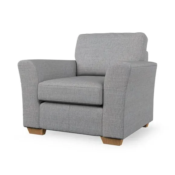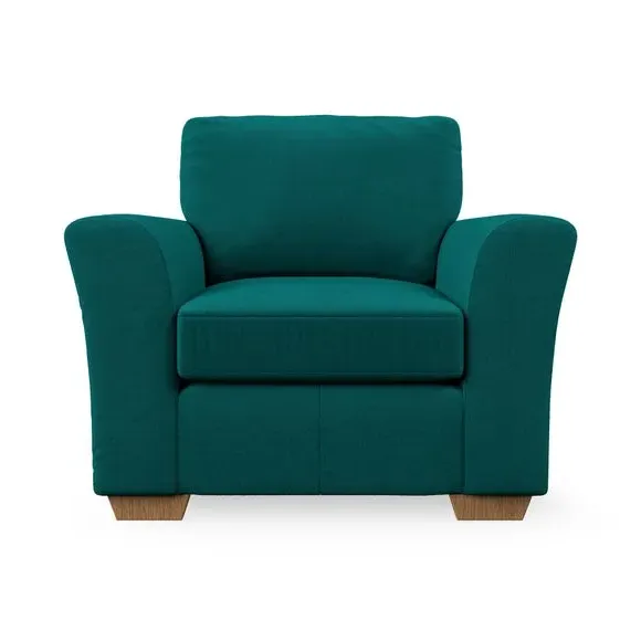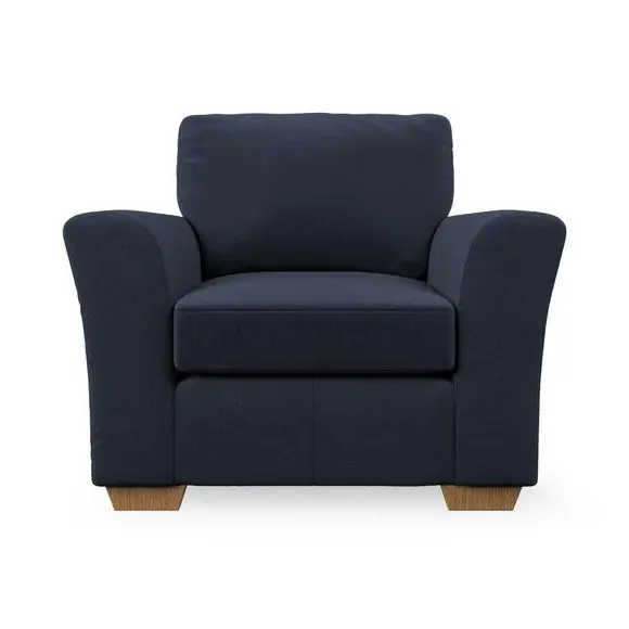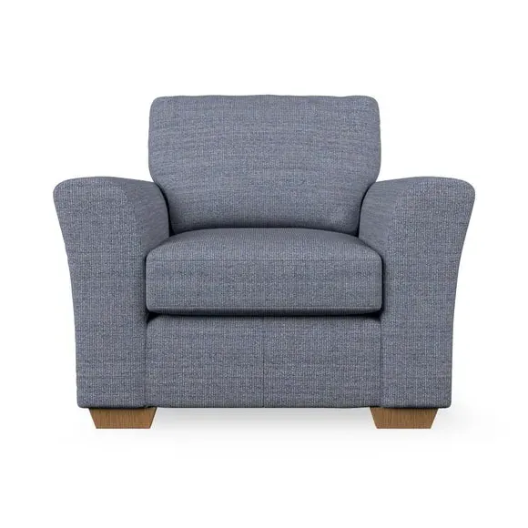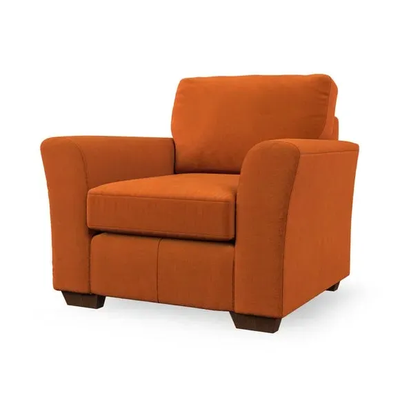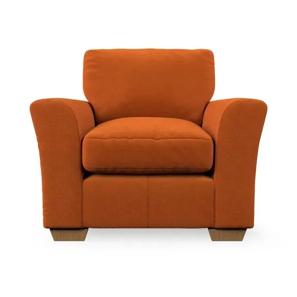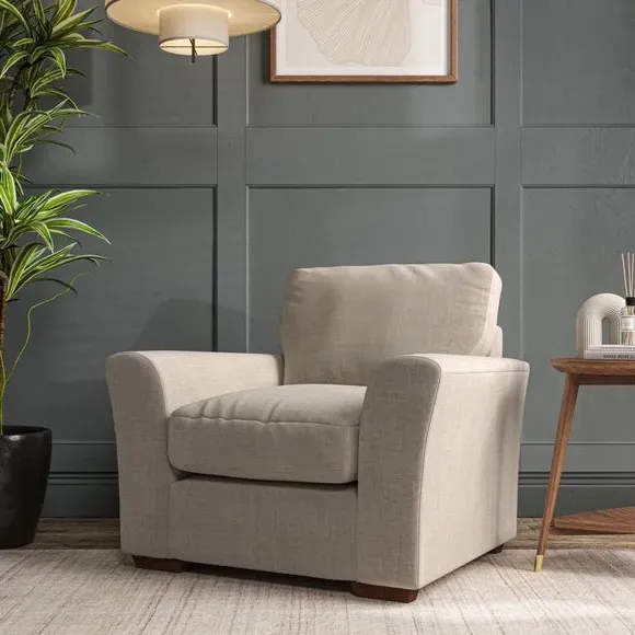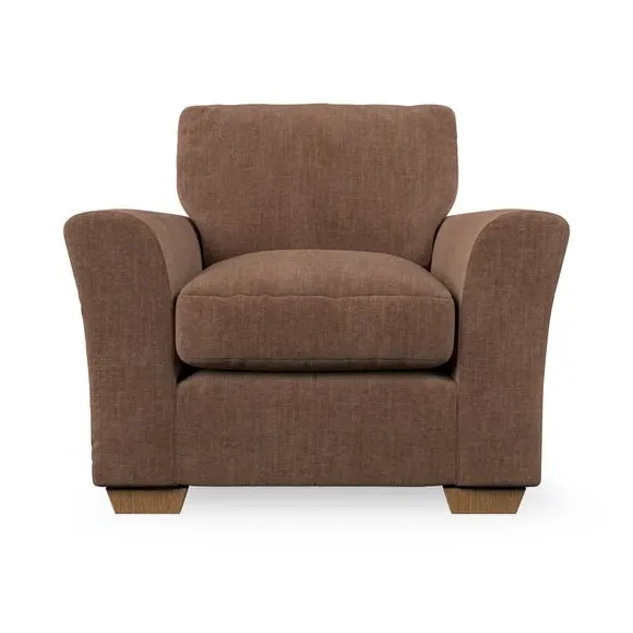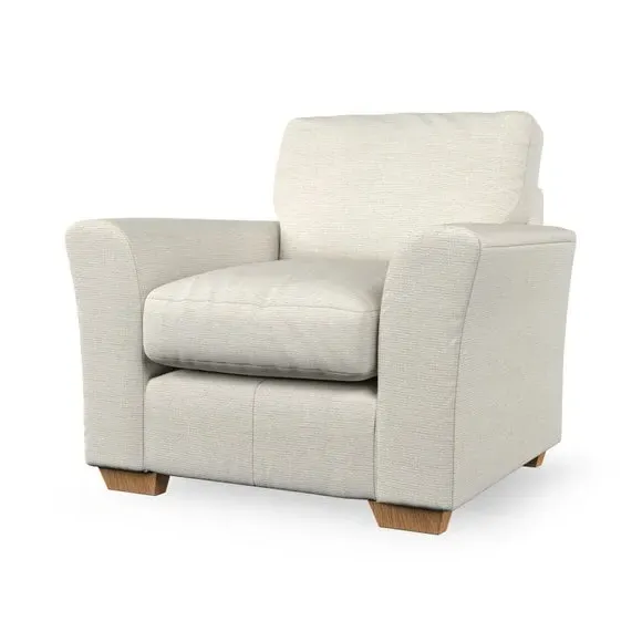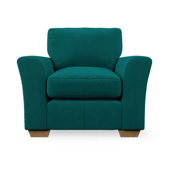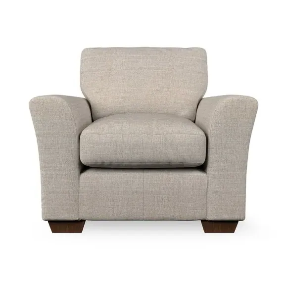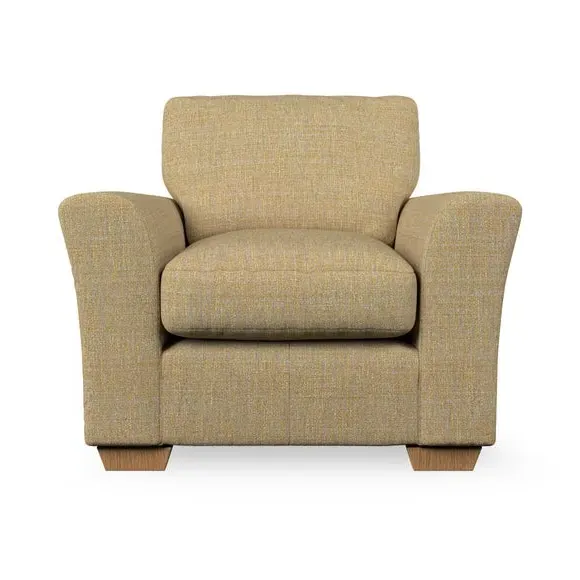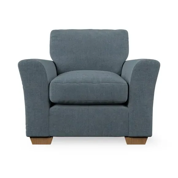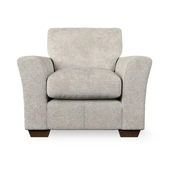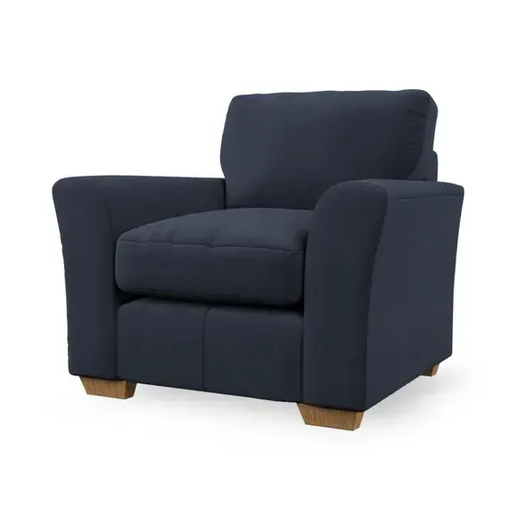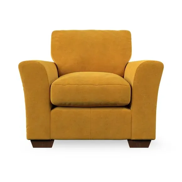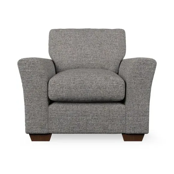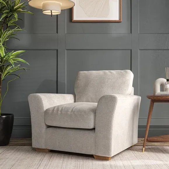* Classical modern style* Flared arms* Stitched arm detailing* High back* Serpentine seat springs* Choose your support, fabric and leg colour This armchair's soft, swept armrests and refined stitching details give it an elegant look. The fibre-filled back cushion offers outstanding support, while the seat can be customised with either foam or ‘Qualofill Blue’ fibre filling. Supported by durable serpentine springs and stylish hardwood legs in two finishes, this armchair is both supportive and stylish, making it a perfect accent for any living space.