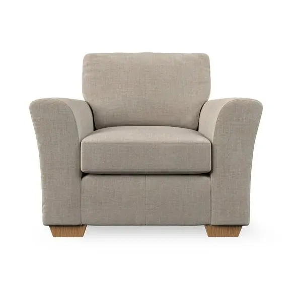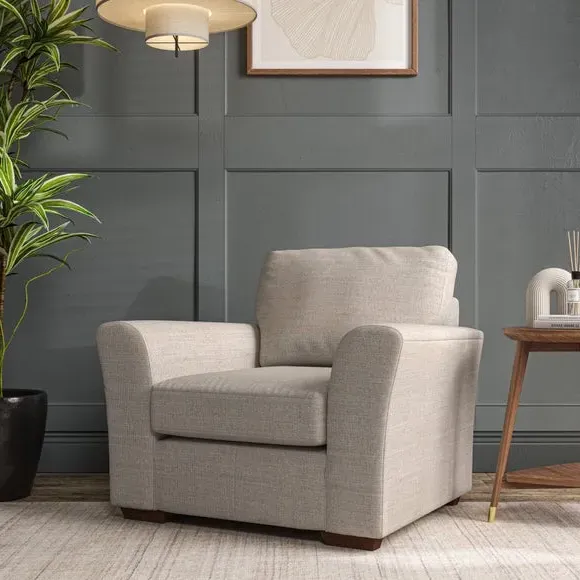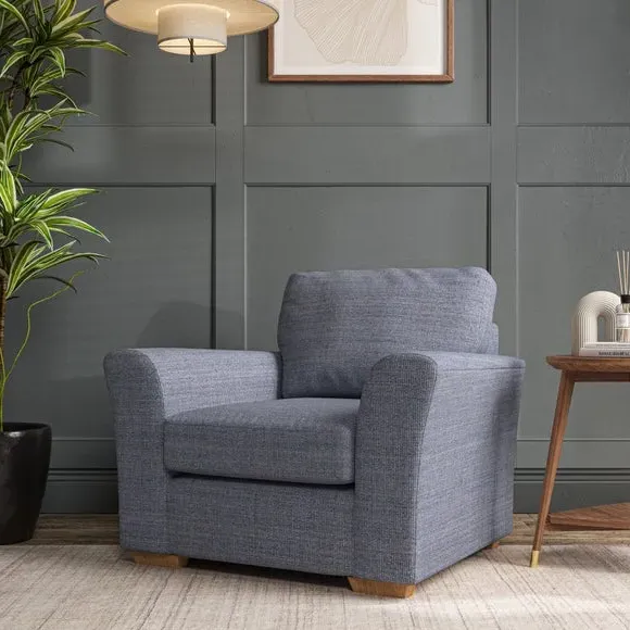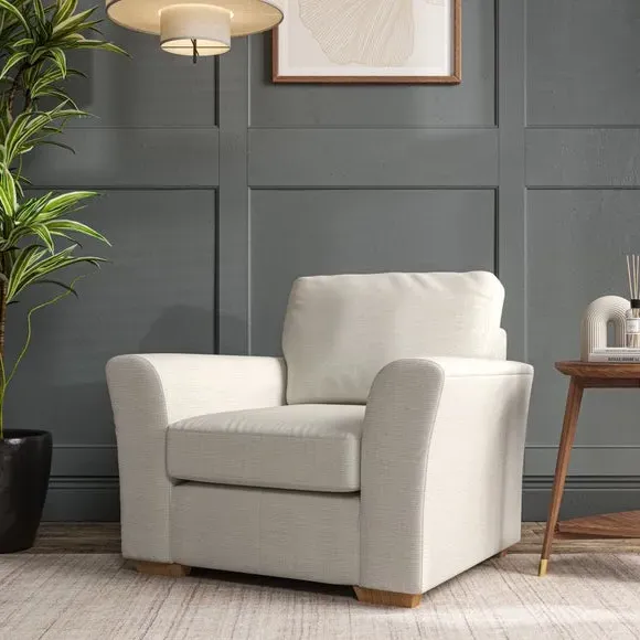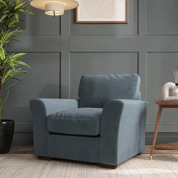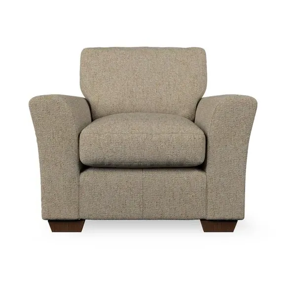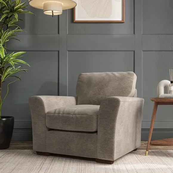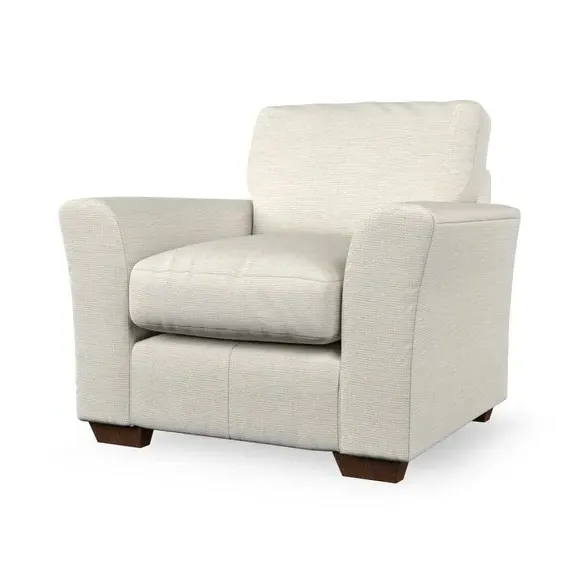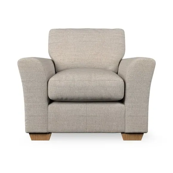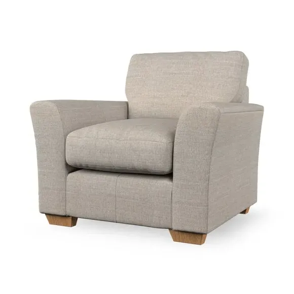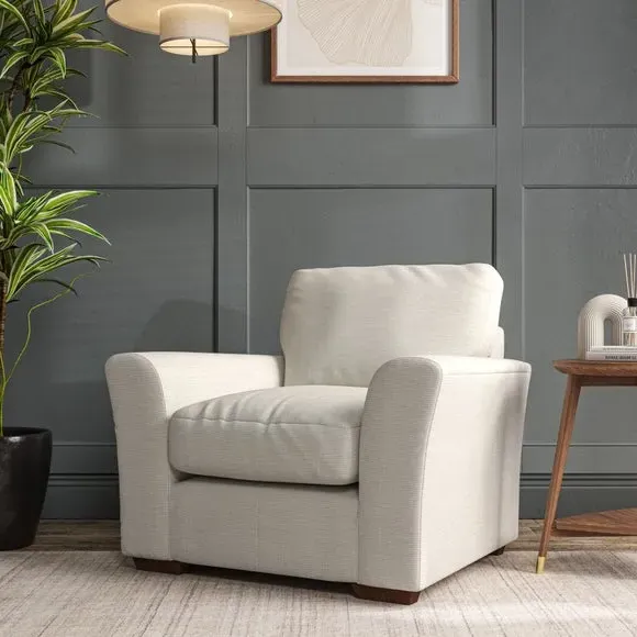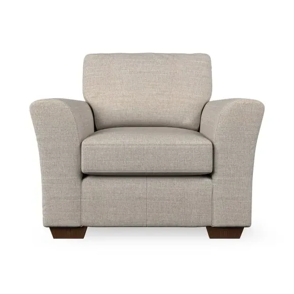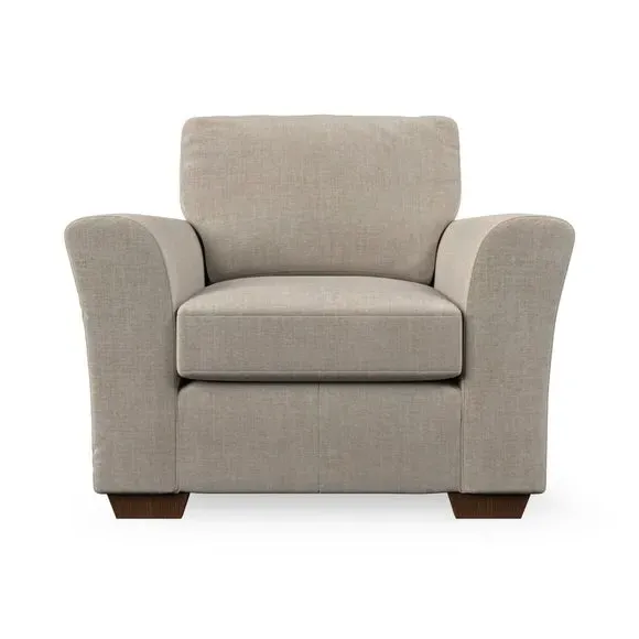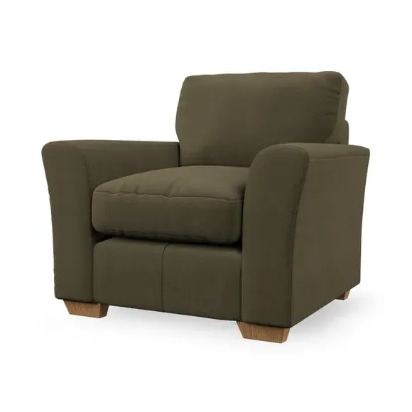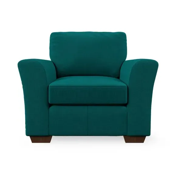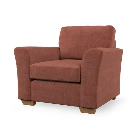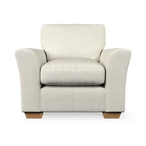* Classical modern style* Flared arms* Stitched arm detailing* High back* Serpentine seat springs* Choose your support, fabric and leg colour This armchair's soft, swept armrests and refined stitching details give it an elegant look. The fibre-filled back cushion offers outstanding support, while the seat can be customised with either foam or ‘Qualofill Blue’ fibre filling. Supported by durable serpentine springs and stylish hardwood legs in two finishes, this armchair is both supportive and stylish, making it a perfect accent for any living space.