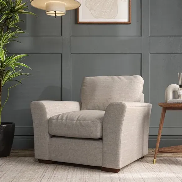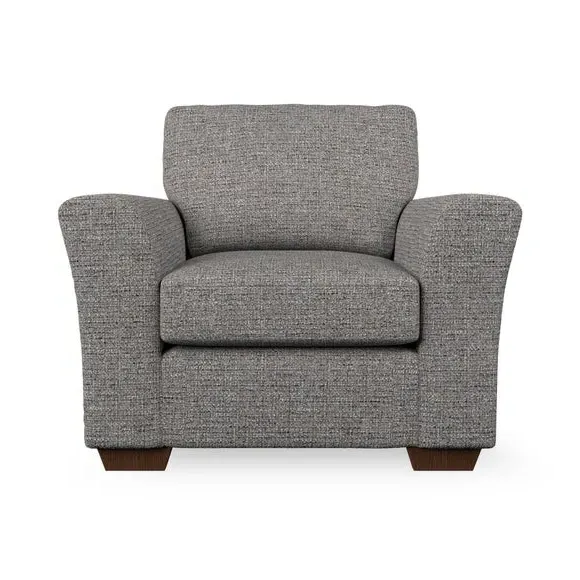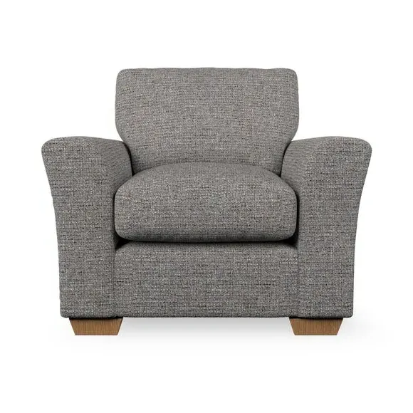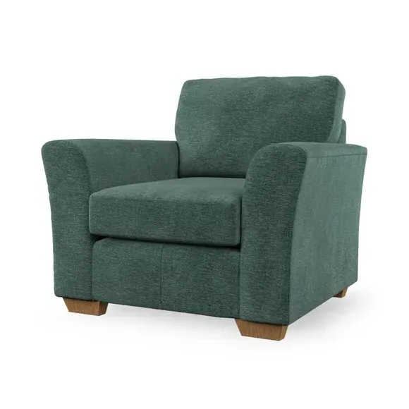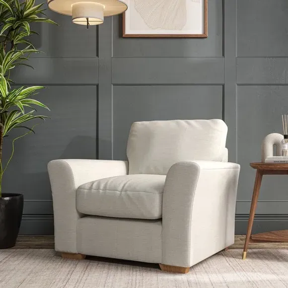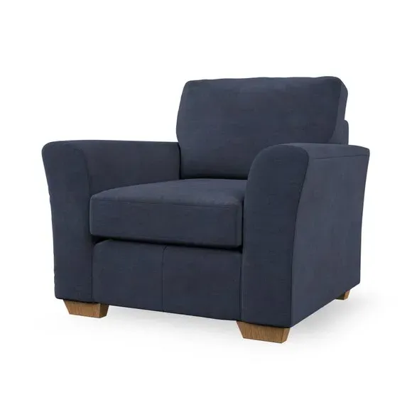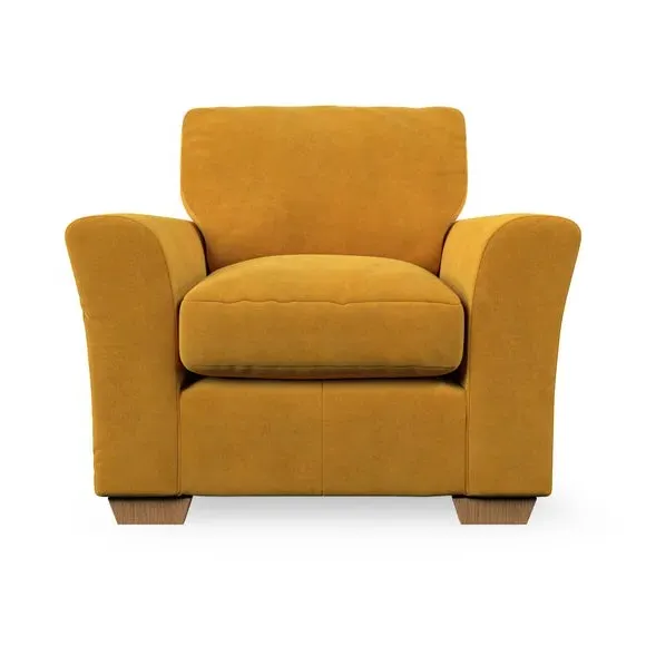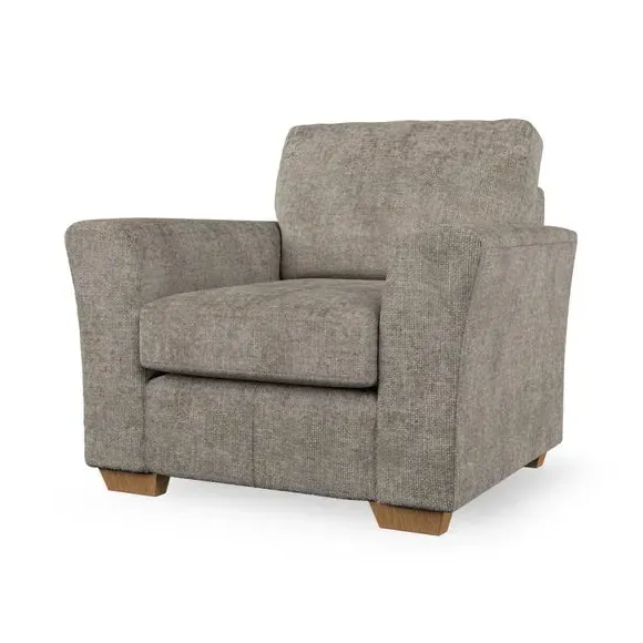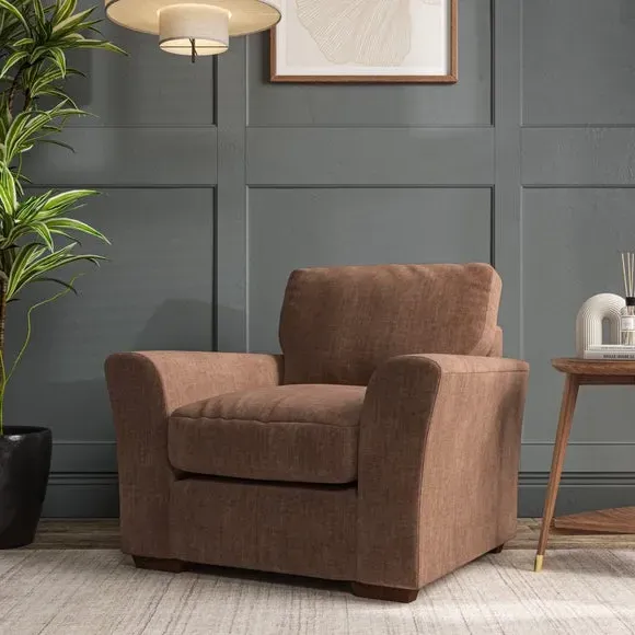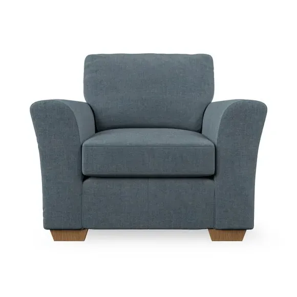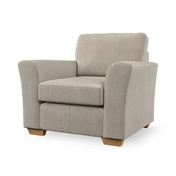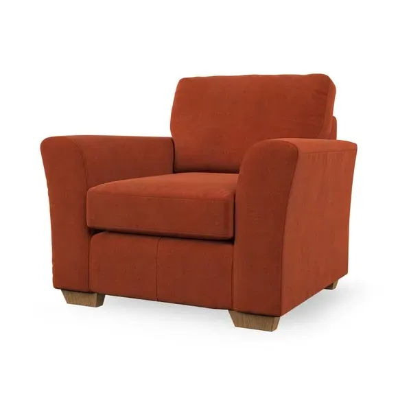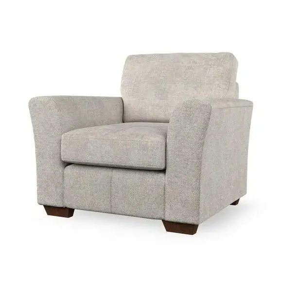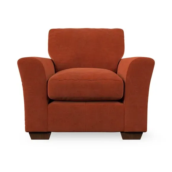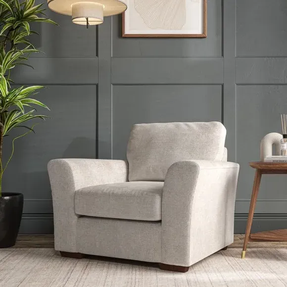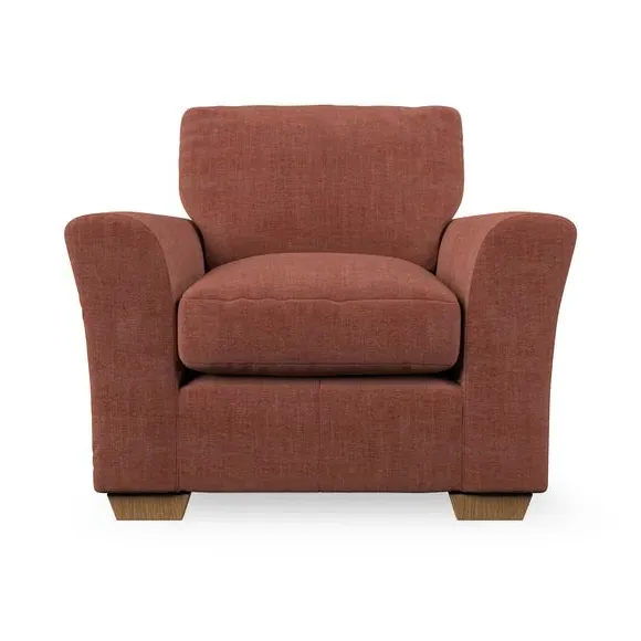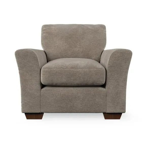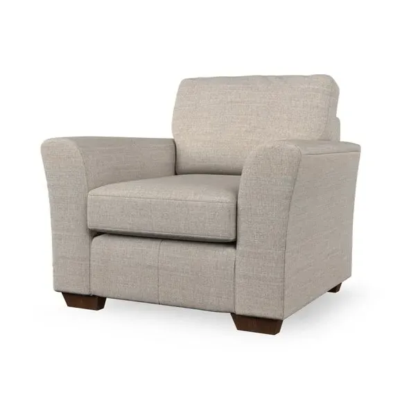 * Classical modern style* Flared arms* Stitched arm detailing* High back* Serpentine seat springs* Choose your support, fabric and leg colour This armchair's soft, swept armrests and refined stitching details give it an elegant look. The fibre-filled back cushion offers outstanding support, while the seat can be customised with either foam or ‘Qualofill Blue’ fibre filling. Supported by durable serpentine springs and stylish hardwood legs in two finishes, this armchair is both supportive and stylish, making it a perfect accent for any living space.
