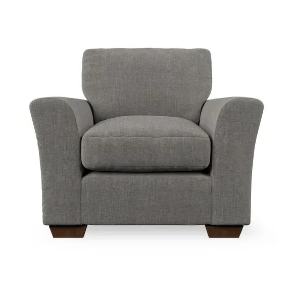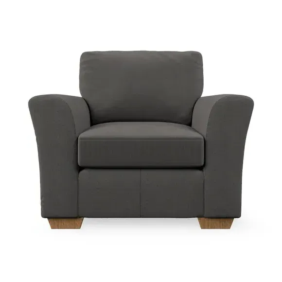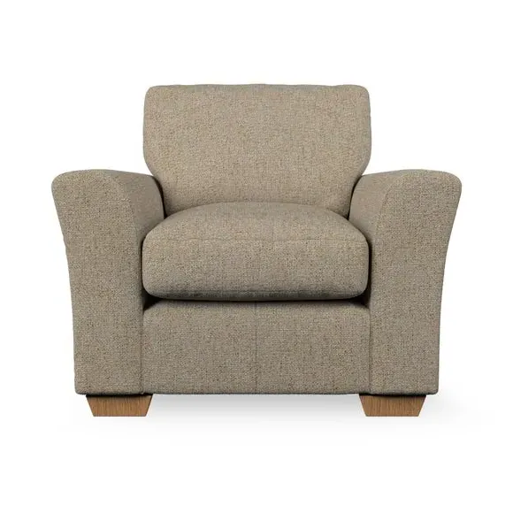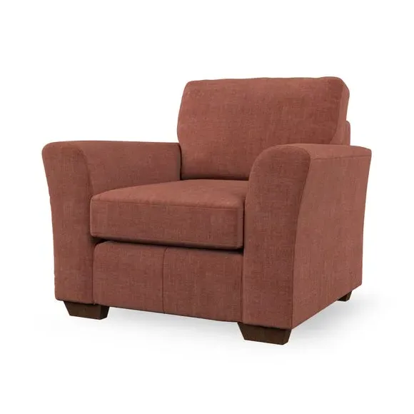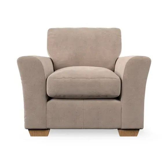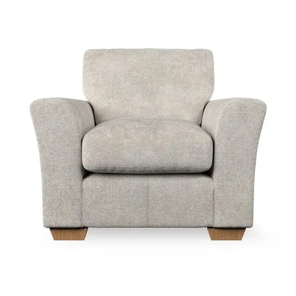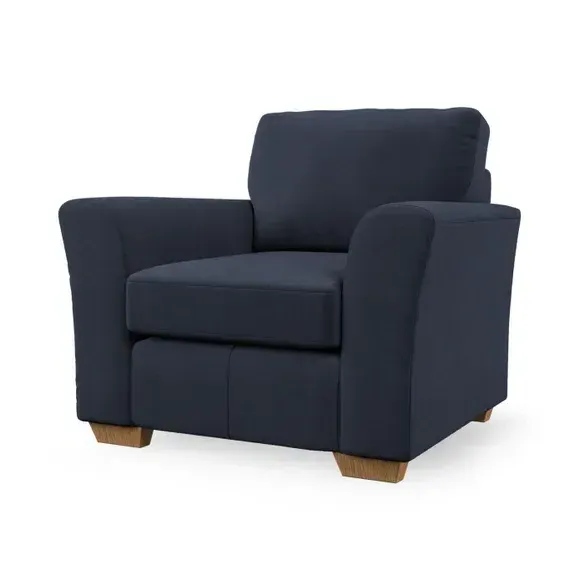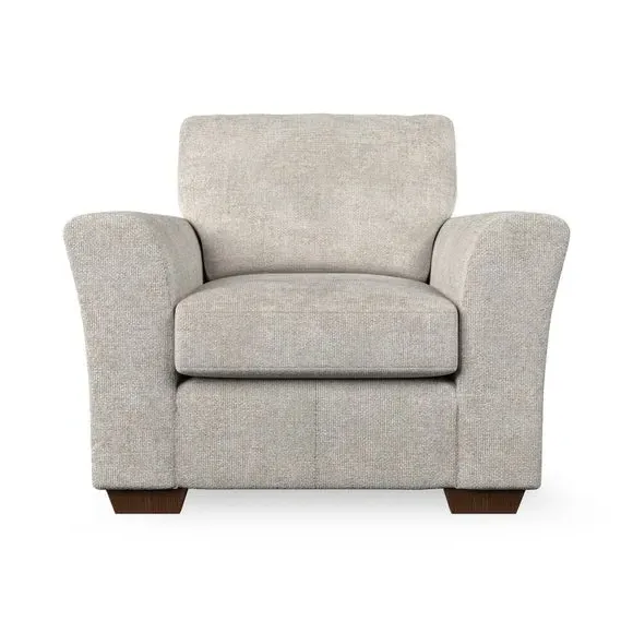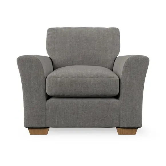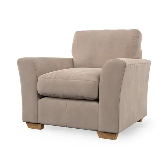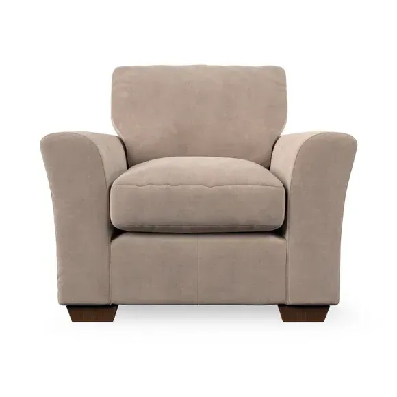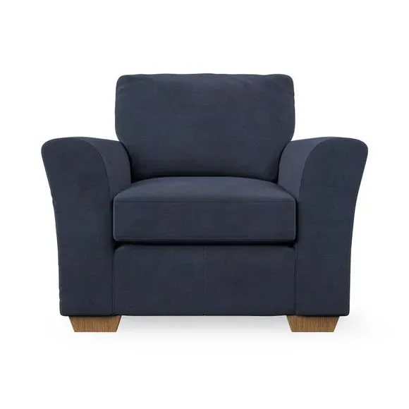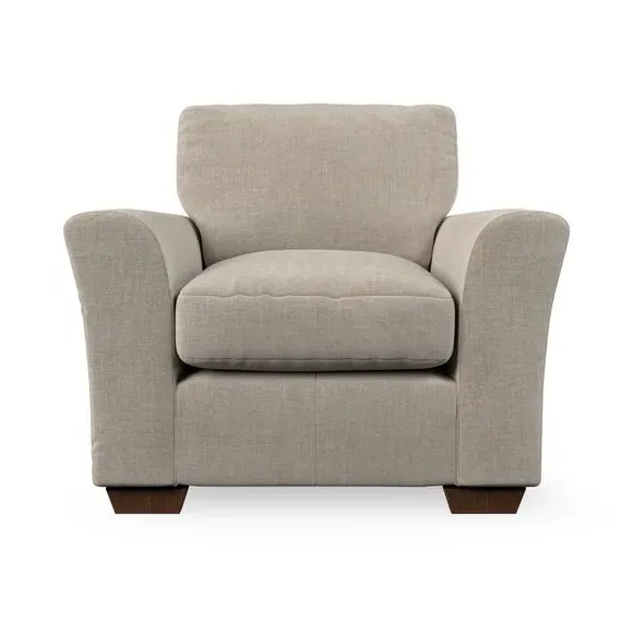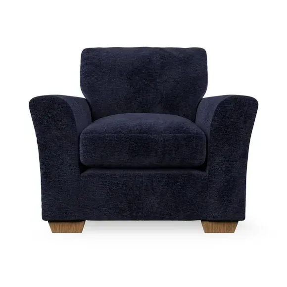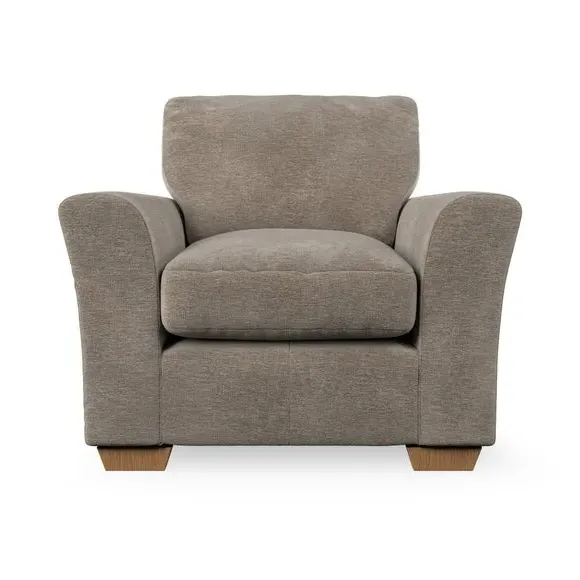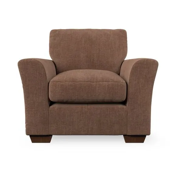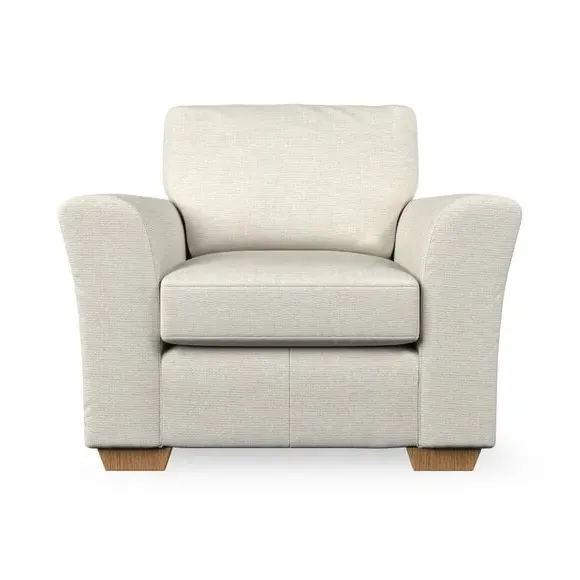 * Classical modern style* Flared arms* Stitched arm detailing* High back* Serpentine seat springs* Choose your support, fabric and leg colour This armchair's soft, swept armrests and refined stitching details give it an elegant look. The fibre-filled back cushion offers outstanding support, while the seat can be customised with either foam or ‘Qualofill Blue’ fibre filling. Supported by durable serpentine springs and stylish hardwood legs in two finishes, this armchair is both supportive and stylish, making it a perfect accent for any living space.