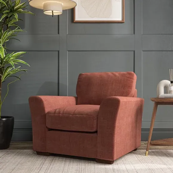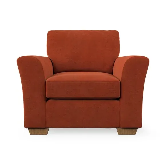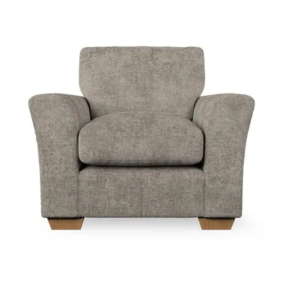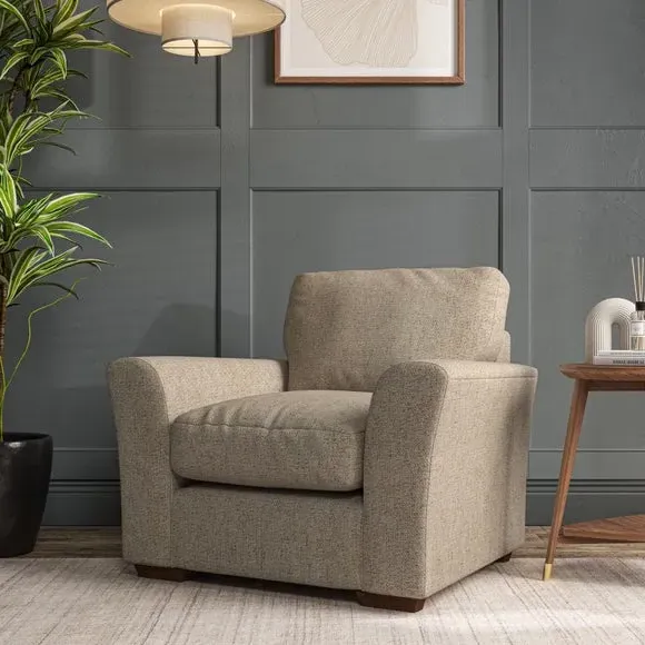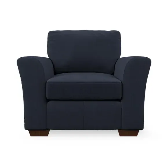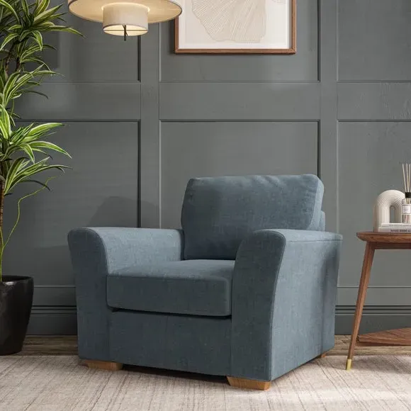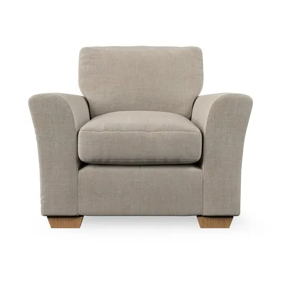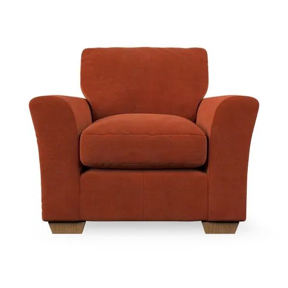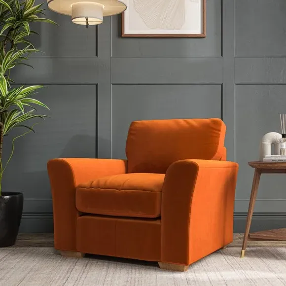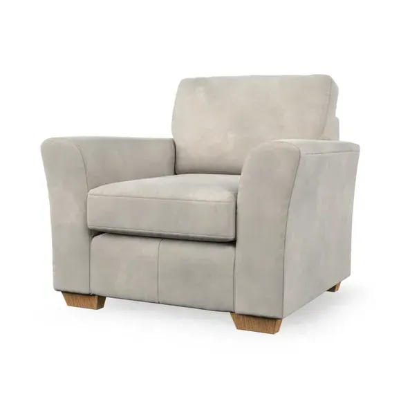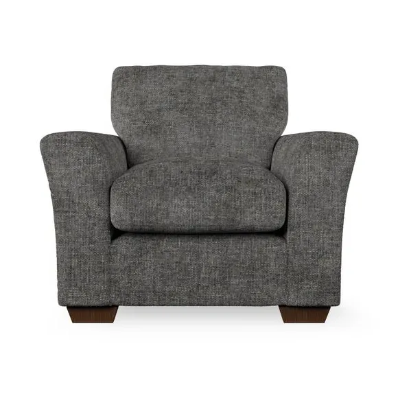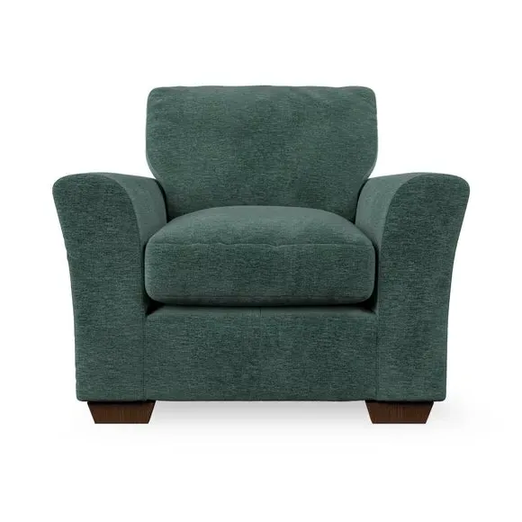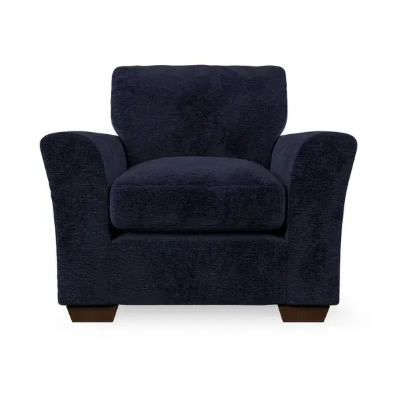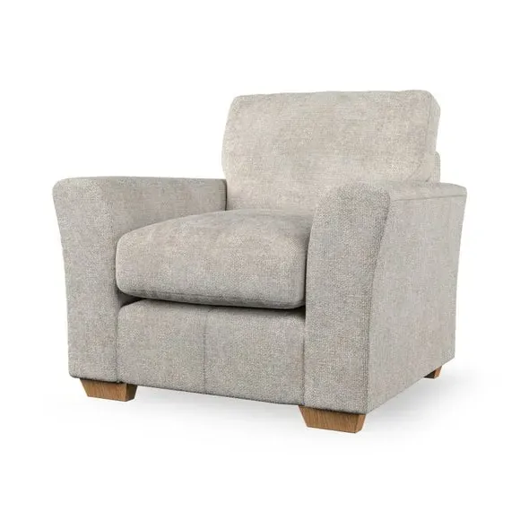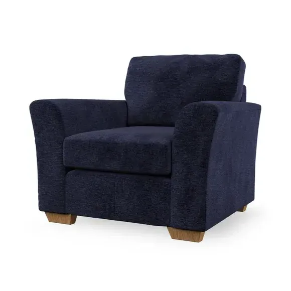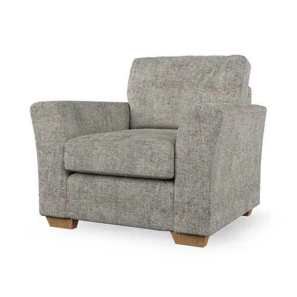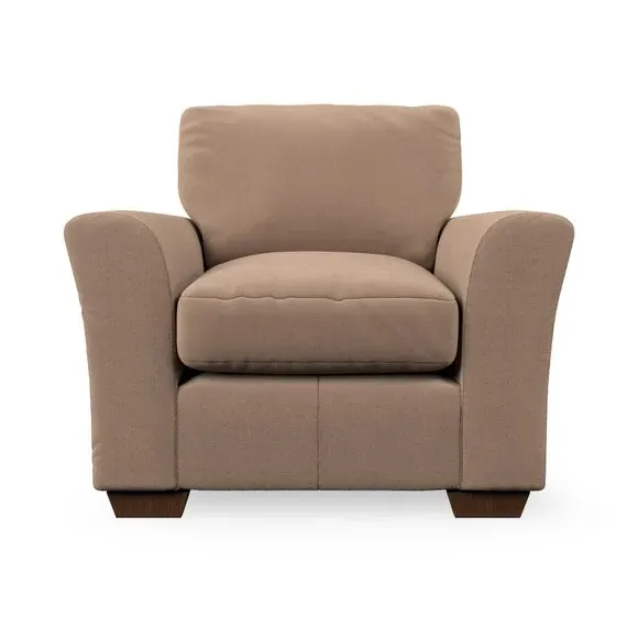 * Classical modern style* Flared arms* Stitched arm detailing* High back* Serpentine seat springs* Choose your support, fabric and leg colour This armchair's soft, swept armrests and refined stitching details give it an elegant look. The fibre-filled back cushion offers outstanding support, while the seat can be customised with either foam or ‘Qualofill Blue’ fibre filling. Supported by durable serpentine springs and stylish hardwood legs in two finishes, this armchair is both supportive and stylish, making it a perfect accent for any living space.