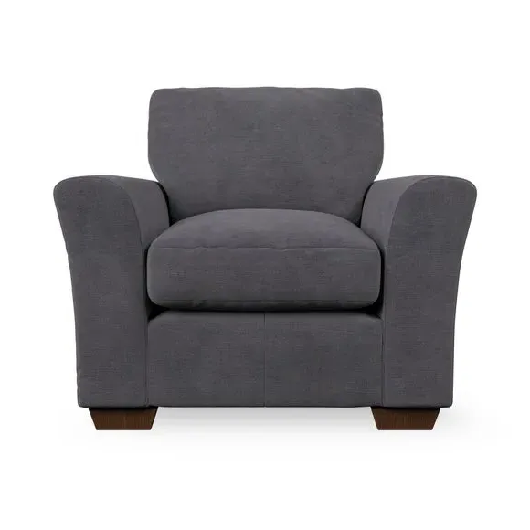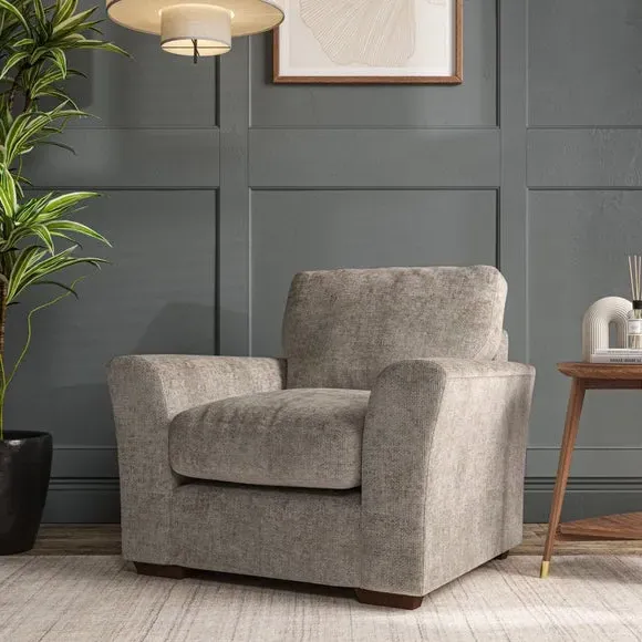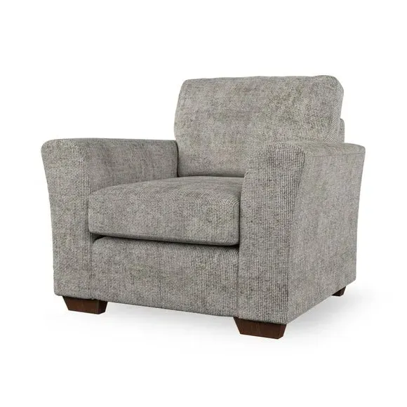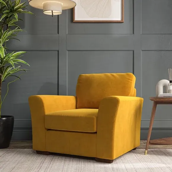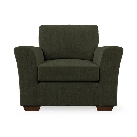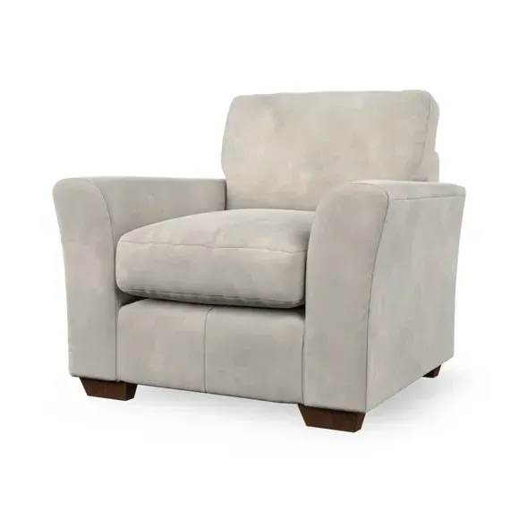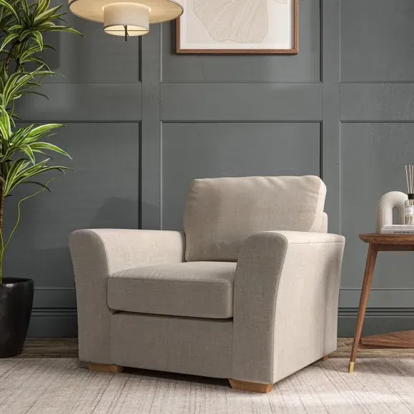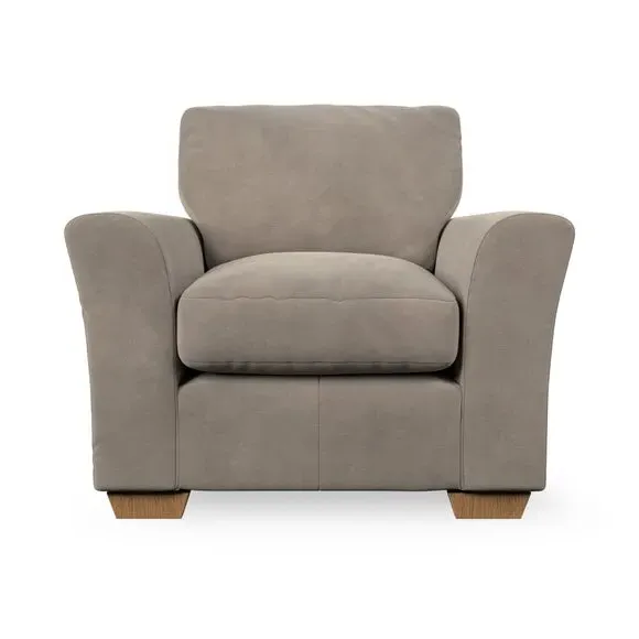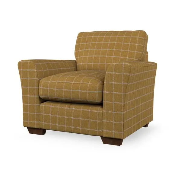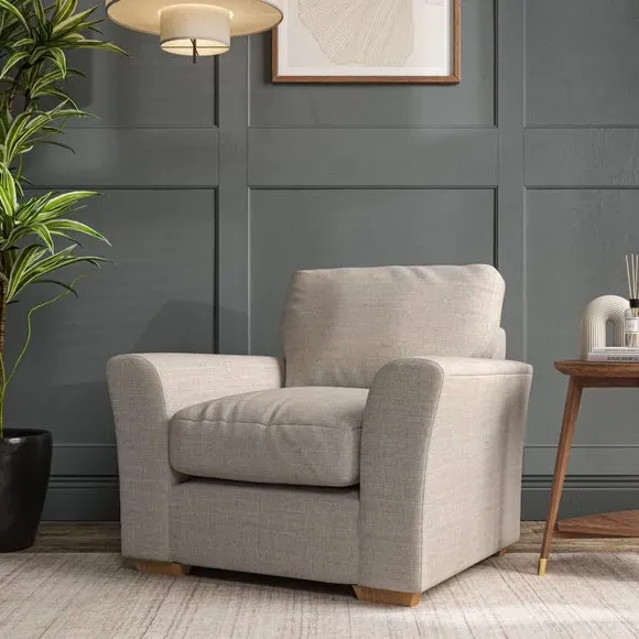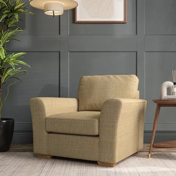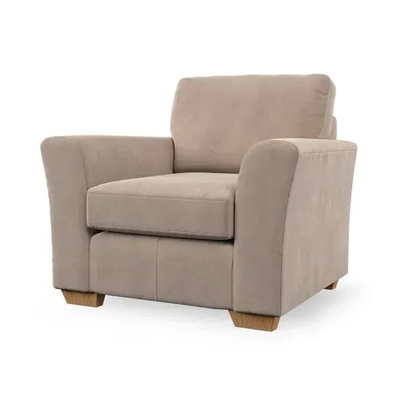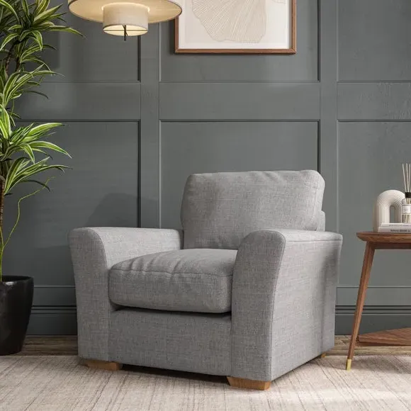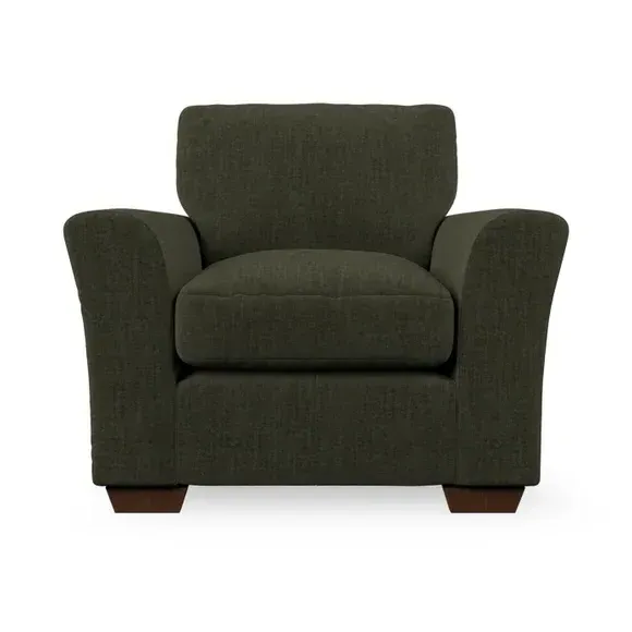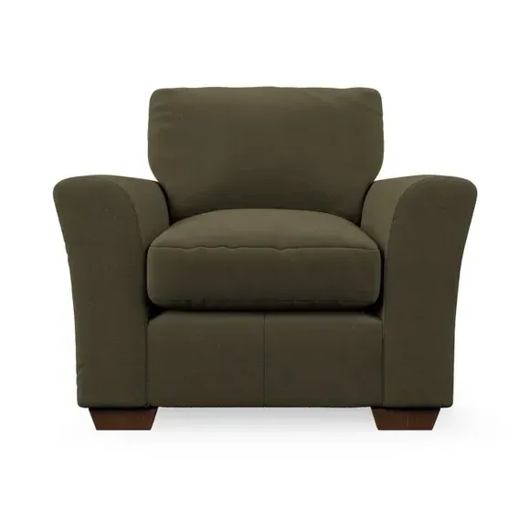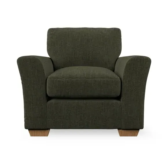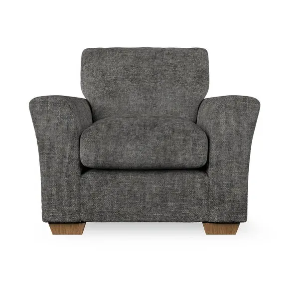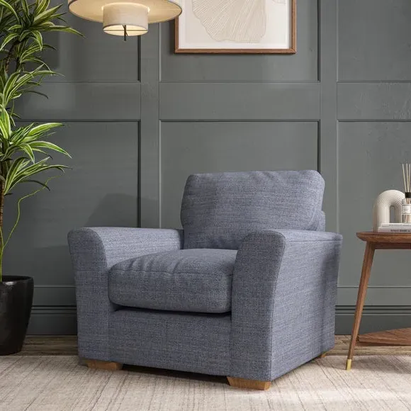 * Classical modern style* Flared arms* Stitched arm detailing* High back* Serpentine seat springs* Choose your support, fabric and leg colour This armchair's soft, swept armrests and refined stitching details give it an elegant look. The fibre-filled back cushion offers outstanding support, while the seat can be customised with either foam or ‘Qualofill Blue’ fibre filling. Supported by durable serpentine springs and stylish hardwood legs in two finishes, this armchair is both supportive and stylish, making it a perfect accent for any living space.