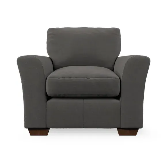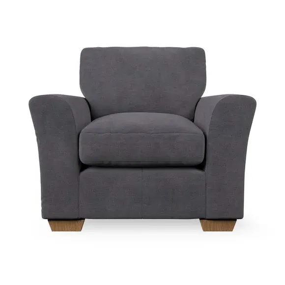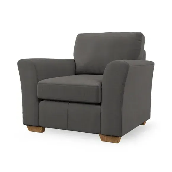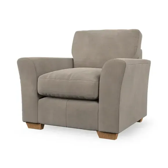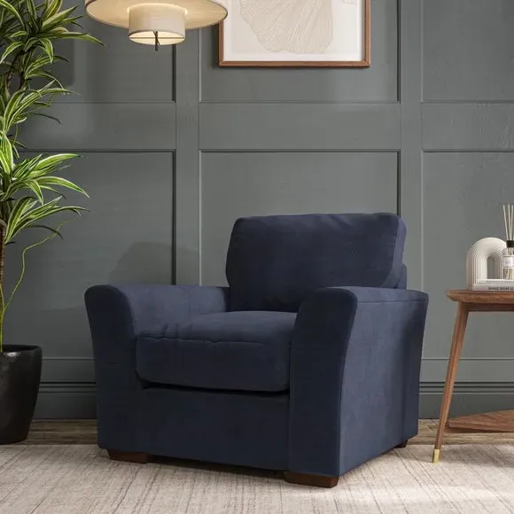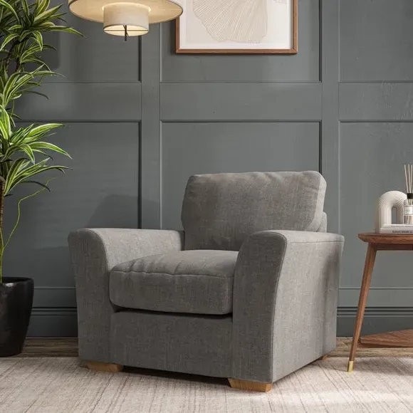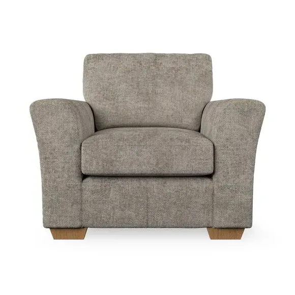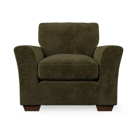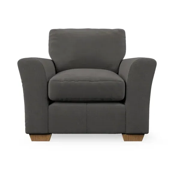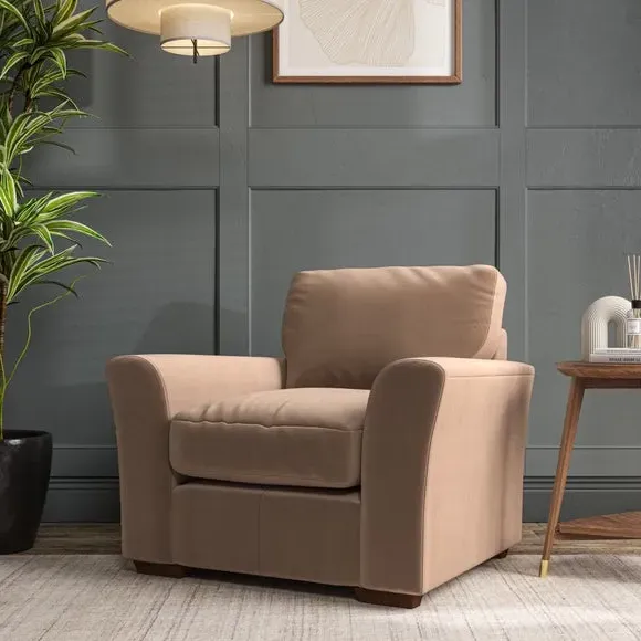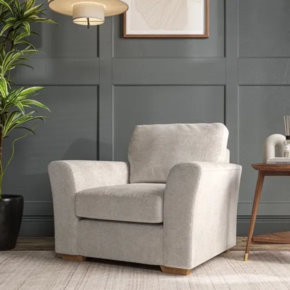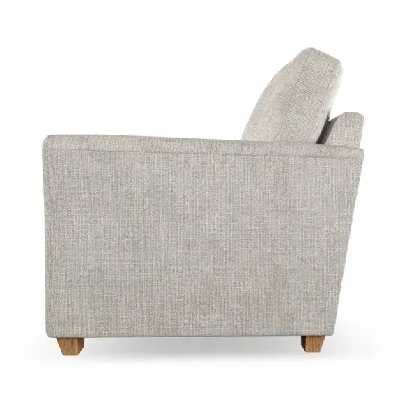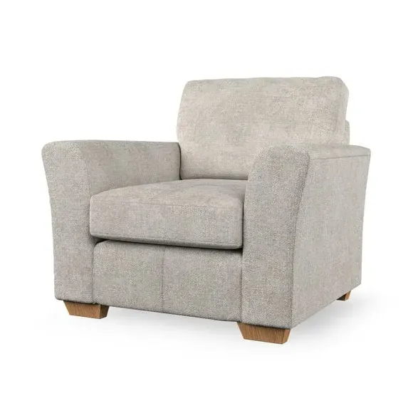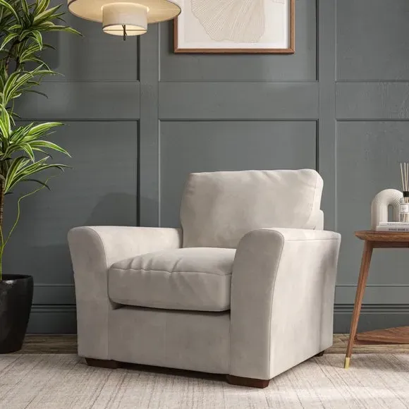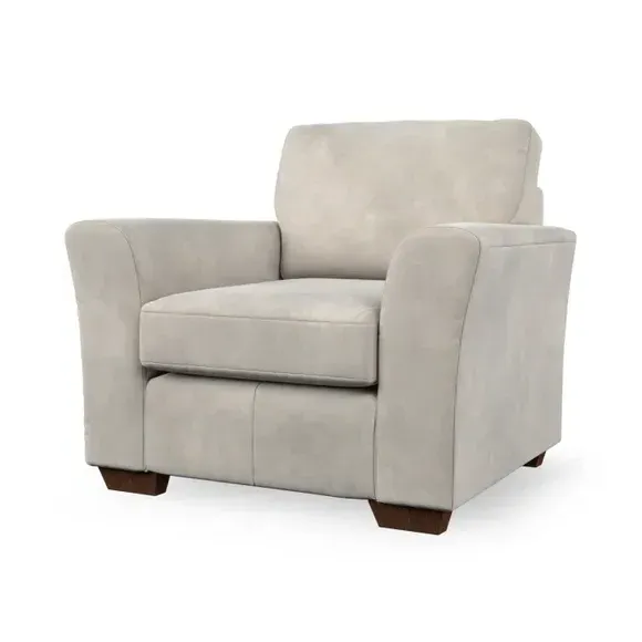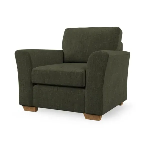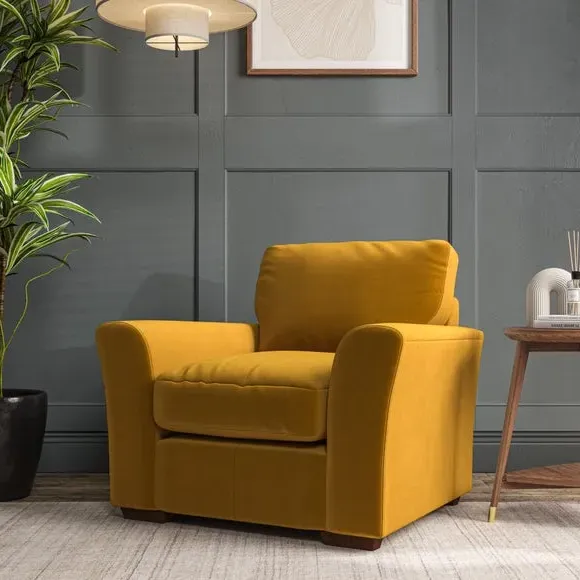 * Classical modern style* Flared arms* Stitched arm detailing* High back* Serpentine seat springs* Choose your support, fabric and leg colour This armchair's soft, swept armrests and refined stitching details give it an elegant look. The fibre-filled back cushion offers outstanding support, while the seat can be customised with either foam or ‘Qualofill Blue’ fibre filling. Supported by durable serpentine springs and stylish hardwood legs in two finishes, this armchair is both supportive and stylish, making it a perfect accent for any living space.