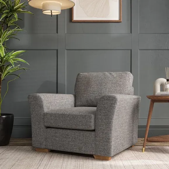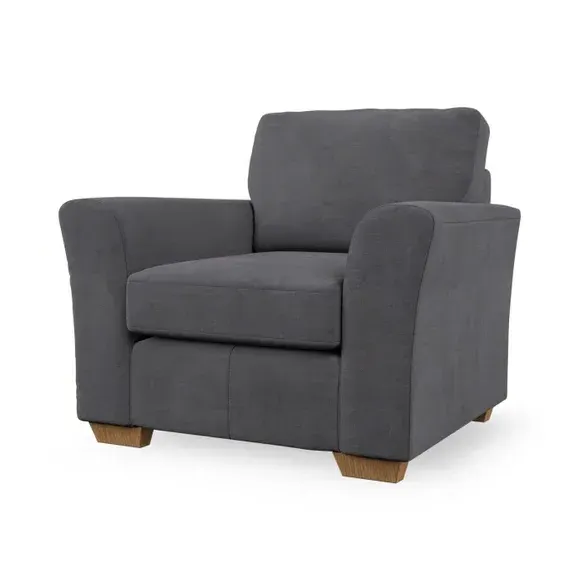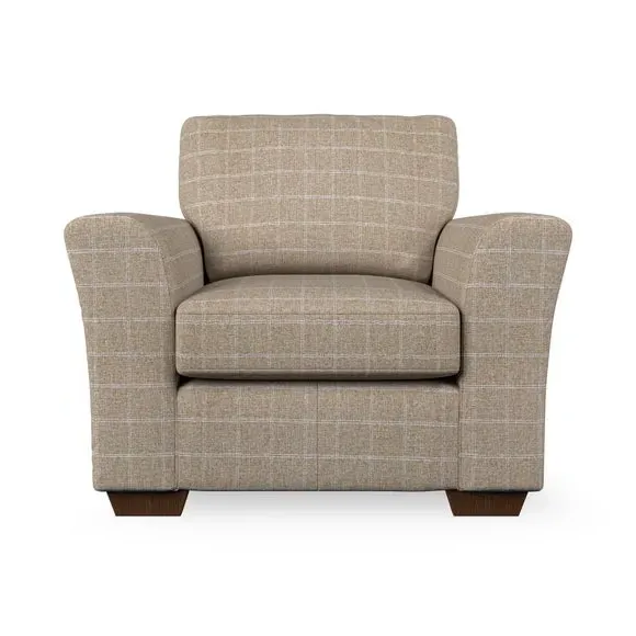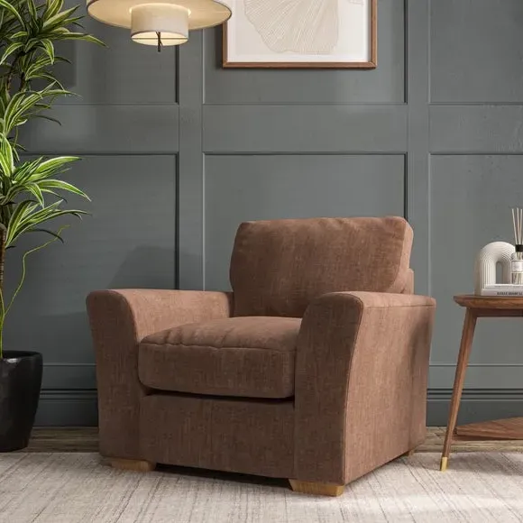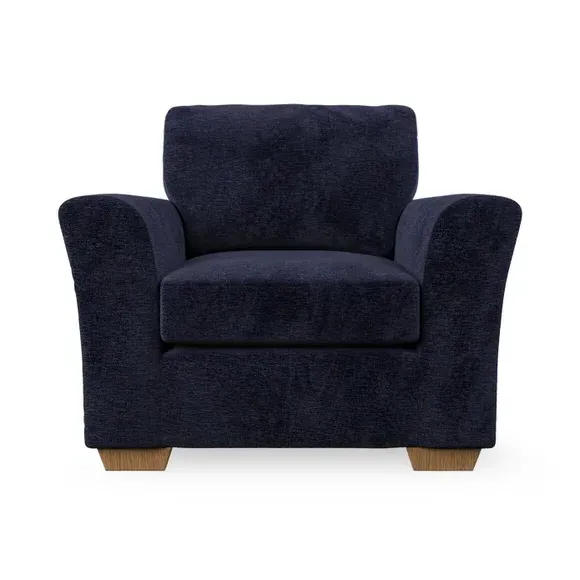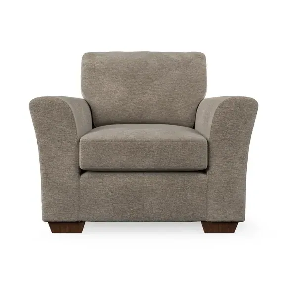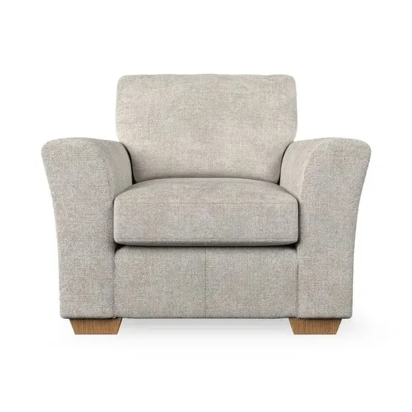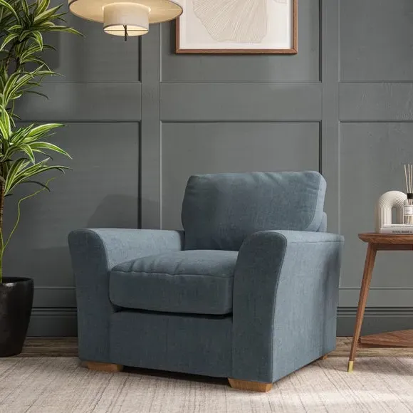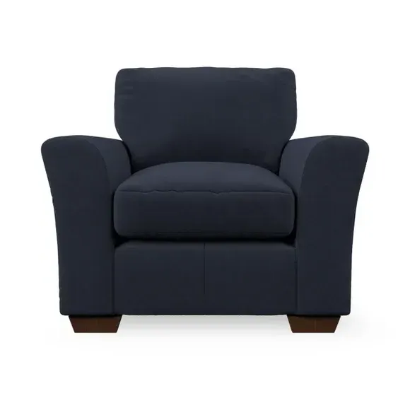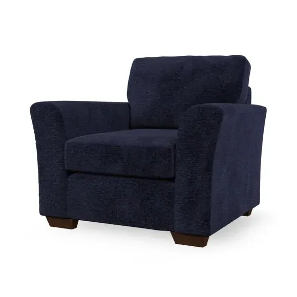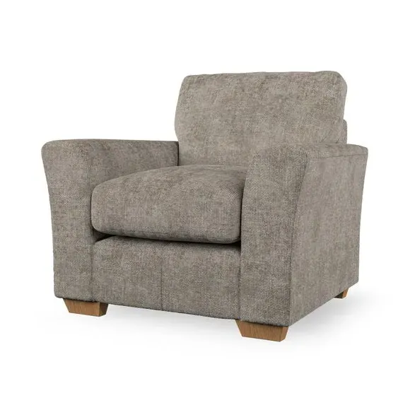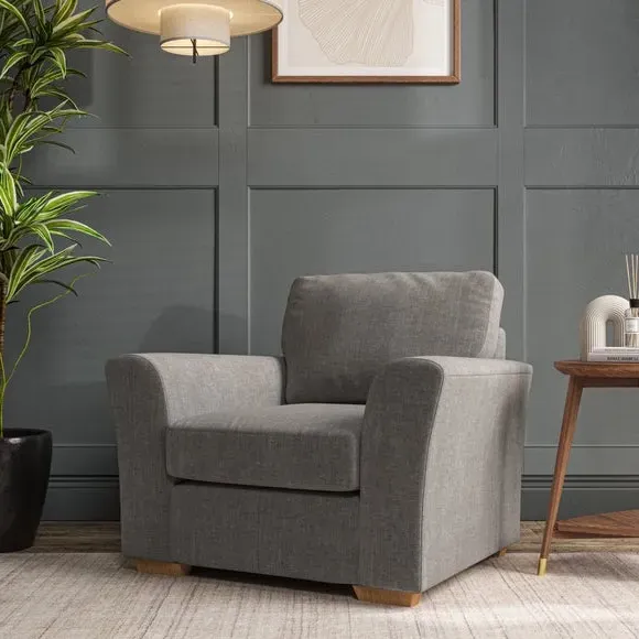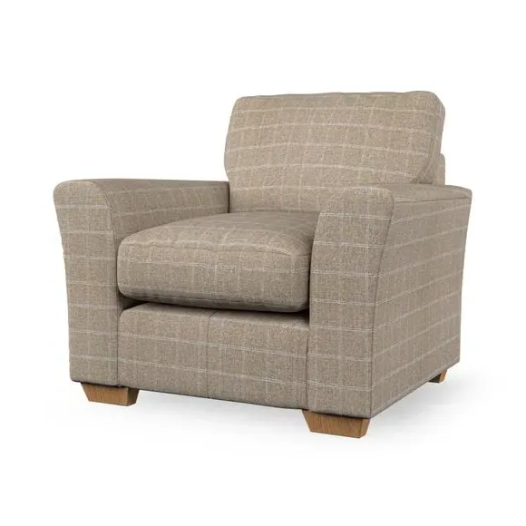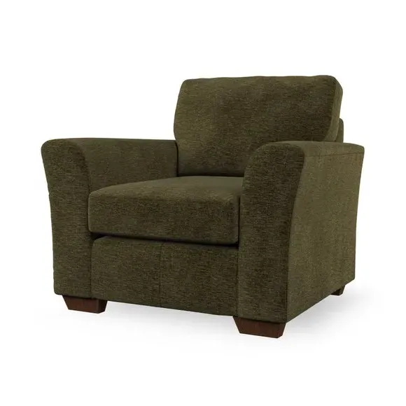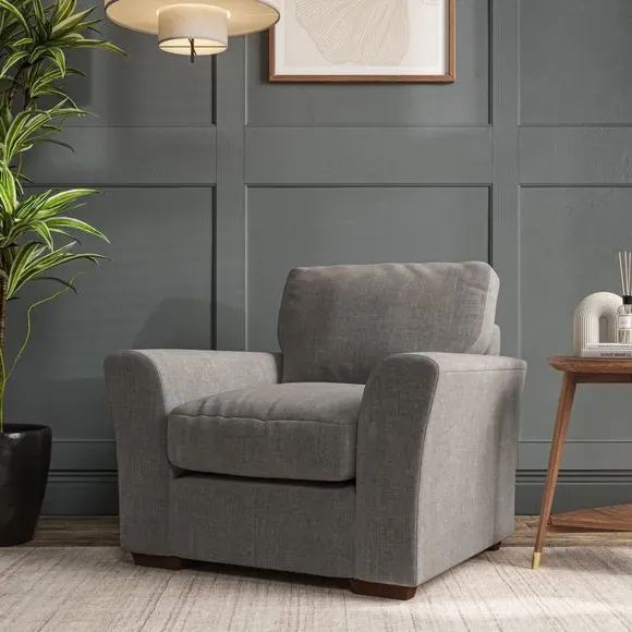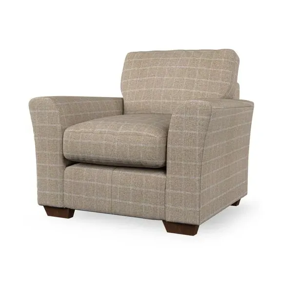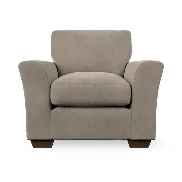* Classical modern style* Flared arms* Stitched arm detailing* High back* Serpentine seat springs* Choose your support, fabric and leg colour This armchair's soft, swept armrests and refined stitching details give it an elegant look. The fibre-filled back cushion offers outstanding support, while the seat can be customised with either foam or ‘Qualofill Blue’ fibre filling. Supported by durable serpentine springs and stylish hardwood legs in two finishes, this armchair is both supportive and stylish, making it a perfect accent for any living space.