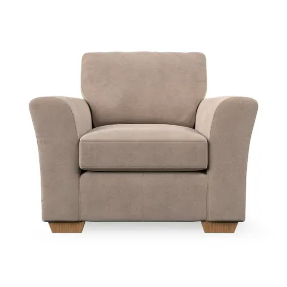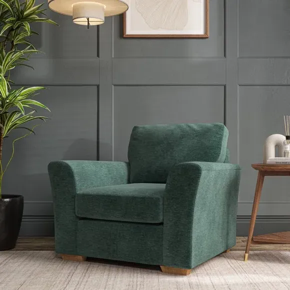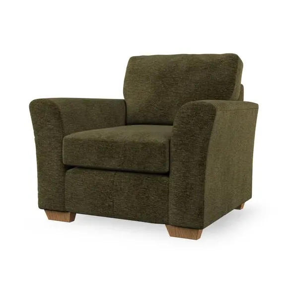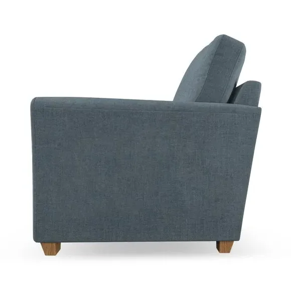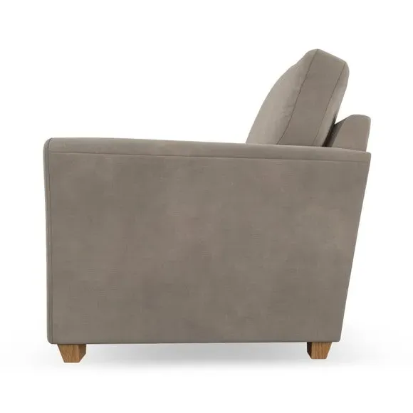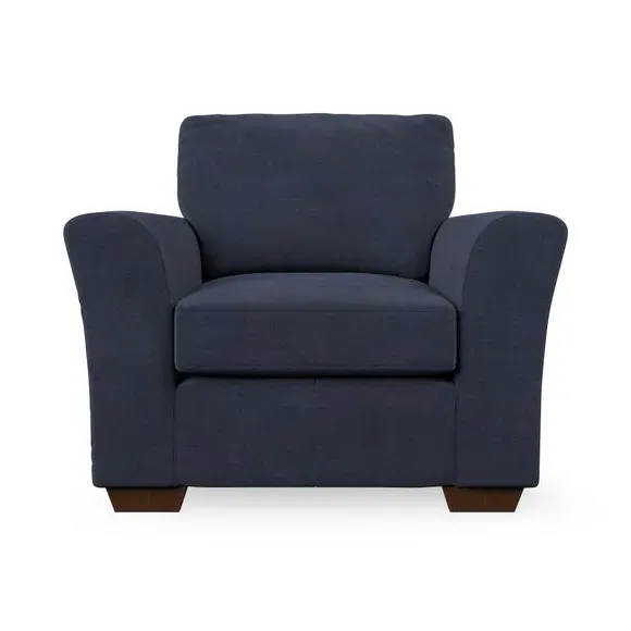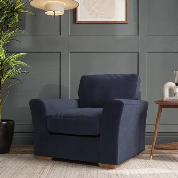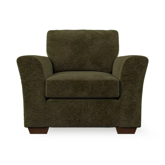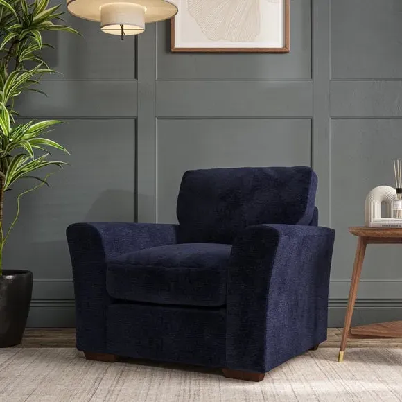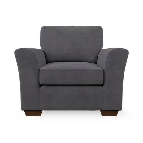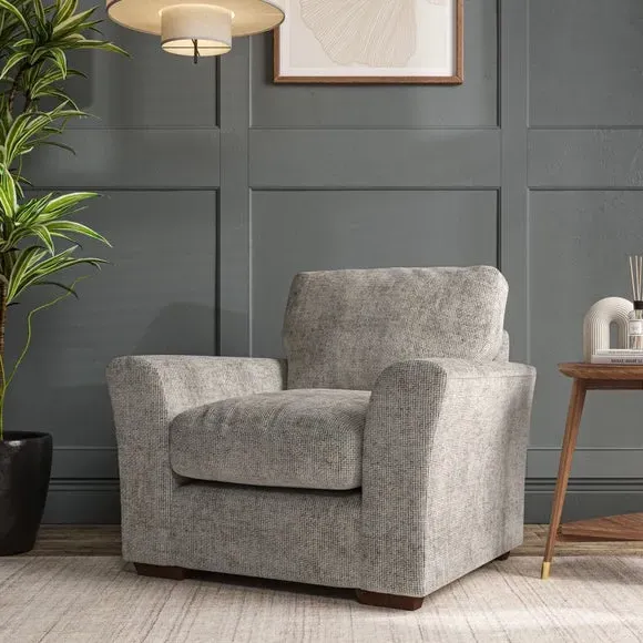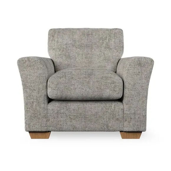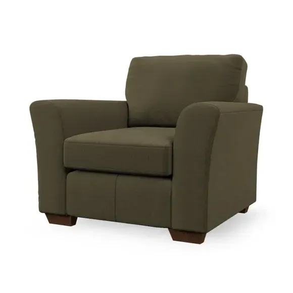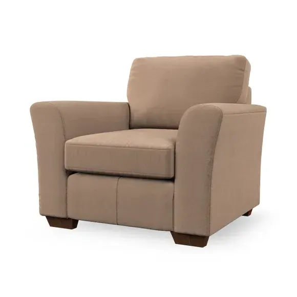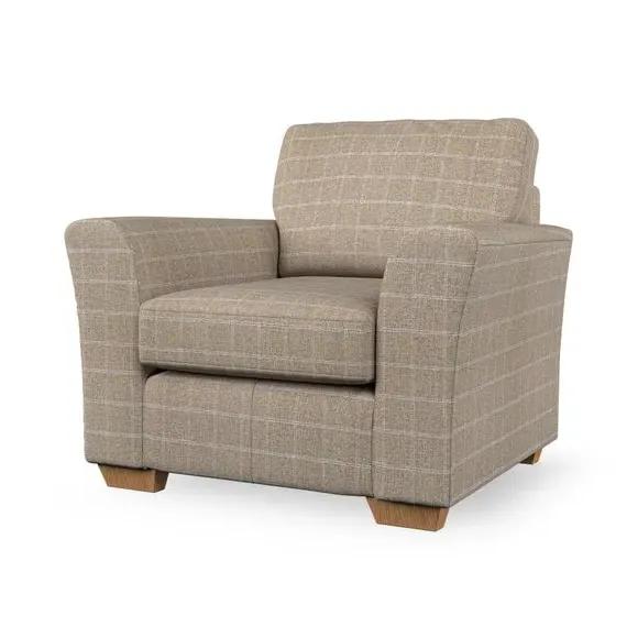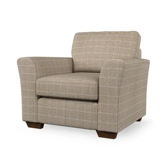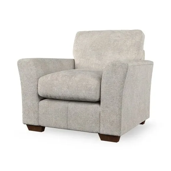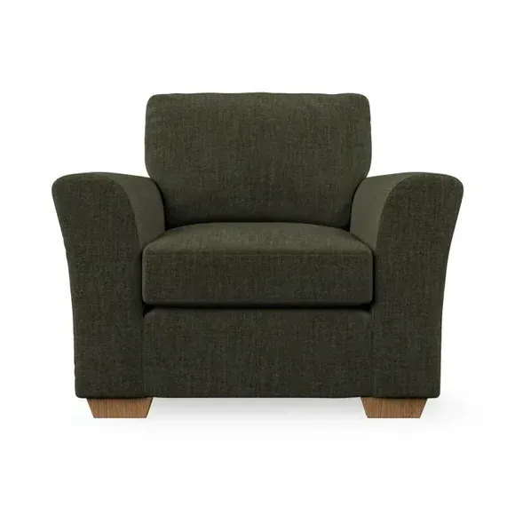 * Classical modern style* Flared arms* Stitched arm detailing* High back* Serpentine seat springs* Choose your support, fabric and leg colour This armchair's soft, swept armrests and refined stitching details give it an elegant look. The fibre-filled back cushion offers outstanding support, while the seat can be customised with either foam or ‘Qualofill Blue’ fibre filling. Supported by durable serpentine springs and stylish hardwood legs in two finishes, this armchair is both supportive and stylish, making it a perfect accent for any living space.