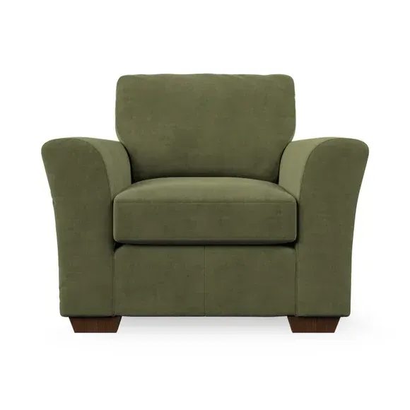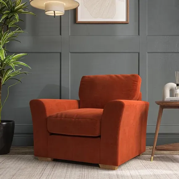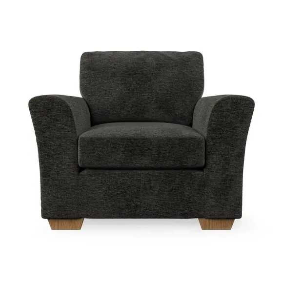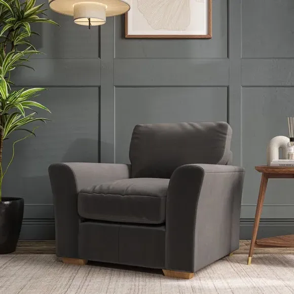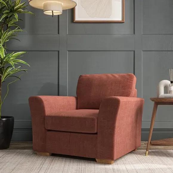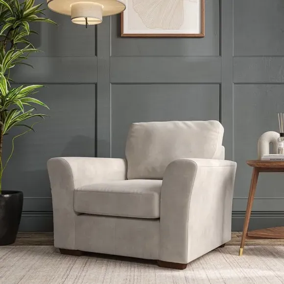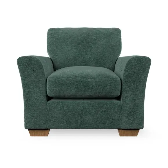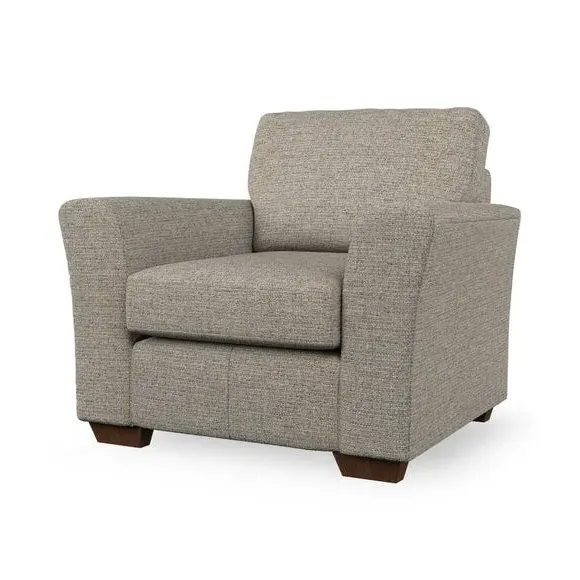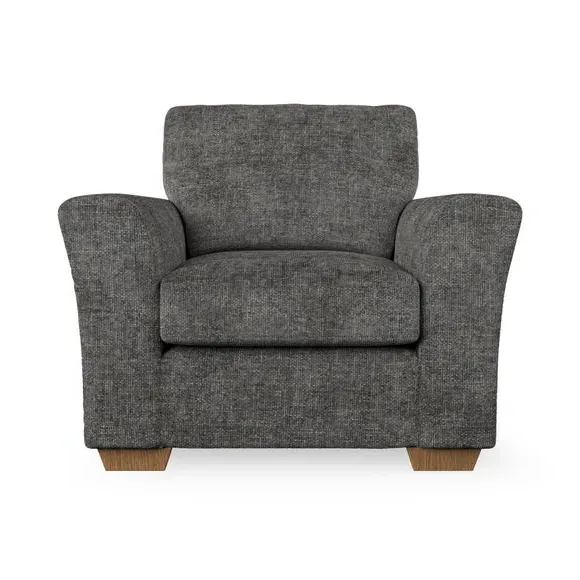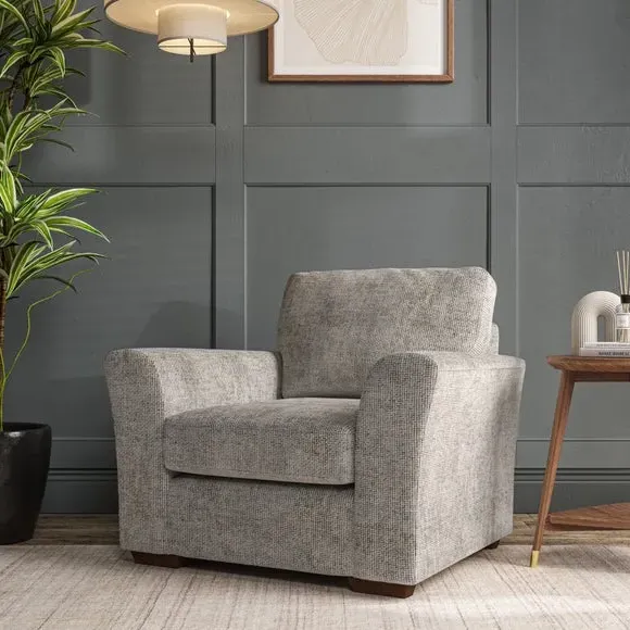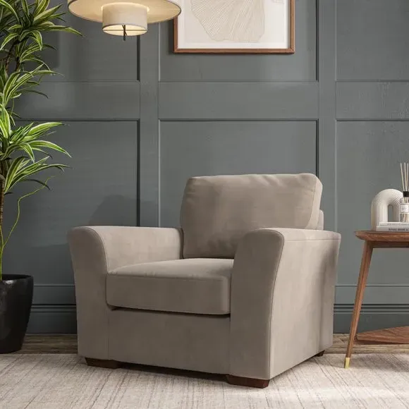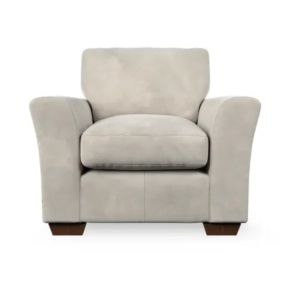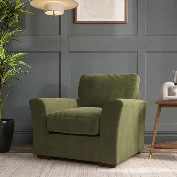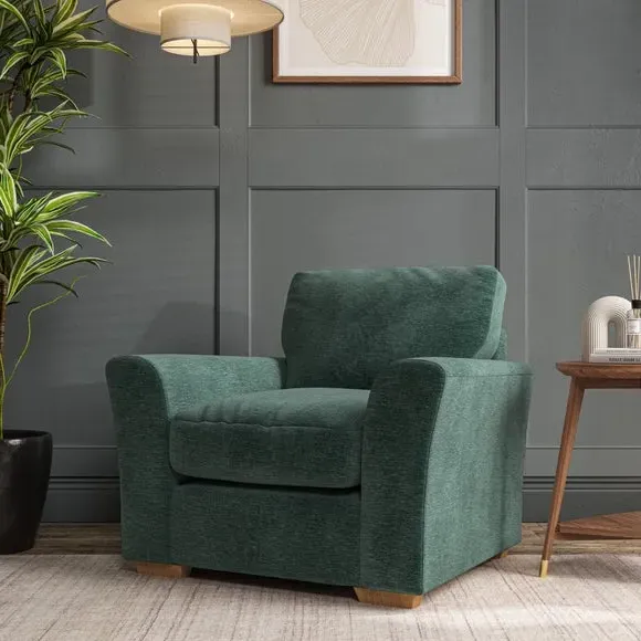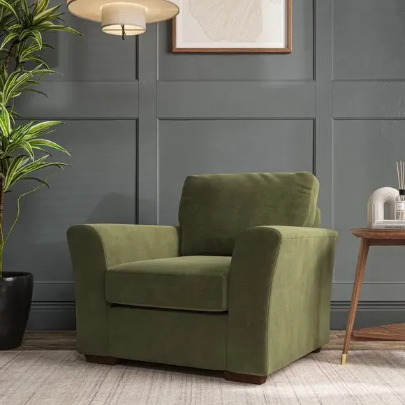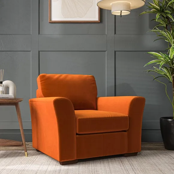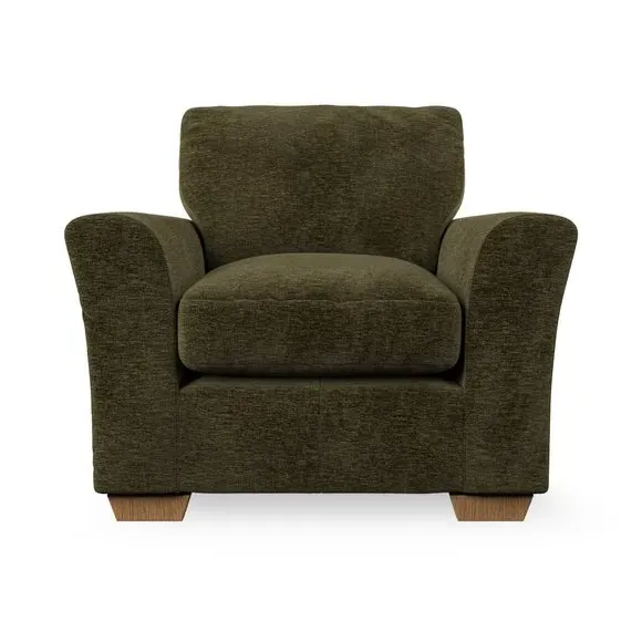 * Classical modern style* Flared arms* Stitched arm detailing* High back* Serpentine seat springs* Choose your support, fabric and leg colour This armchair's soft, swept armrests and refined stitching details give it an elegant look. The fibre-filled back cushion offers outstanding support, while the seat can be customised with either foam or ‘Qualofill Blue’ fibre filling. Supported by durable serpentine springs and stylish hardwood legs in two finishes, this armchair is both supportive and stylish, making it a perfect accent for any living space.