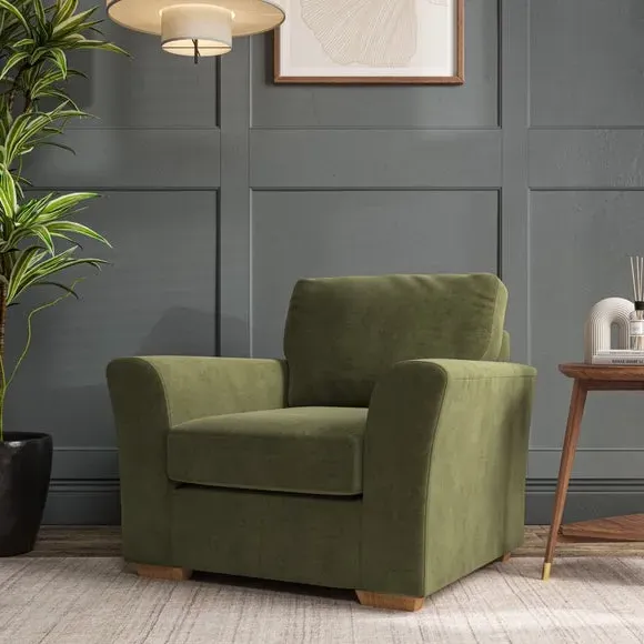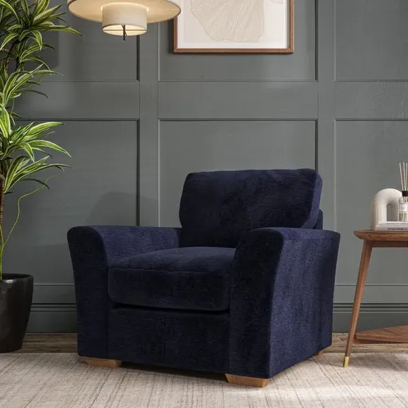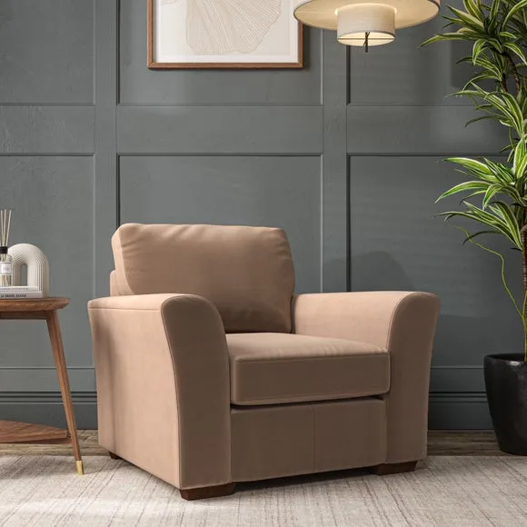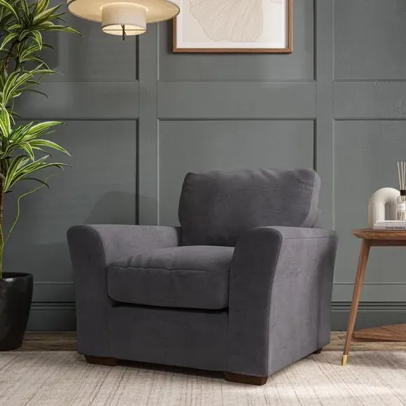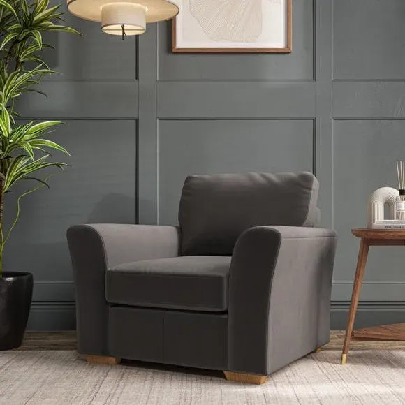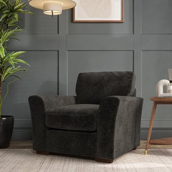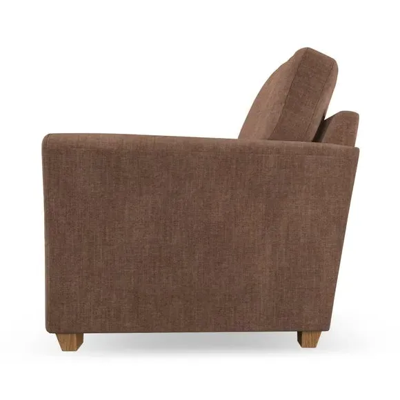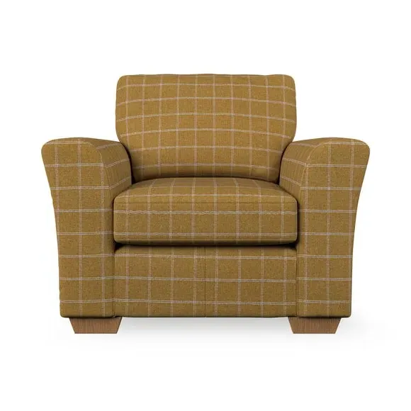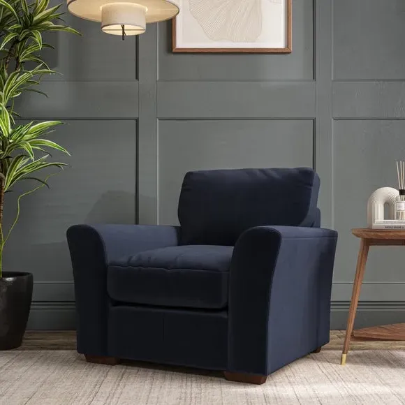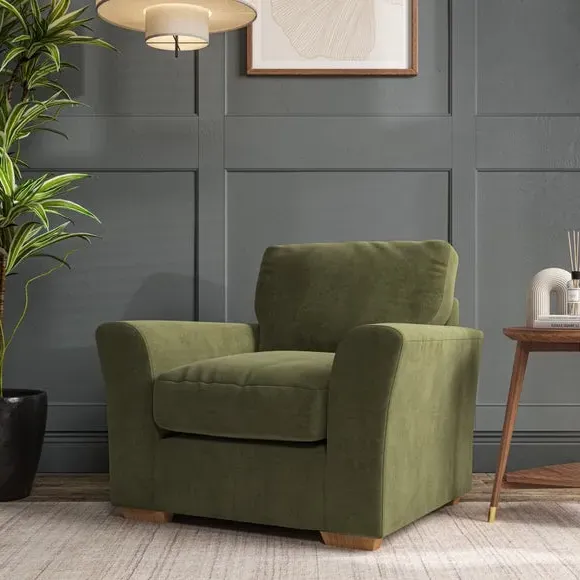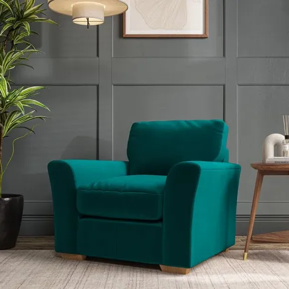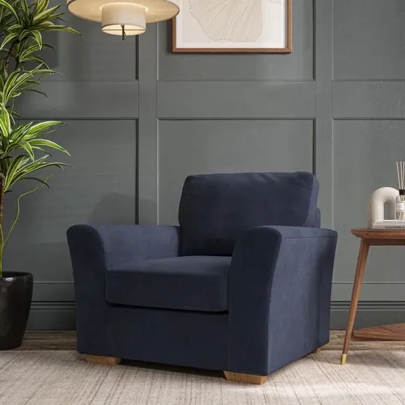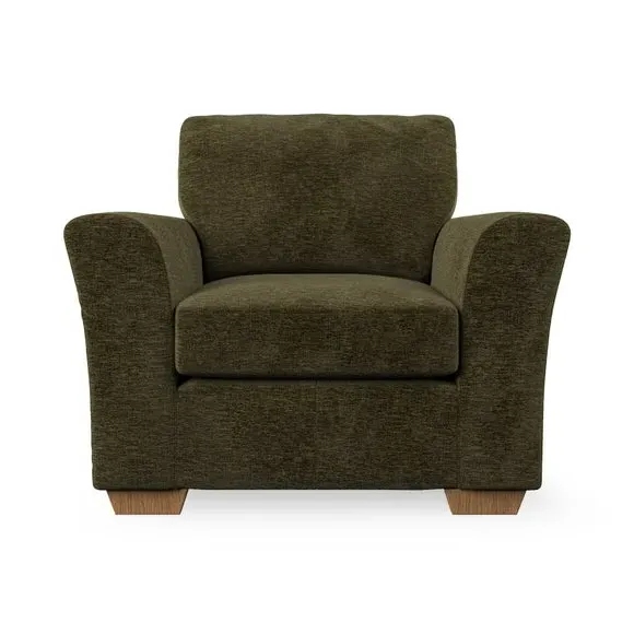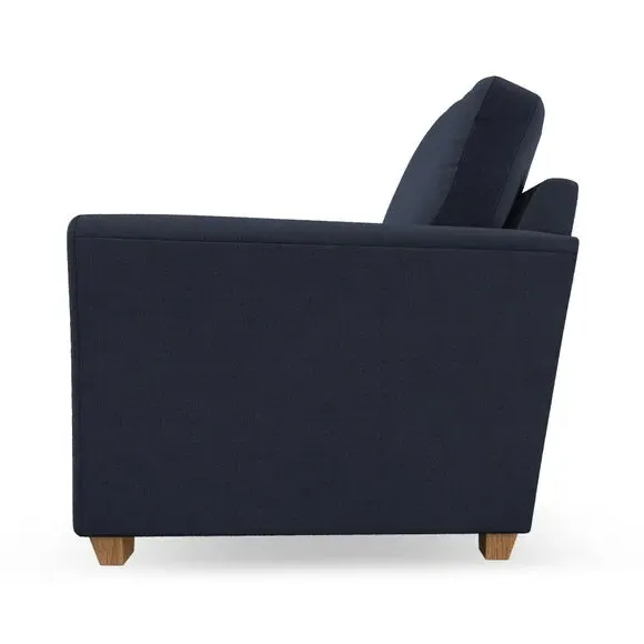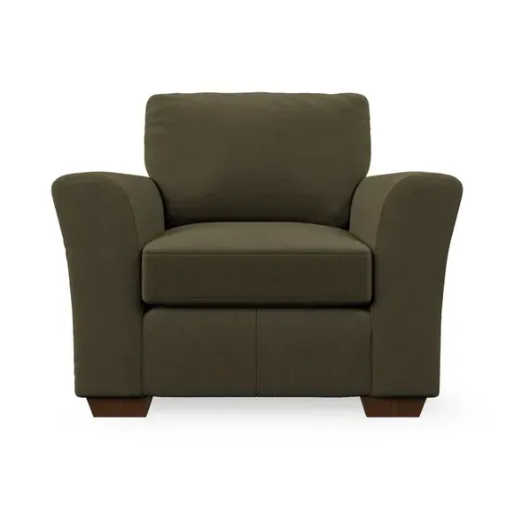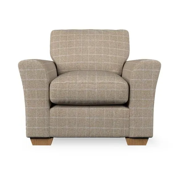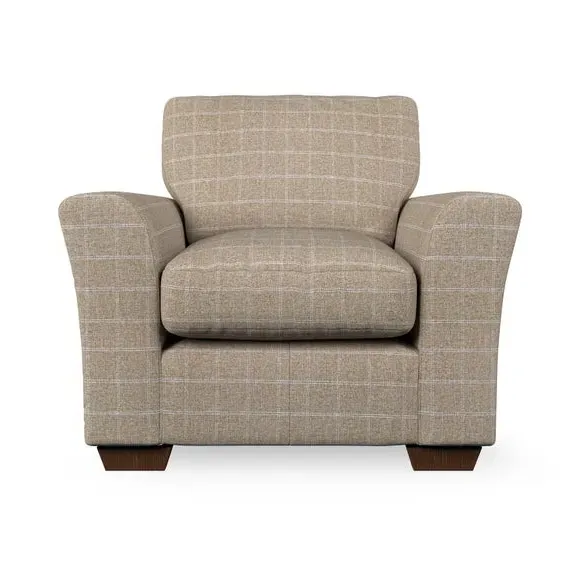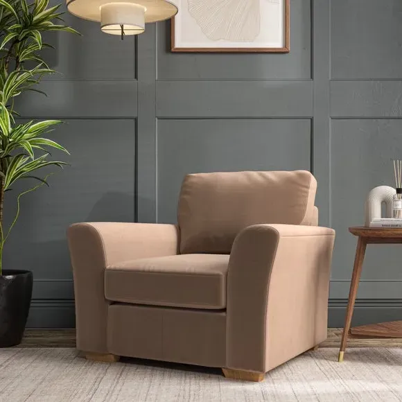 * Classical modern style* Flared arms* Stitched arm detailing* High back* Serpentine seat springs* Choose your support, fabric and leg colour This armchair's soft, swept armrests and refined stitching details give it an elegant look. The fibre-filled back cushion offers outstanding support, while the seat can be customised with either foam or ‘Qualofill Blue’ fibre filling. Supported by durable serpentine springs and stylish hardwood legs in two finishes, this armchair is both supportive and stylish, making it a perfect accent for any living space.
