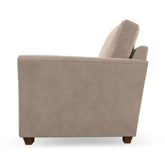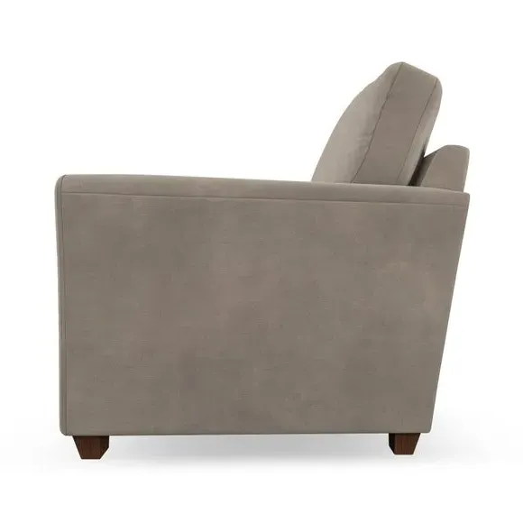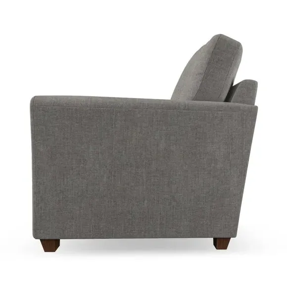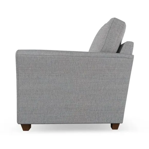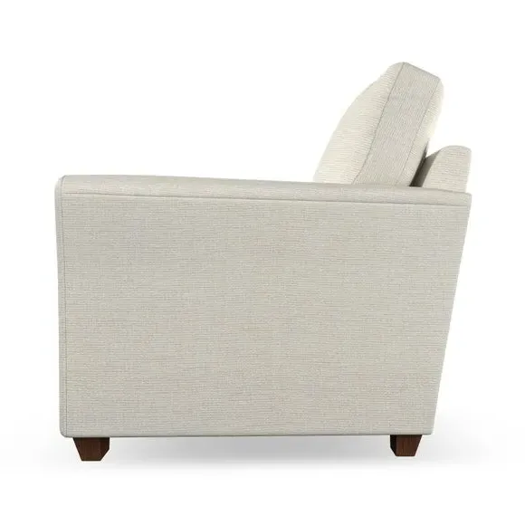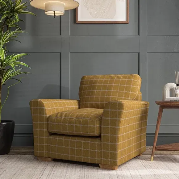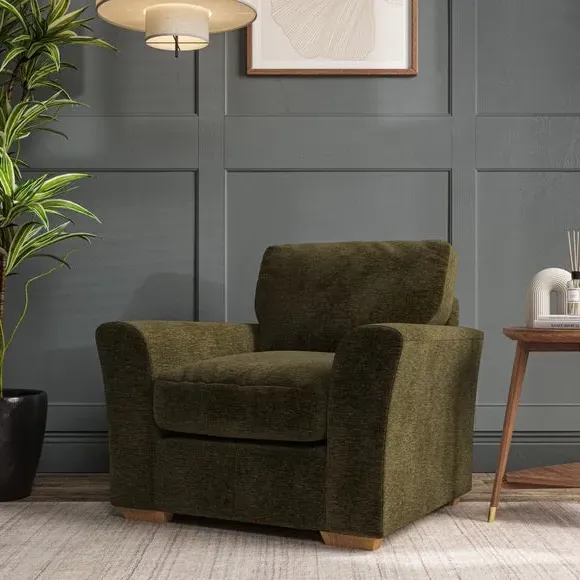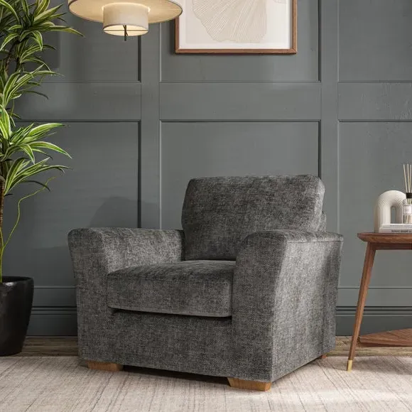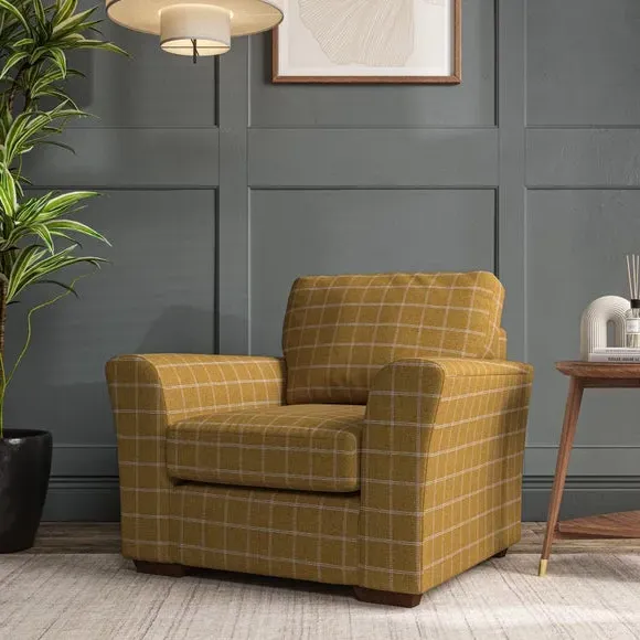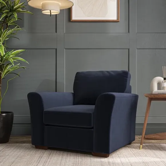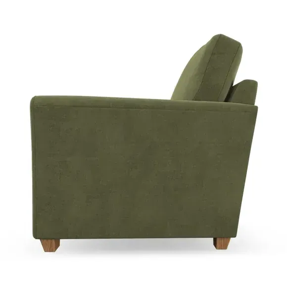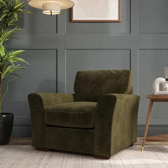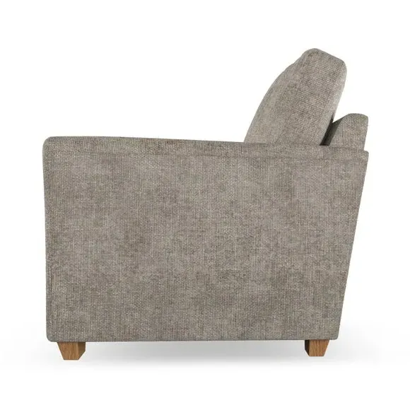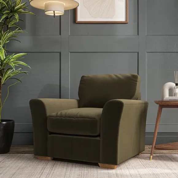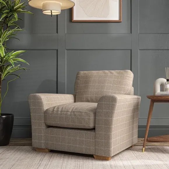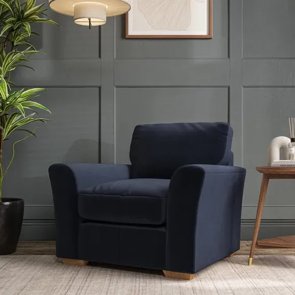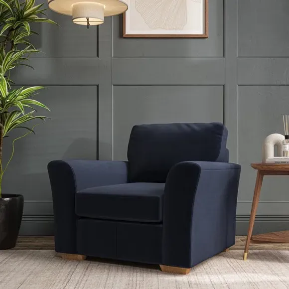 * Classical modern style* Flared arms* Stitched arm detailing* High back* Serpentine seat springs* Choose your support, fabric and leg colour This armchair's soft, swept armrests and refined stitching details give it an elegant look. The fibre-filled back cushion offers outstanding support, while the seat can be customised with either foam or ‘Qualofill Blue’ fibre filling. Supported by durable serpentine springs and stylish hardwood legs in two finishes, this armchair is both supportive and stylish, making it a perfect accent for any living space.