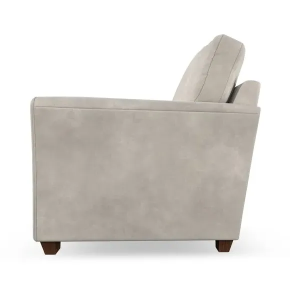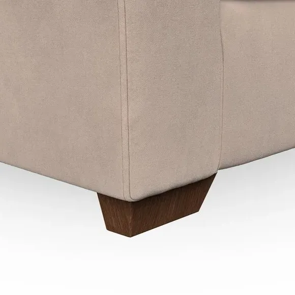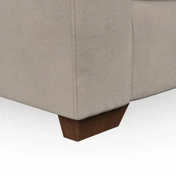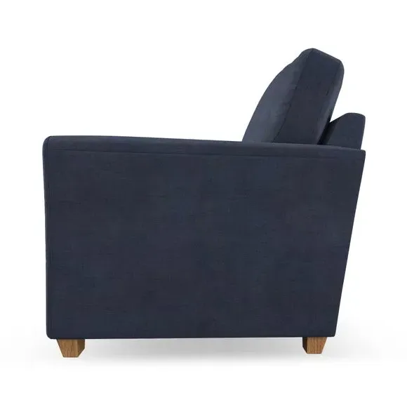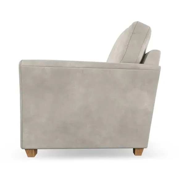 The armchair combines classical modern style with its flared arms and refined stitched detailing. Its fibre-filled back cushion provides outstanding support, while the seat offers customisable filling options with either foam or Qualofill Blue fibre. The serpentine springs ensure lasting comfort and durability, and the hardwood legs add stability with stylish finish options.