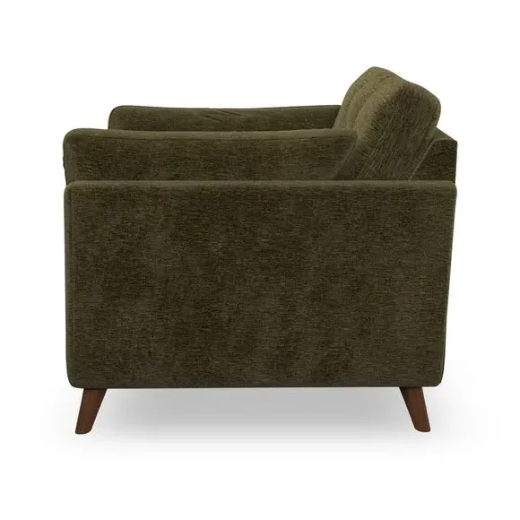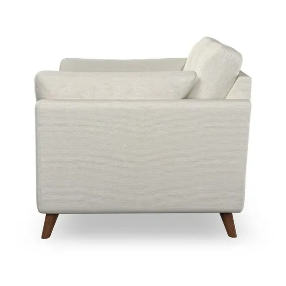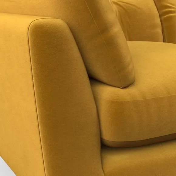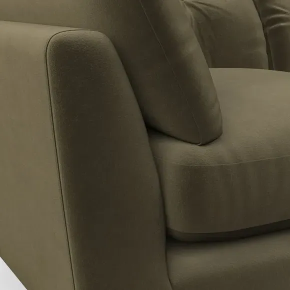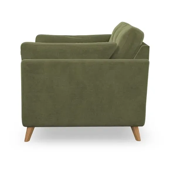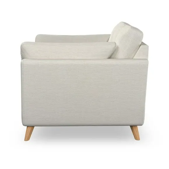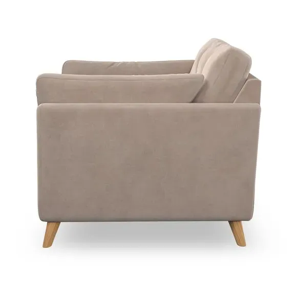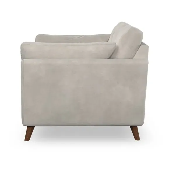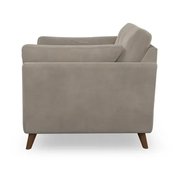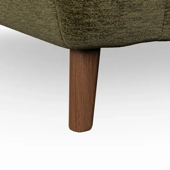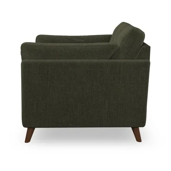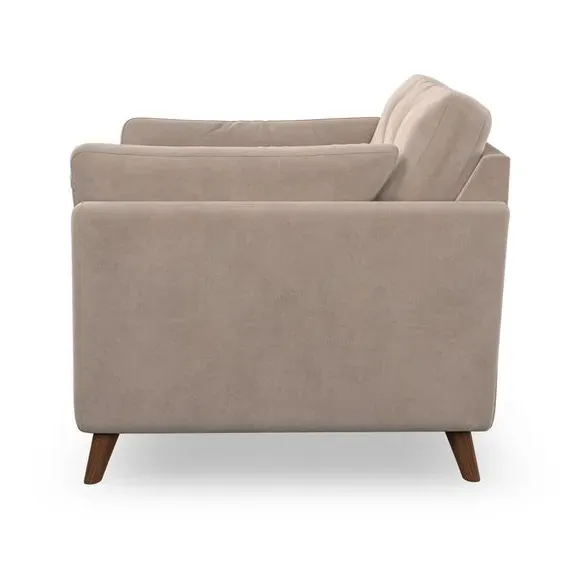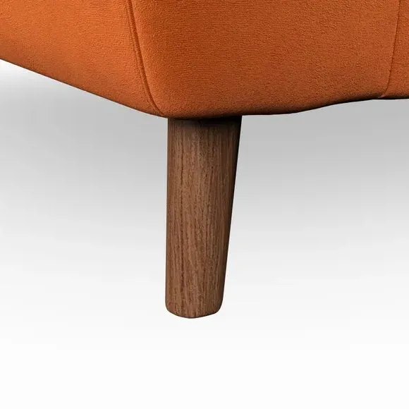 The armchair combines mid-century style with plush comfort, featuring fibre-filled arm pads and button-pull details on the supportive back cushion. Its higher back design provides excellent support for your back and shoulders, while the serpentine seat springs ensure lasting durability. The splayed hardwood legs add a customisable element to the overall design and are easy to fit.