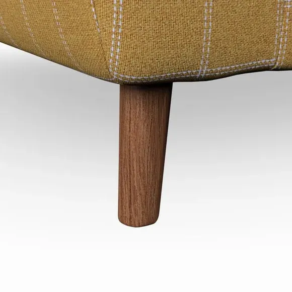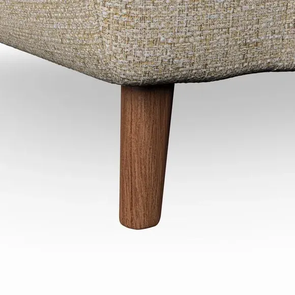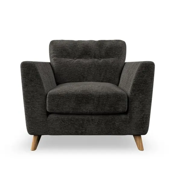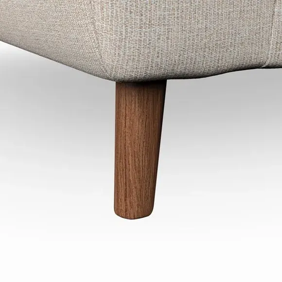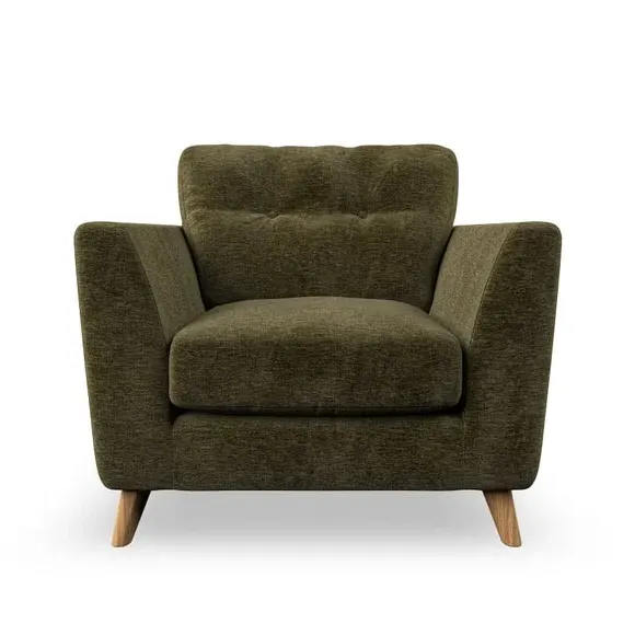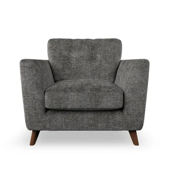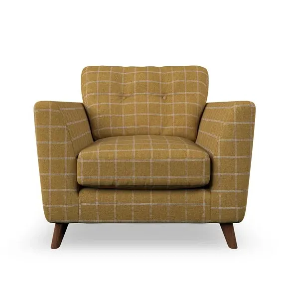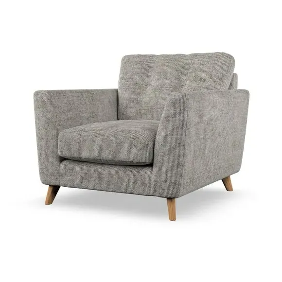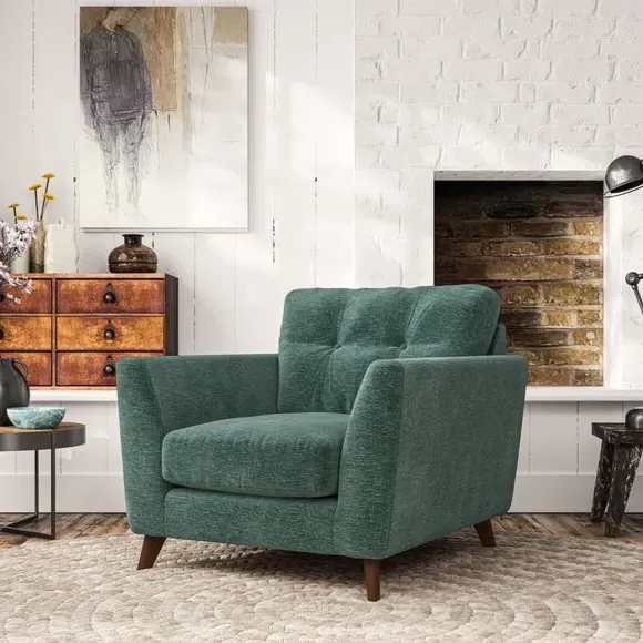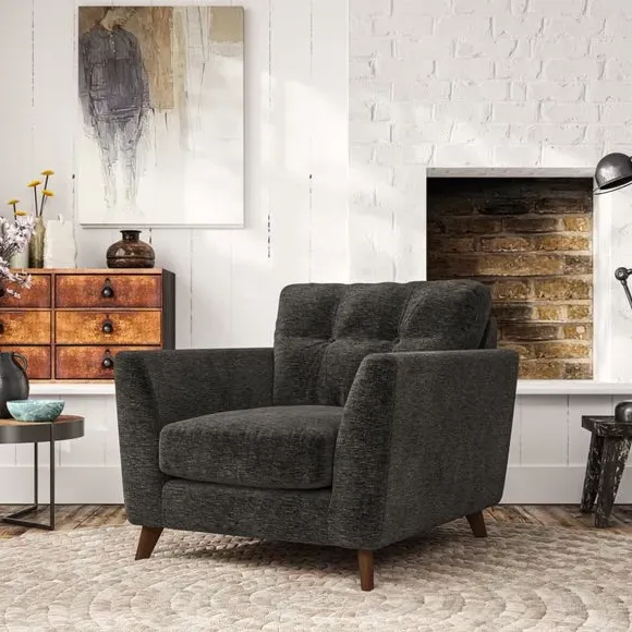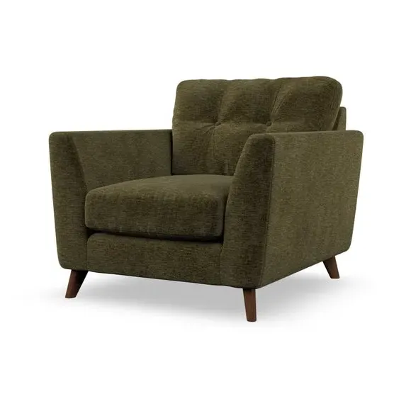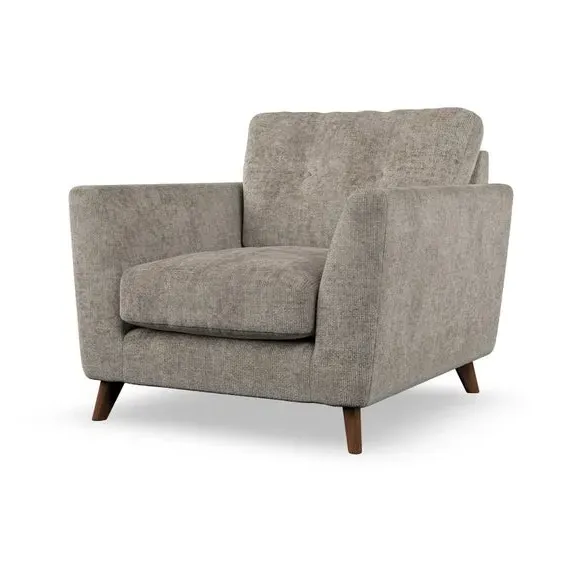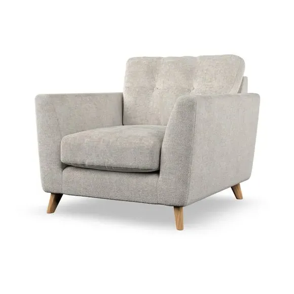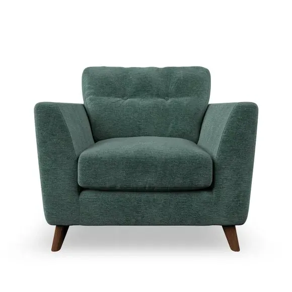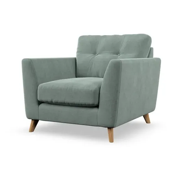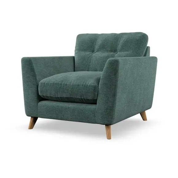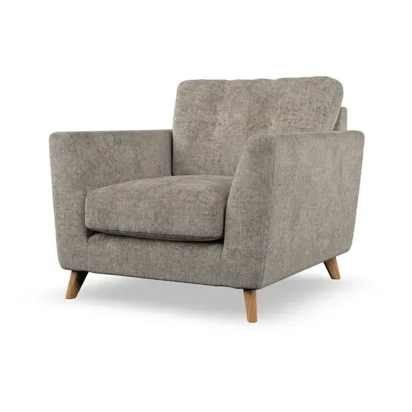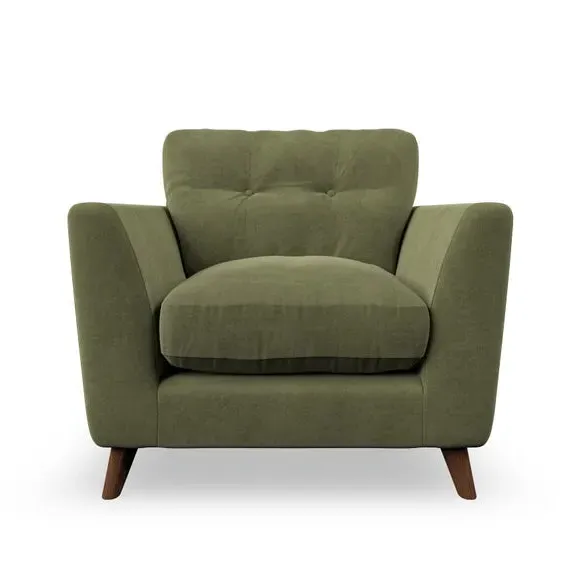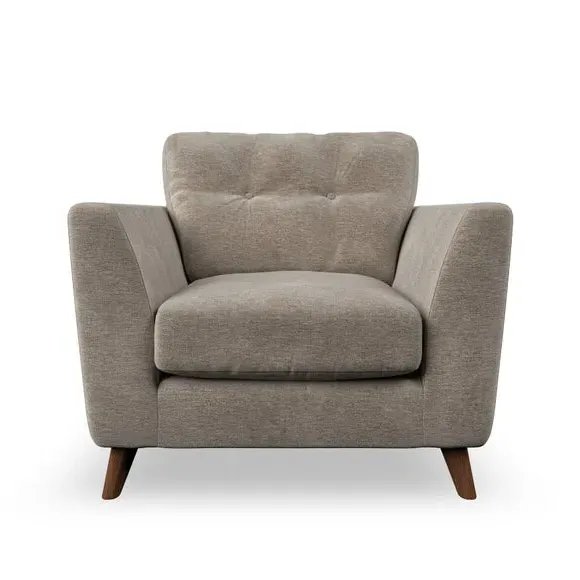 * Mid-century style* Pillow top arms* Button pull details* Choose fabric type, leg colour and cushion filling With its sleek, high-leg design and plush fibre-filled arm pads, this armchair offers both style and relaxation. The button-pull details on the supportive, fibre-filled back cushion add a refined touch, while the higher back cushion provides excellent support for your back and shoulders. Customise your Peyton armchair by selecting from a low-maintenance foam seat or a more relaxed 'Qualofill Blue' fibre seat. Featuring serpentine seat springs for durability, the chair is built to offer lasting comfort. The splayed hardwood legs, available in two finishes, are easy to fit and add a customisable element to the overall design.