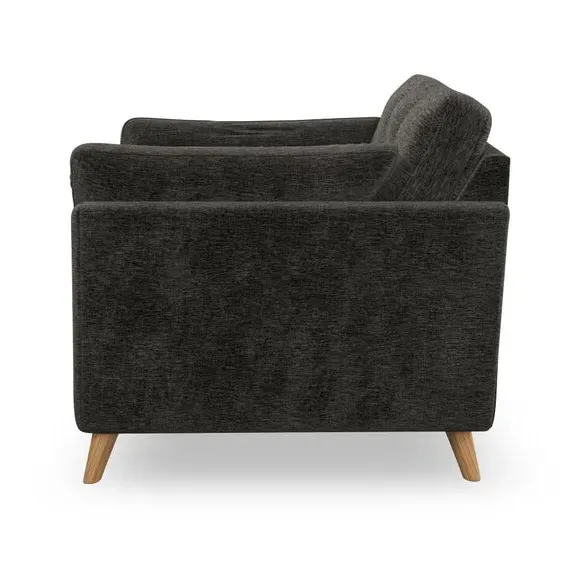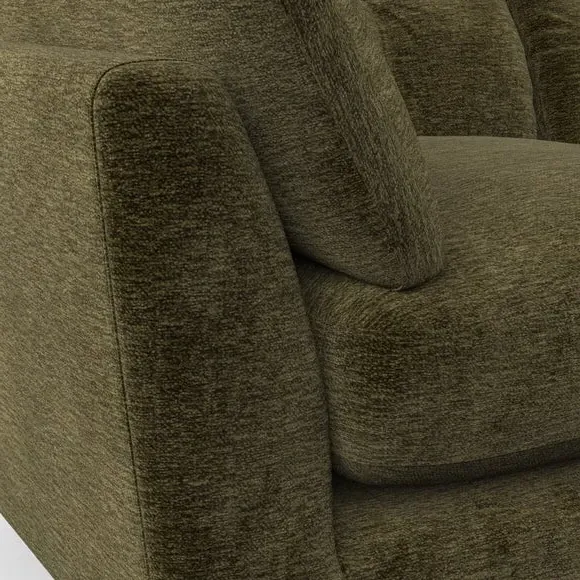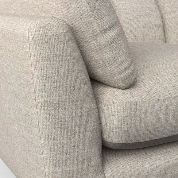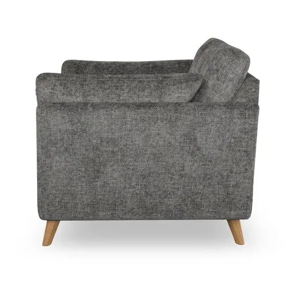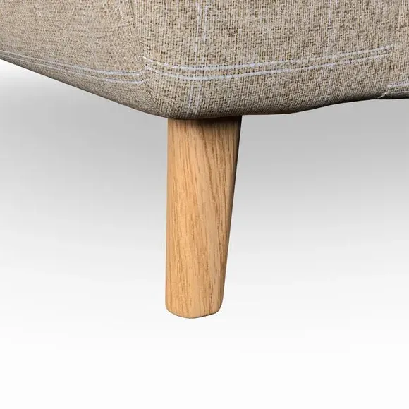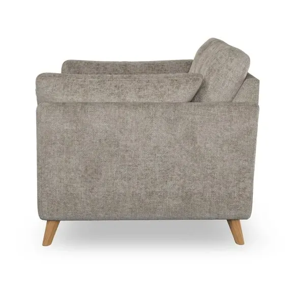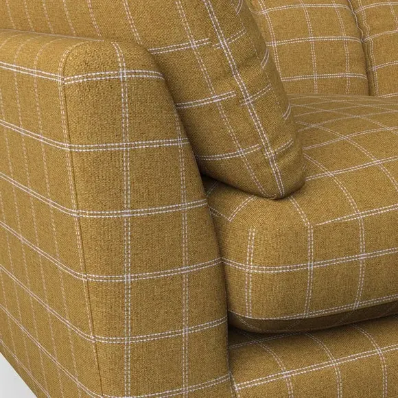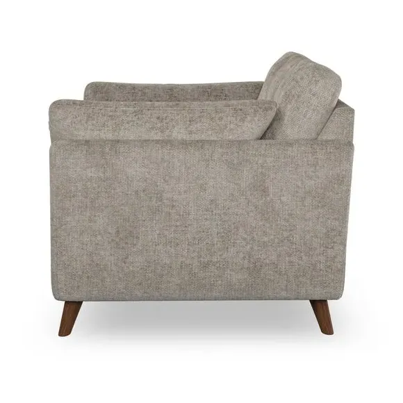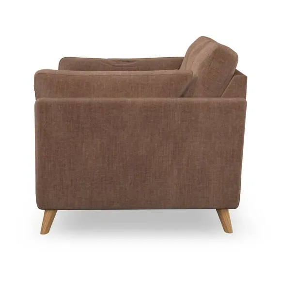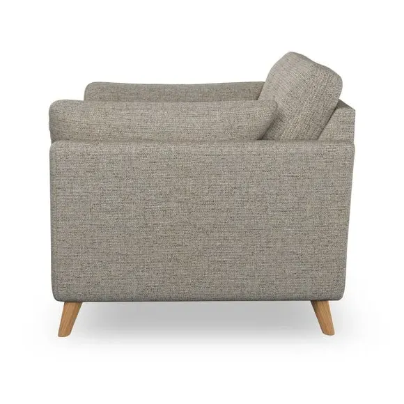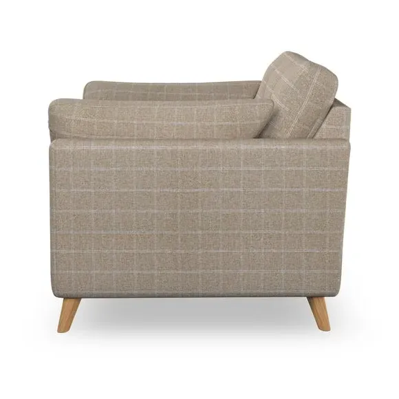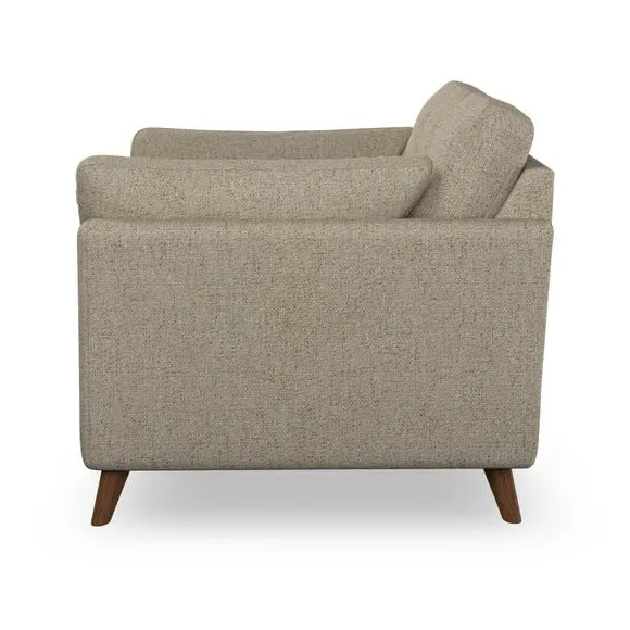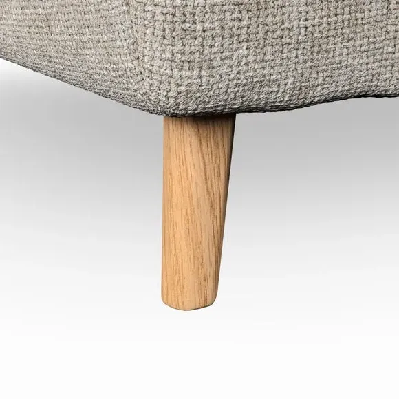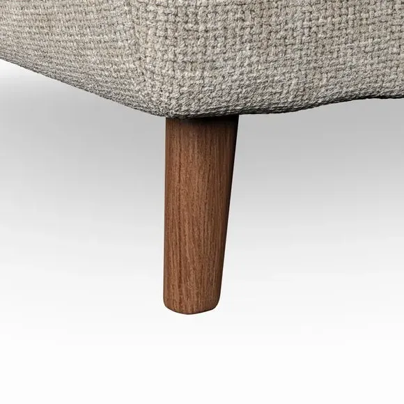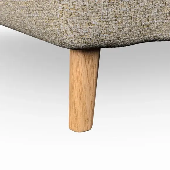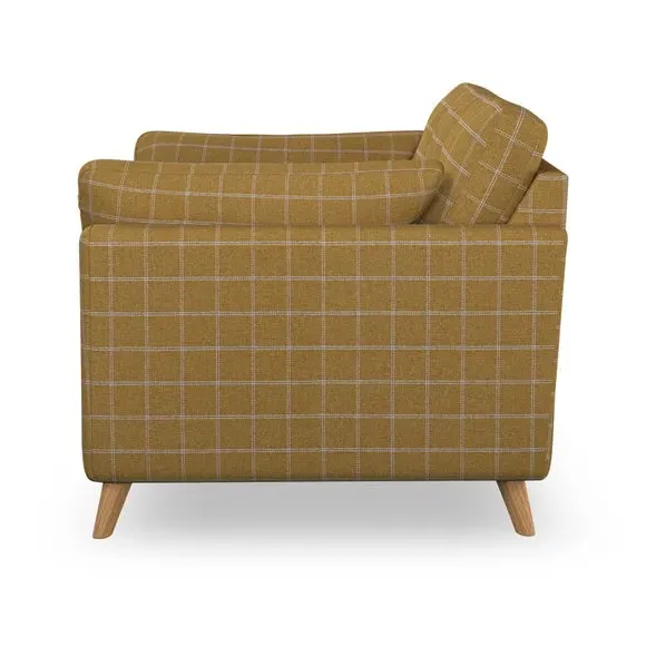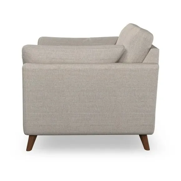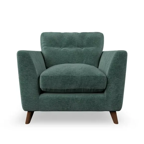 * Mid-century style* Pillow top arms* Button pull details* Choose fabric type, leg colour and cushion filling With its sleek, high-leg design and plush fibre-filled arm pads, this armchair offers both style and relaxation. The button-pull details on the supportive, fibre-filled back cushion add a refined touch, while the higher back cushion provides excellent support for your back and shoulders. Customise your Peyton armchair by selecting from a low-maintenance foam seat or a more relaxed 'Qualofill Blue' fibre seat. Featuring serpentine seat springs for durability, the chair is built to offer lasting comfort. The splayed hardwood legs, available in two finishes, are easy to fit and add a customisable element to the overall design.