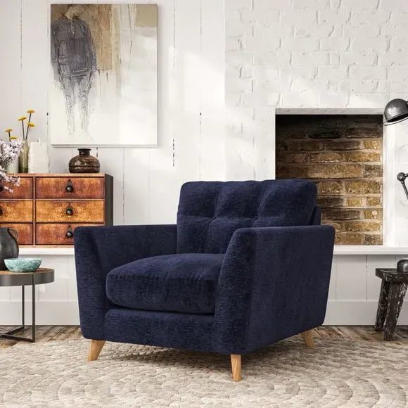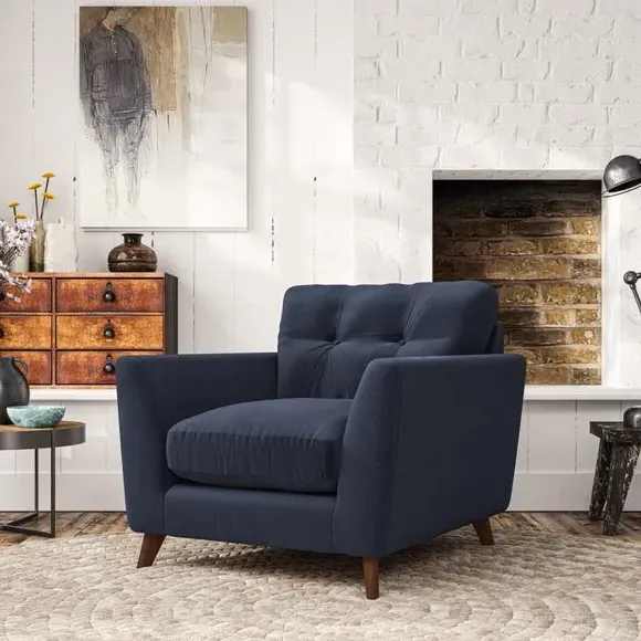 Home  /  Living Room  /  Armchairs & Accent Chairs  /  Mid-Century Armchair with Button Details - Navy