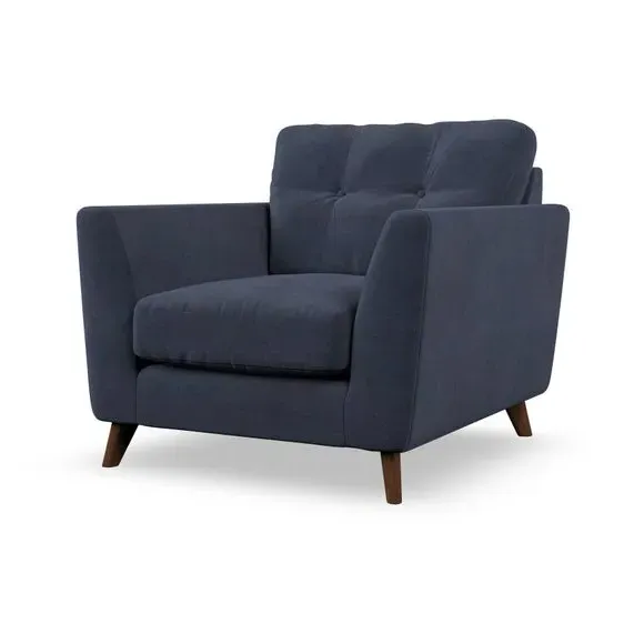 Mid-Century Armchair with Button Details - Navy