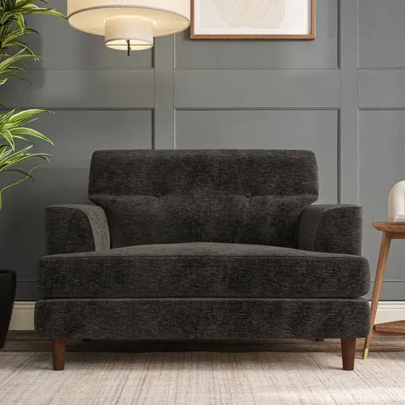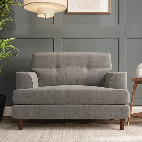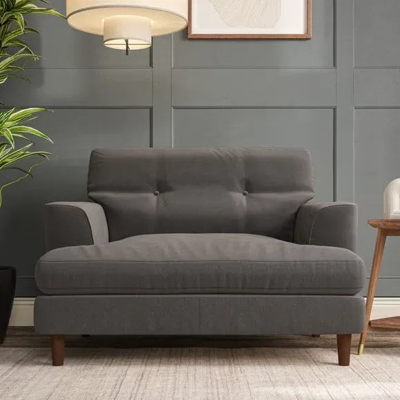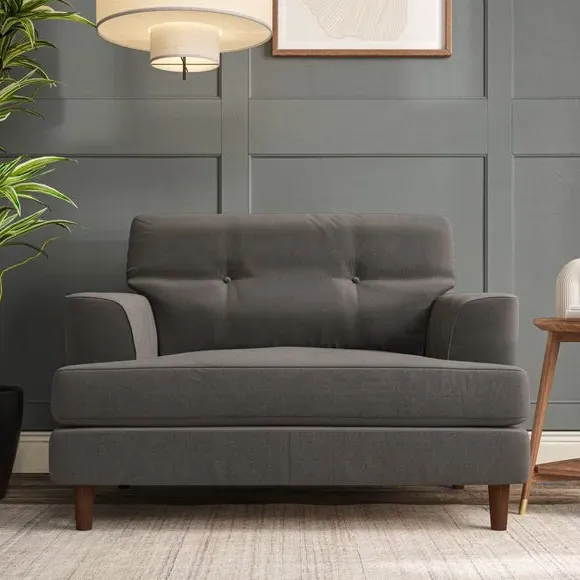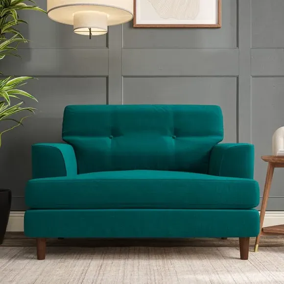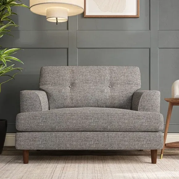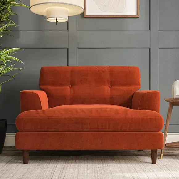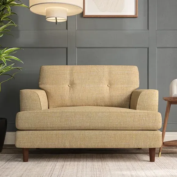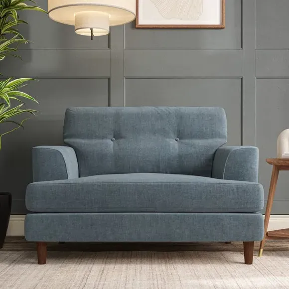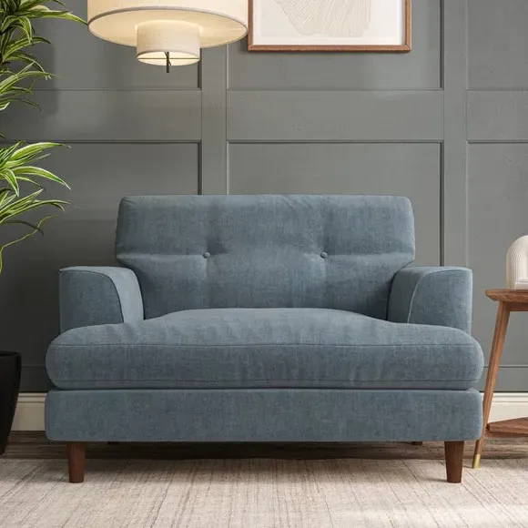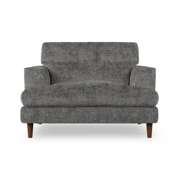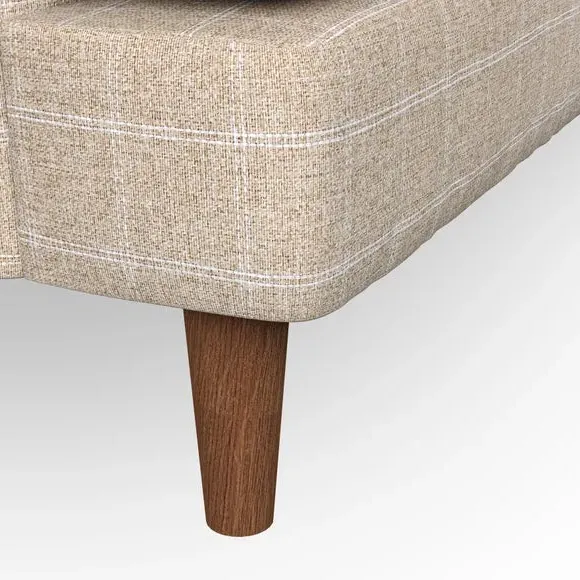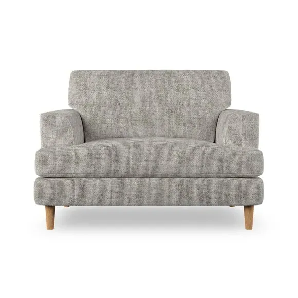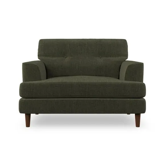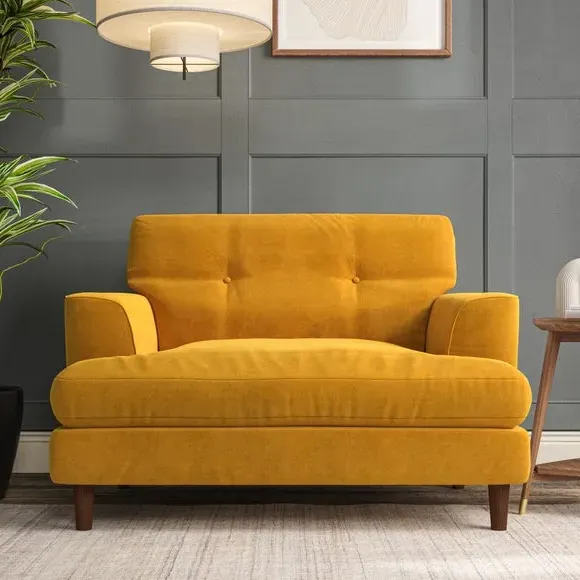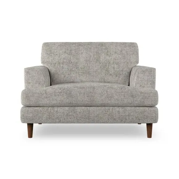 The snuggle chair combines compact luxury with Scandinavian-inspired design, featuring clean lines and elegant high legs. Its generous T-shaped seat cushion provides ample comfort, while the fibre-filled back cushion displays classic button-pull detailing. The customizable design allows you to choose your preferred fabric, leg finish, and cushion filling to match your space.