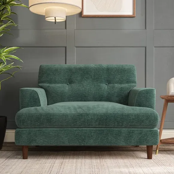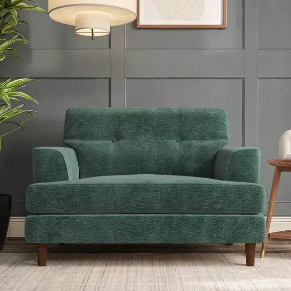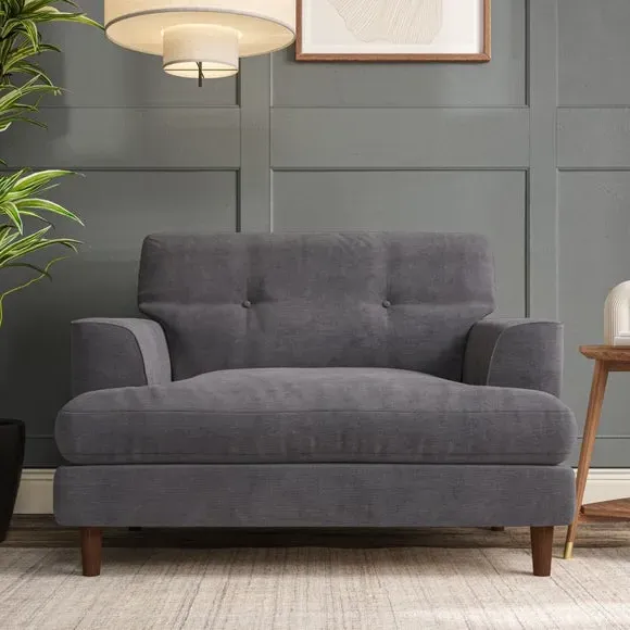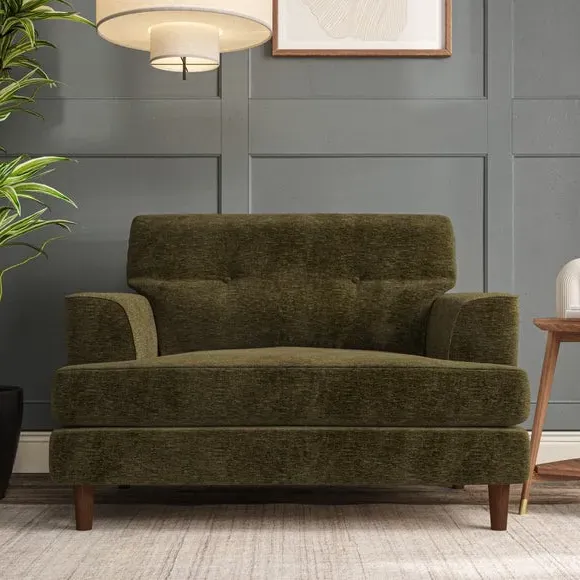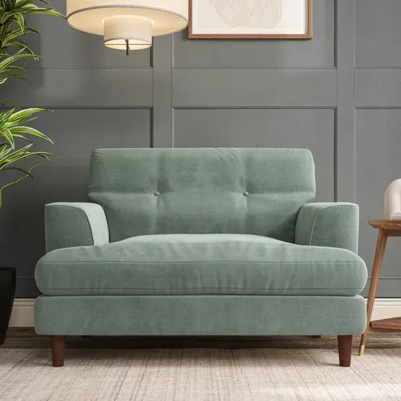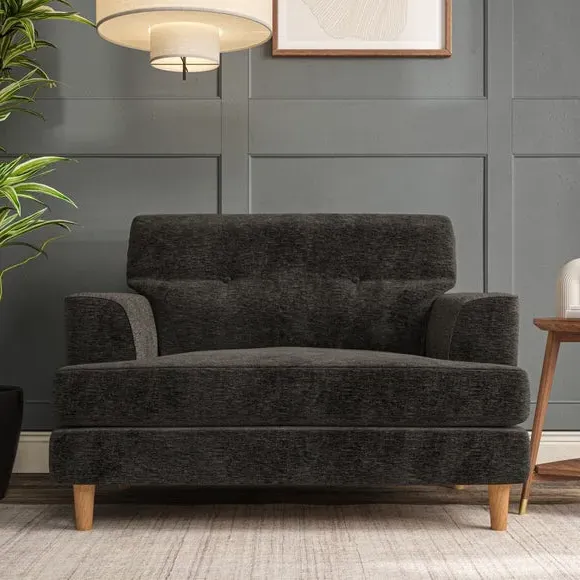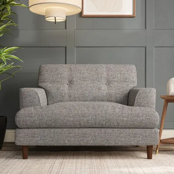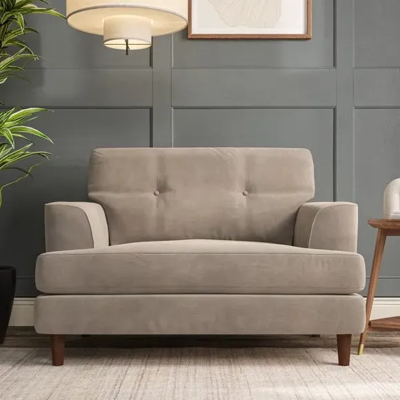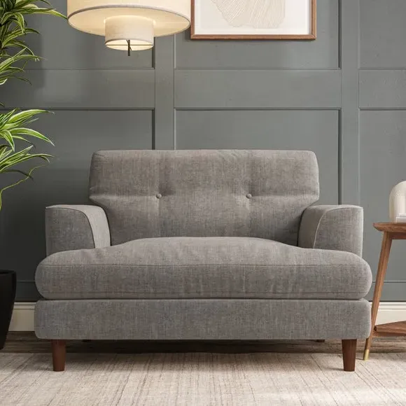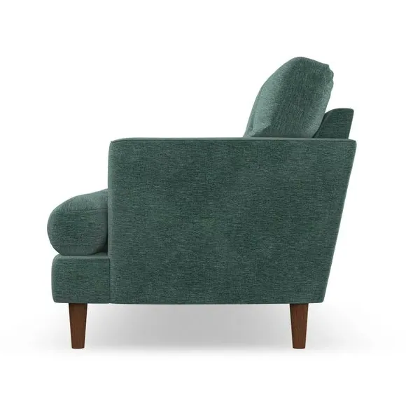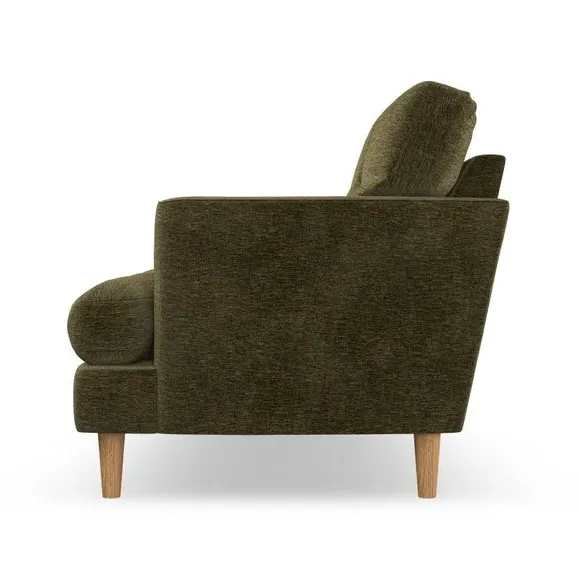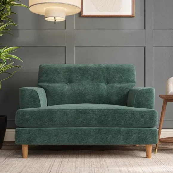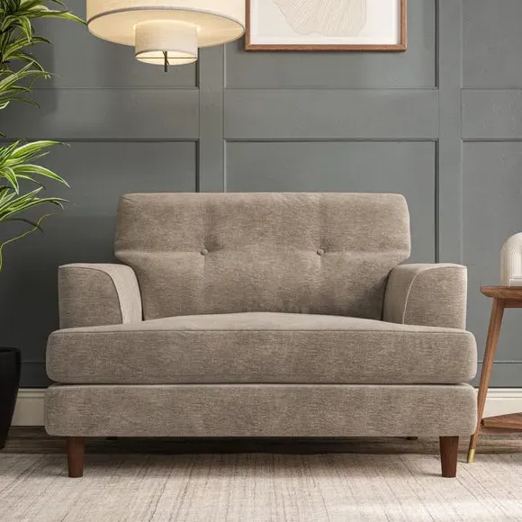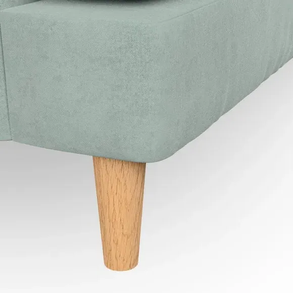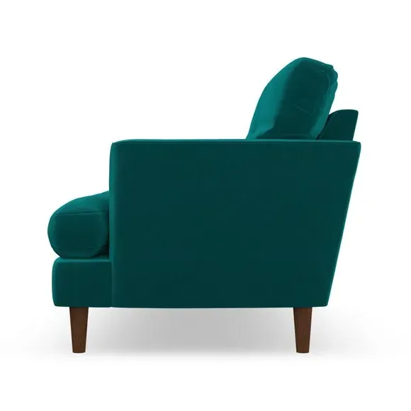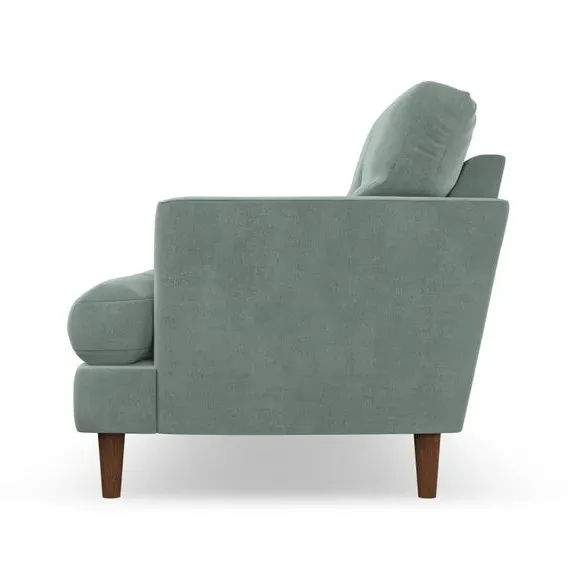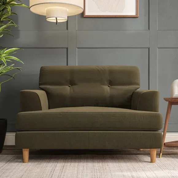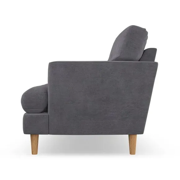 * Scandi inspired design* High legs* Button pull detailing* Choose the cushion filling, leg colour and fabric The Cooper Snuggle Chair is a compact yet luxurious seating option, perfect for creating a cosy retreat. Its Scandinavian-inspired design features clean lines, an elegant high leg, and a generous T-shaped seat cushion. The fibre-filled back cushion is adorned with classic button-pull detailing, ensuring both comfort and style. Customise this snug chair with your preferred fabric, leg finish, and cushion filling to suit your décor.