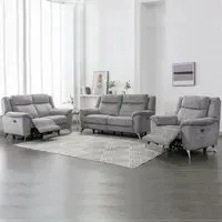 Experience ultimate relaxation with the Mankato Fabric Electric Recliner 1 Seater Sofa in Ash by Furniture in Fashion. Designed for modern homes, this stylish single-seater combines smart functionality with understated elegance. The soft ash-toned fabric pairs beautifully with any interior style, making it the ideal addition to your living room, bedroom, or reading nook. Equipped with a smooth electric reclining mechanism, the Mankato 1 seater allows you to unwind at the touch of a button. Its deep cushioning, ergonomic design, and supportive armrests offer personalized comfort, while the durable construction ensures lasting use. Whether you're watching TV, reading, or simply relaxing, this recliner makes comfort feel effortless. Bring comfort and convenience into your home with the Mankato Fabric Electric Recliner 1 Seater Sofa in Ash from Furniture in Fashion. Stylish, compact, and built for relaxation, its the perfect single-seater solution for modern living. FEATURES : Material : Fabric Finish : Ash Upgrade your living space and elevate your relaxation with our Mankato Electric Reclining Suite and fixed Suite Options Discover the perfect fusion of style, comfort, and innovation today The Mankato suite offers a high adjustable headrest on the electric version and allows the user to control the recline function at the touch of a button A built in USB charger is included as standard Electric Reclining Function Effortlessly recline at the touch of a button for tailored comfort Premium Ash Fabric Upholstery Soft, neutral fabric complements a variety of interiors Plush Foam-Filled Cushions Thick padding on seat, back, and arms for luxurious comfort Supportive Armrests Ergonomic design enhances relaxation Compact 1-Seater Design Perfect for small spaces or as an accent chair Modern Aesthetic Clean lines and subtle tone for a contemporary look Sturdy Frame Construction Built to last with a solid and reliable structure Available at an afforda