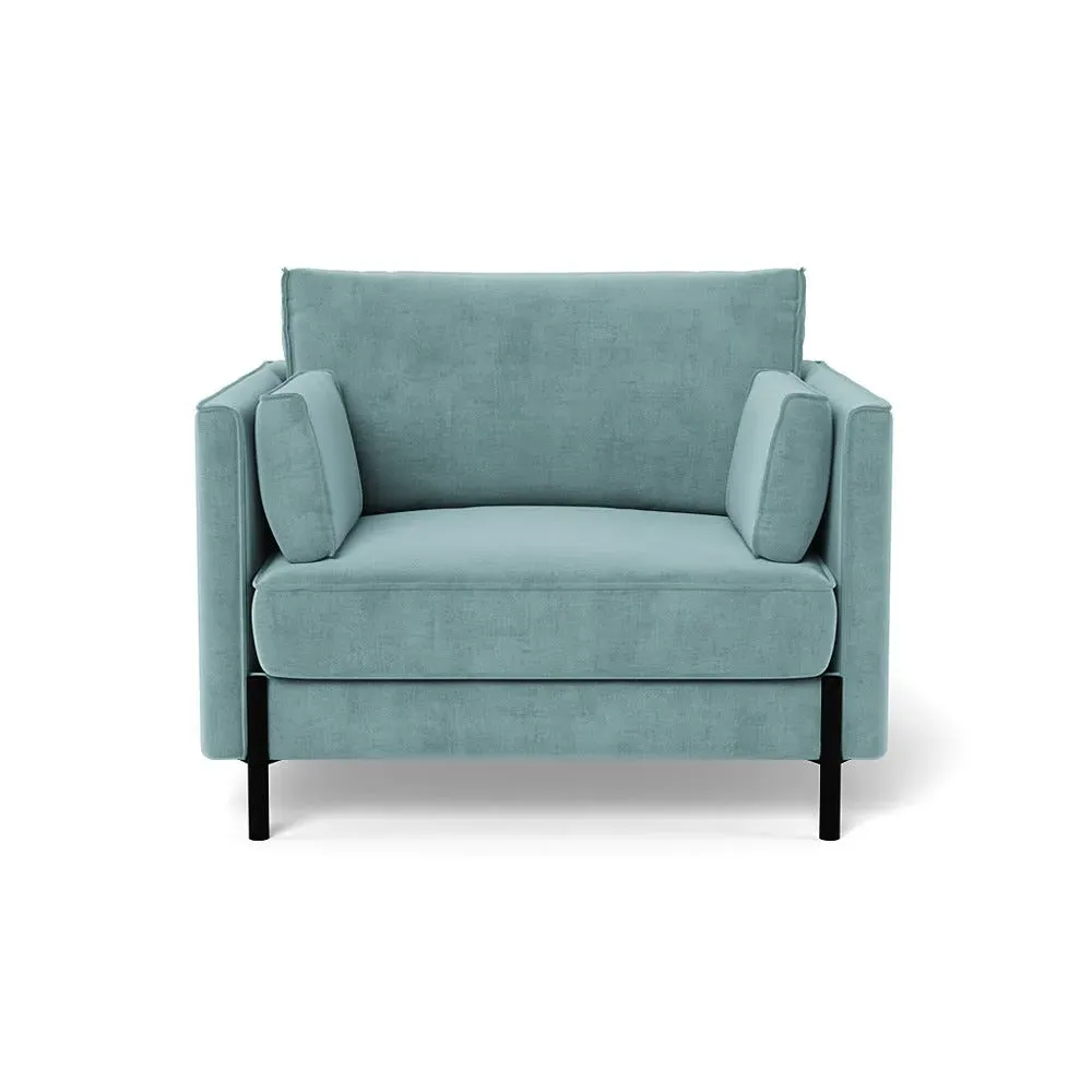 Designed by Danish duo Says Who exclusively for Heal's, the Tortona Armchair is a pared back yet intricately designed piece. The armchair features deep foam seat cushions wrapped in duck feather jackets for a soft-to-medium feel. Slim arms add to the elegant design and create a generous space for seating and extra scatter cushions. Also featuring thin, elegant powder-coated steel legs and French seam detailing creating a neat profile which will sit well in any modern home.