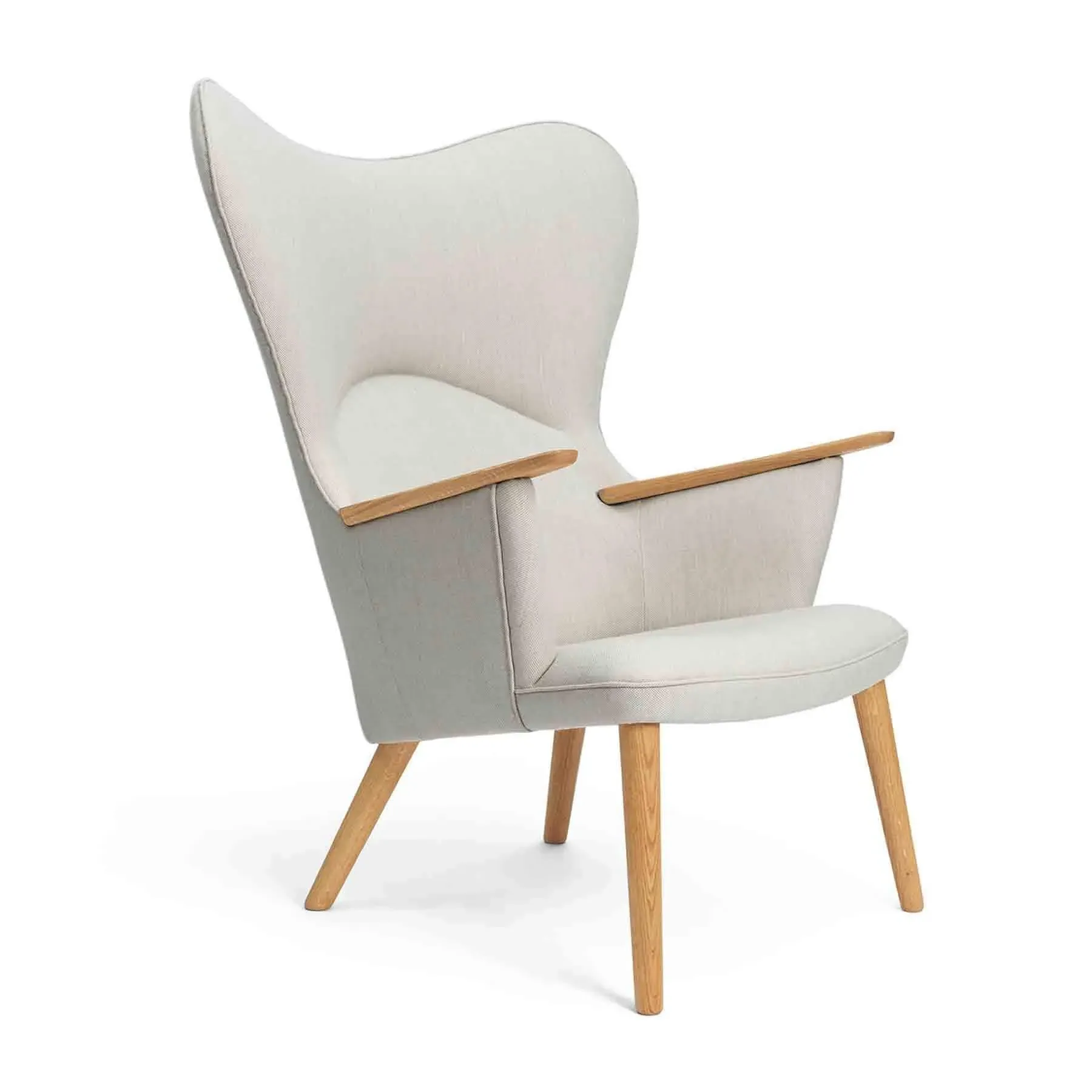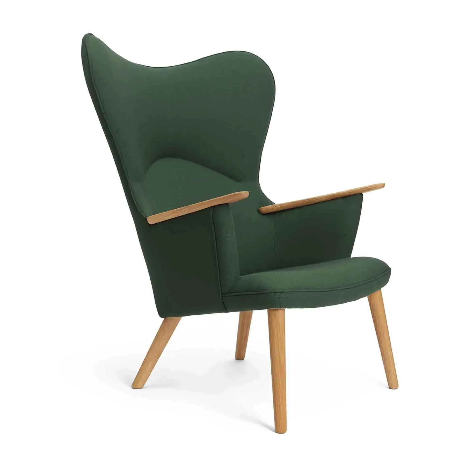 Celebrating 70 years of iconic design, the Carl Hansen & Son CH78 Mama Bear Chair is a timeless masterpiece originally introduced in 1954. Designed by Hans J. Wegner as a lighter alternative to the bulky lounge chairs of the era, this chair merges elegance and comfort in perfect harmony. To mark its anniversary in 2024, a new poetic upholstery palette has been unveiled, featuring the rich Umber tone, a soft, woollen fabric inspired by Wegner’s early watercolour sketches and the warm, earthy shades of nature. The geometric shapes of the upholstery and the chair''s softly supportive curves make it a design that both captivates and comforts, offering a cosy embrace. Crafted from FSC-certified solid wood, the CH78 Mama Bear Chair is as durable as it is beautiful. Its sculptural silhouette is designed for stability and comfort, with optional features like a headrest for added relaxation. Wegner’s genius lies in his ability to balance form and function, drawing on his background as a cabinetmaker to create pieces that honour both craftsmanship and the natural qualities of the materials used. The CH78 embodies the essence of Danish Modern design, blending formalistic minimalism with a softness that makes it inviting for everyday use. With its 70th-anniversary edition, this iconic chair continues to be a cherished statement piece in any interior, marrying history, craftsmanship, and modern comfort.