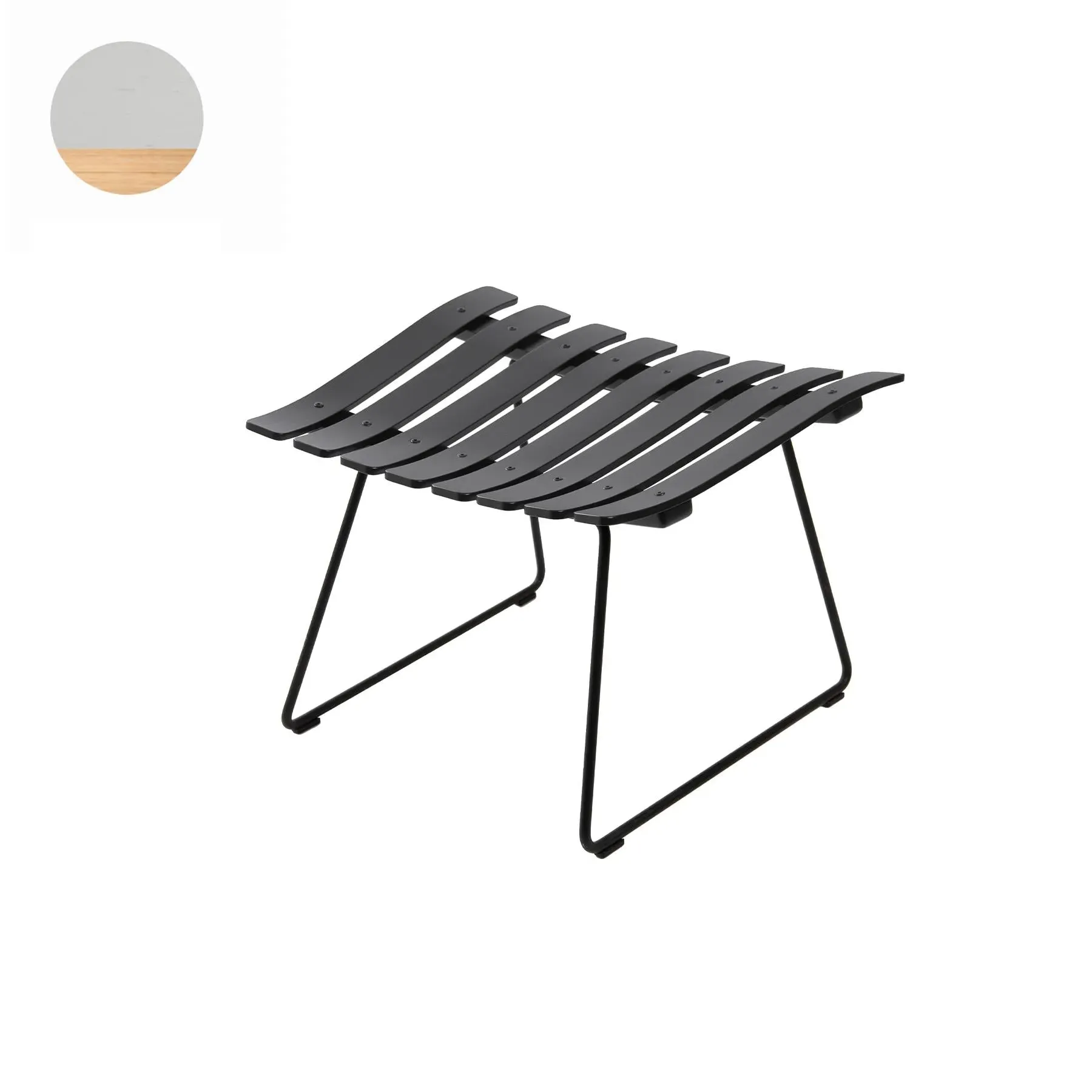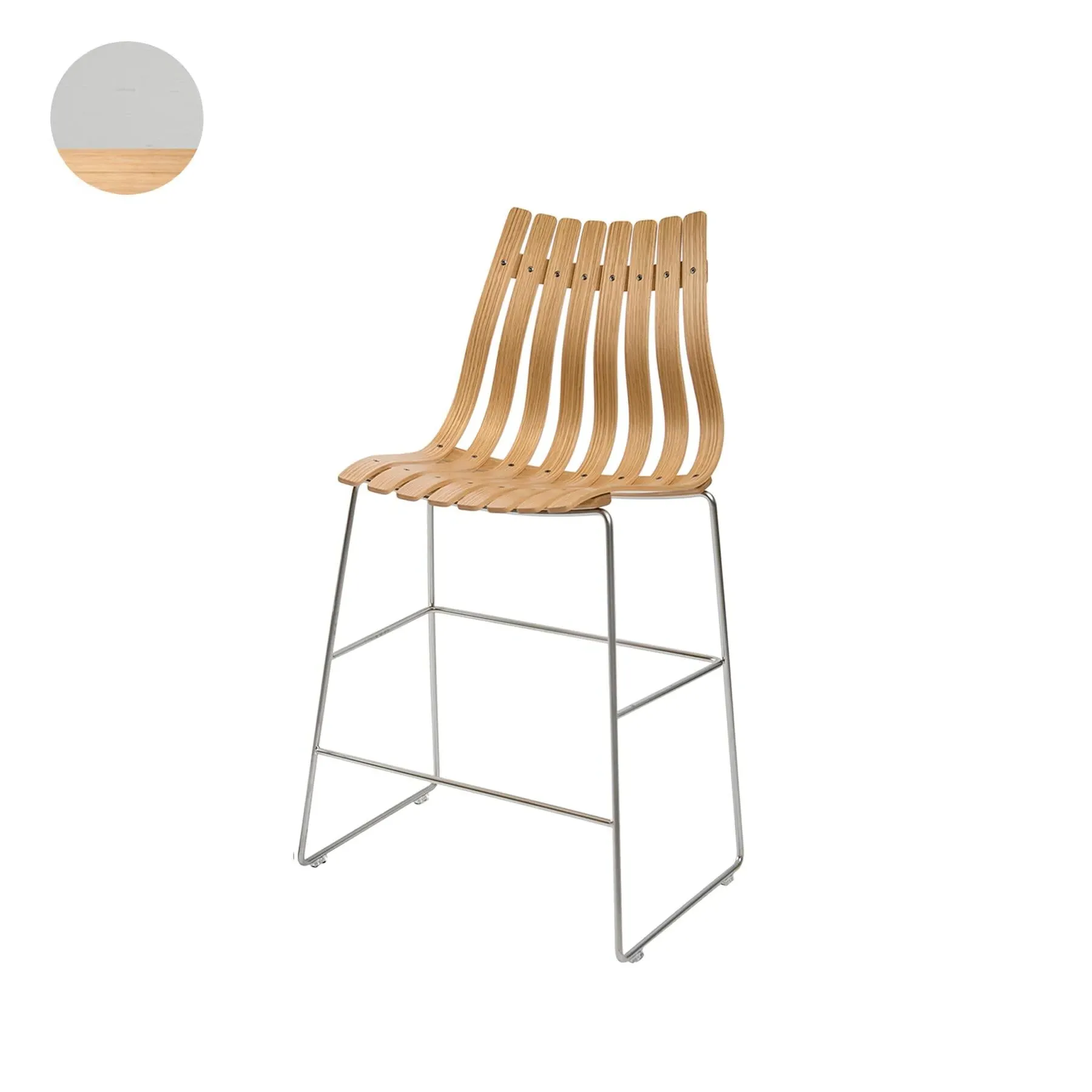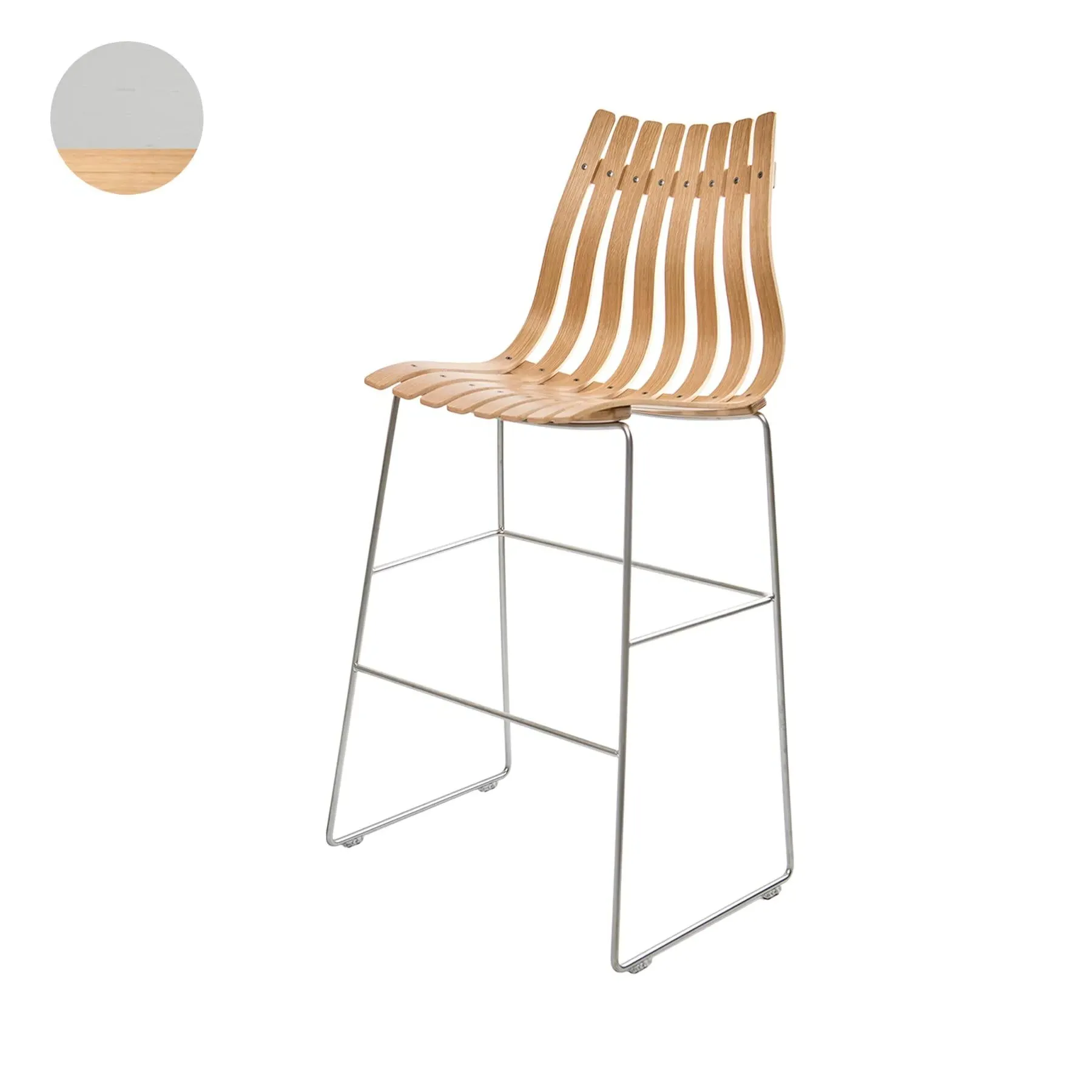 The ottoman provides versatile seating and footrest functionality with its compact laminated construction. Its lightweight design allows easy repositioning while the durable oak finish with light edges adds natural character. The satin chrome bolt base offers stable support and complements modern furniture collections.