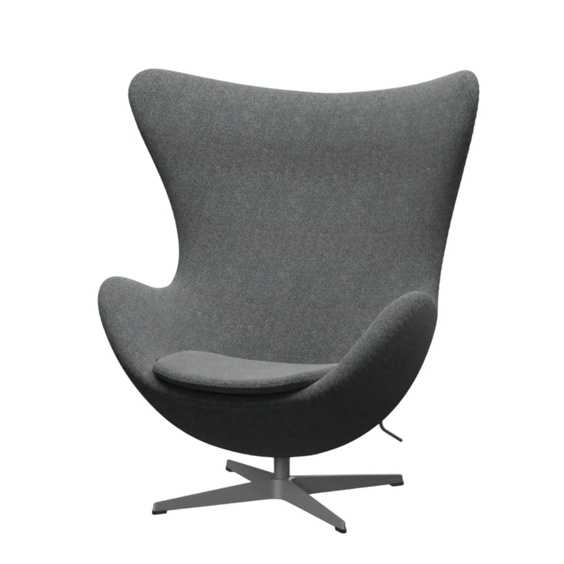 The Egg Lounge Chair combines comfort and style with its organically shaped seat shell that supports natural seating posture. Its high-quality fabric upholstery provides durability and luxurious texture, while the curved silhouette adds elegance to any space. The chair features smooth swivel mechanism and adjustable tilt function for optimal positioning. The silver grey aluminum base delivers stability with a refined metallic finish.