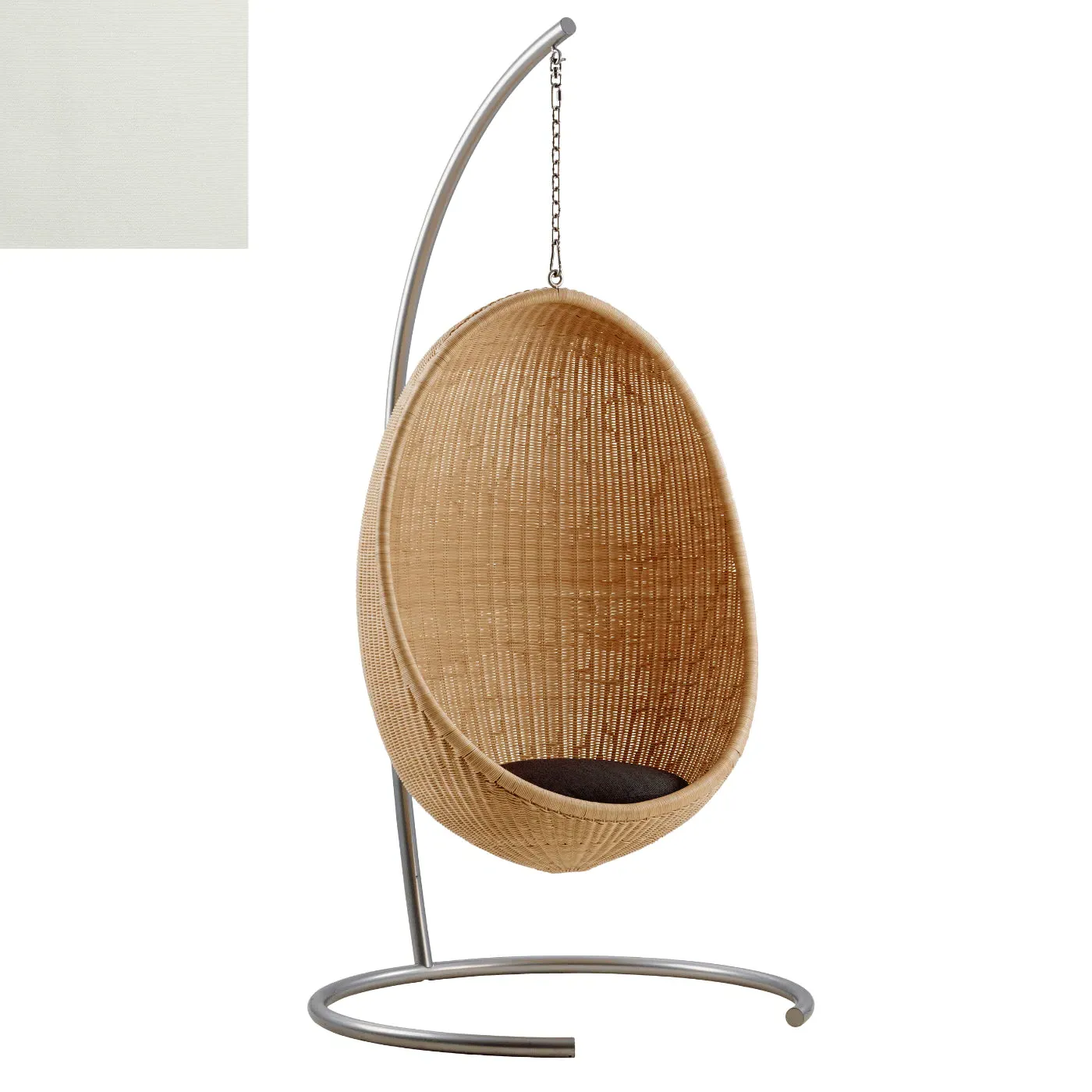 The Junior Egg Hanging Chair provides comfortable seating designed specifically for ages 3 to 9 years, featuring the same iconic egg-shaped design in a smaller scale. Its handcrafted rattan construction ensures durability and safety, while the white cushioning offers comfort for young users. The chair requires a separately purchased ceiling chain for hanging, and the solid rattan frame provides lasting quality. The compact design maintains the classic aesthetic while being appropriately sized.