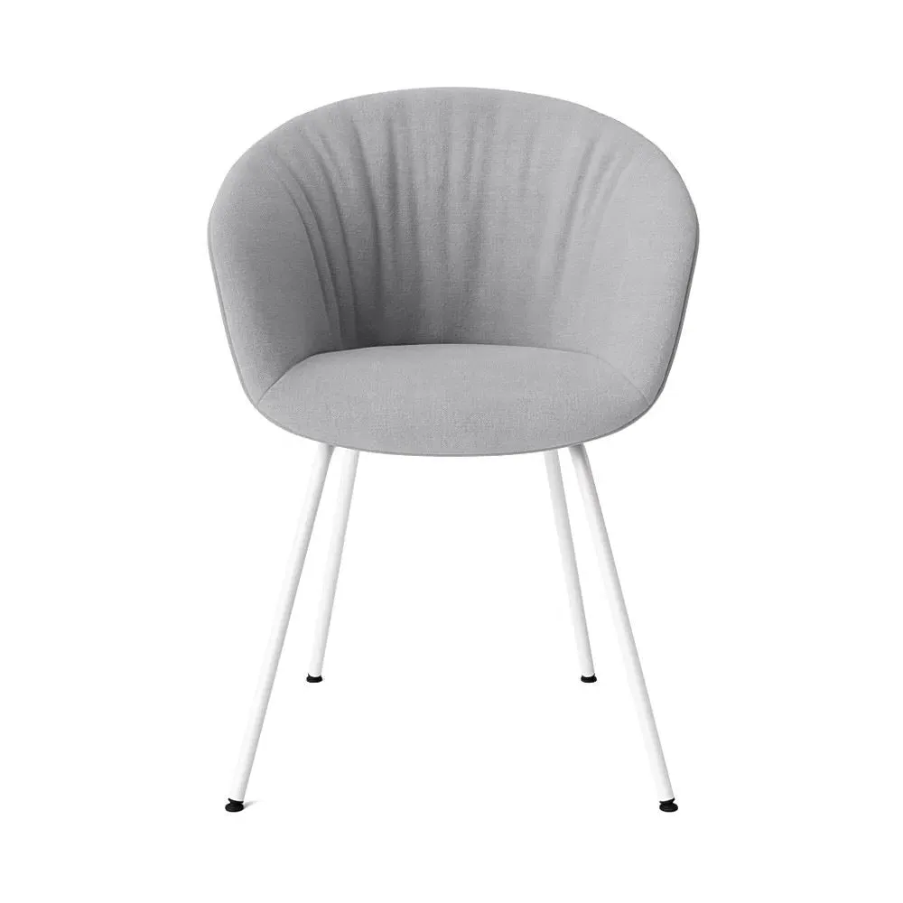 The upholstered chair combines functional simplicity with its quilted shell seat and curved construction. Its powder coated steel base offers stability, while the full upholstery provides optimal comfort and support. The four-legged frame suits various settings, and the streamlined design ensures versatile placement.