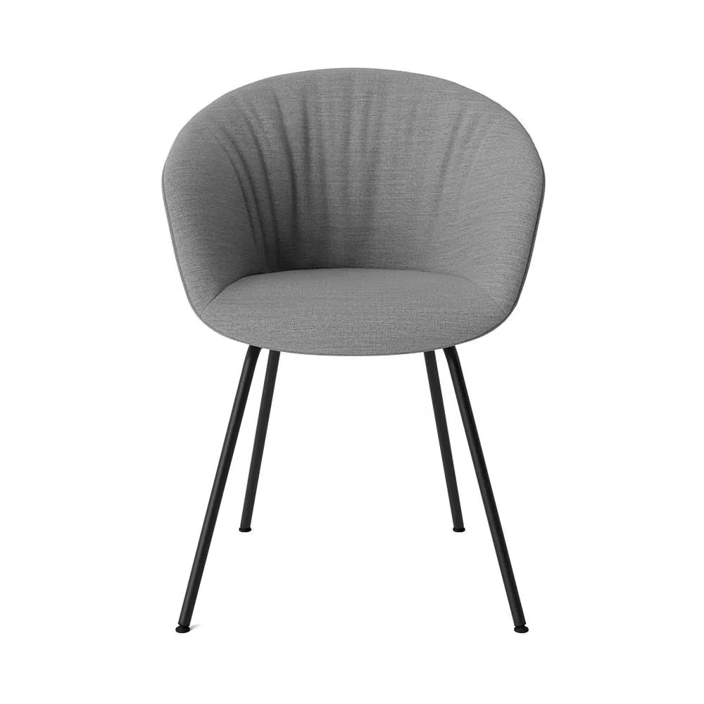 The upholstered chair offers contemporary comfort with its quilted shell design, featuring a curved seat that provides unified support. Its four-legged steel base adds stability and streamlined aesthetics, while the powder-coated finish ensures durability. The full upholstery combines with the curved shell construction to deliver optimal seating comfort.