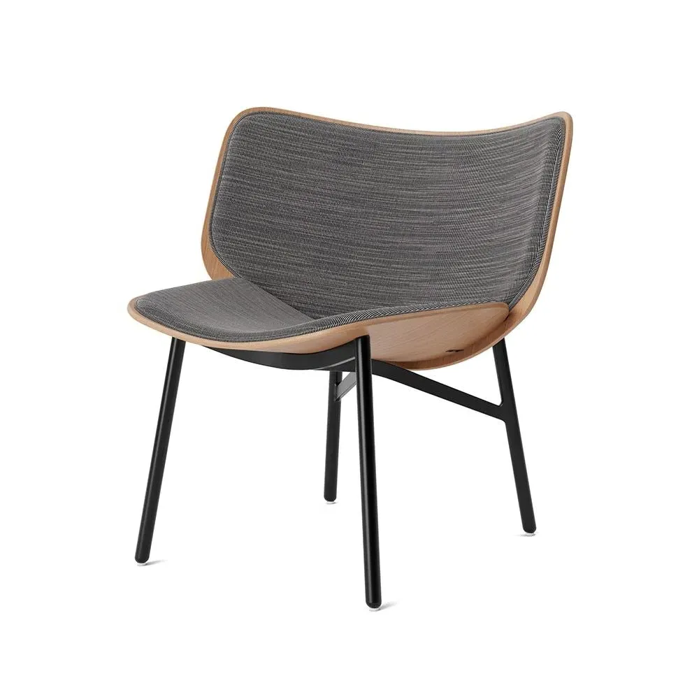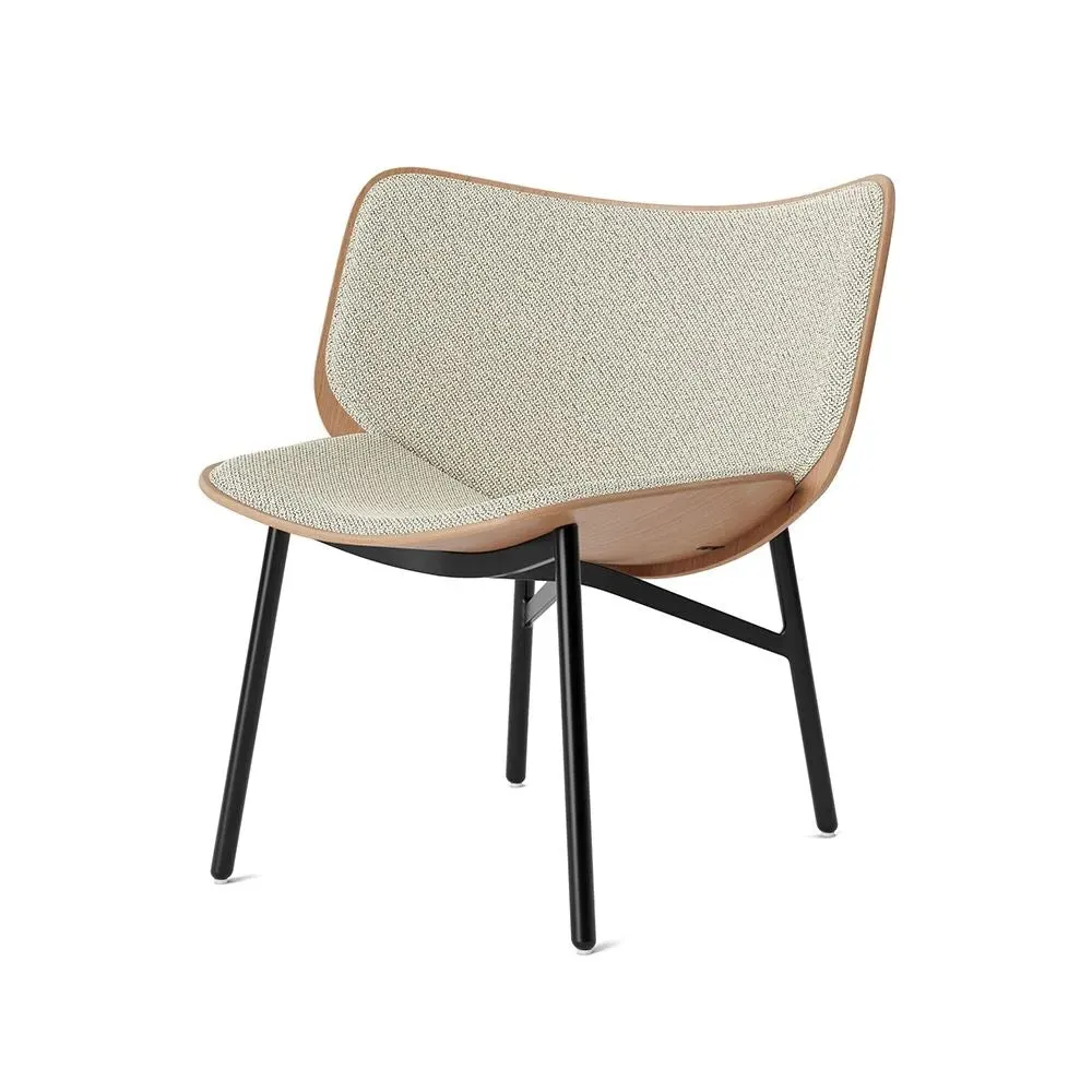 The Dapper lounge chair, designed by Doshi Levien, combines excellent craftsmanship and a neo-industrial aesthetic. Originally created for a London university, the lounge chair features an extra-wide backrest for comfort and elbow support for laptop work or reading. Comprising two moulded oak-veneered plywood shells and powder coated legs, the chair€™s unusual structural shape embodies innovative contemporary design. The Dapper lounge chair is an inviting modern solution for relaxing and working. Available four lacquered oak shell finishes and a wide variety of upholstery options to perfectly suit your space. For expert advice and for more information on the upholstery options we have available, please email sales@hollowaysofludlow.com