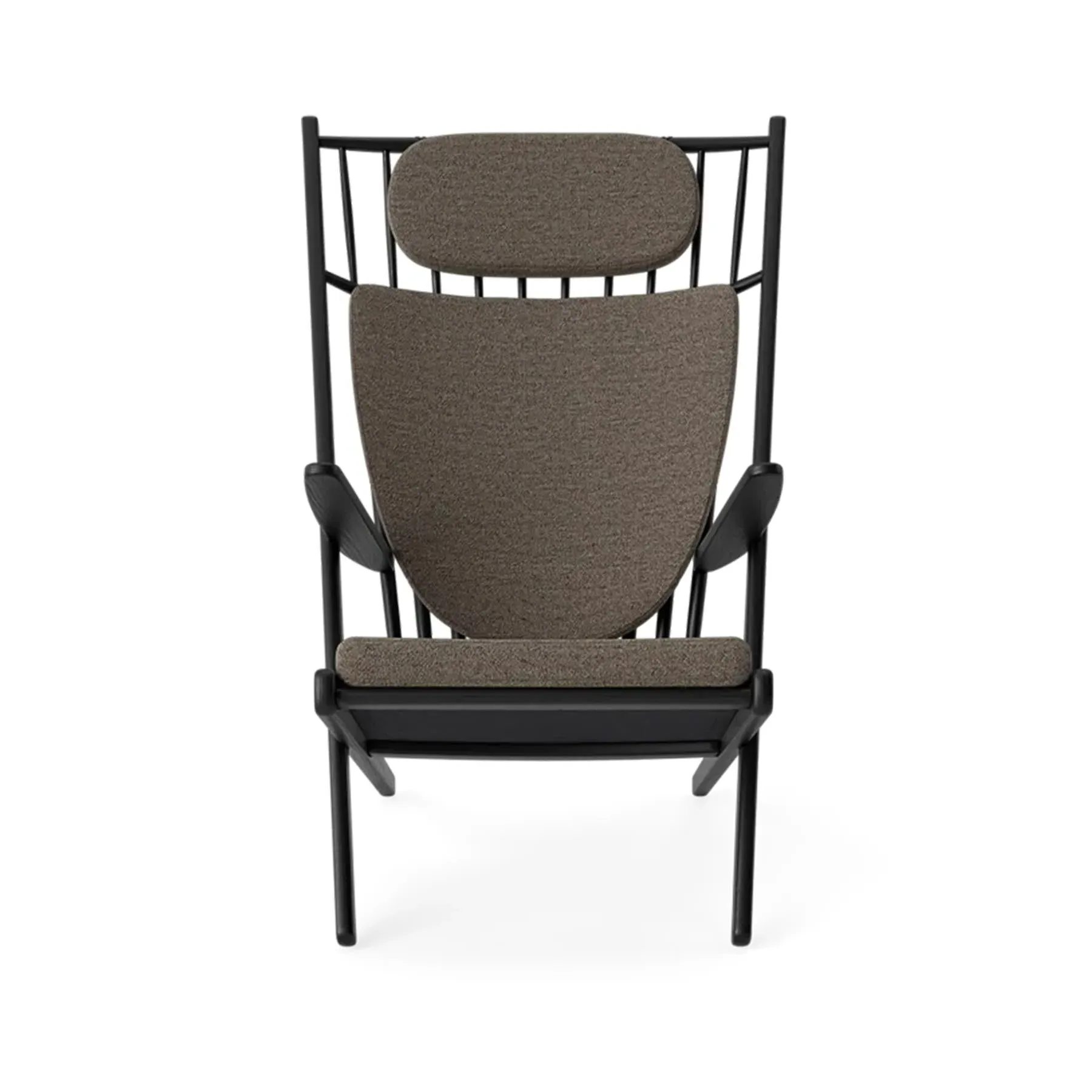 The armchair combines minimalist aesthetics with ergonomic design, featuring three Oekotex certified cold foam cushions with removable covers. Its FSC certified oak frame provides enduring quality while supporting sustainable practices. The sculptural construction offers both comfort and visual appeal, with handcrafted details that highlight skilled cabinetmaking. The black oak finish adds contemporary contrast to the natural boucle upholstery.
