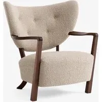 The Wulff ADT2 Lounge Chair offers Danish design heritage with its sculptural armrests and wing-shaped backrest that provide exceptional comfort. Its oiled oak construction ensures durability, while the Hallingdal fabric upholstery adds texture and warmth. The chair's curved contours reflect skilled craftsmanship, and its architectural form suits both reading nooks and living areas.