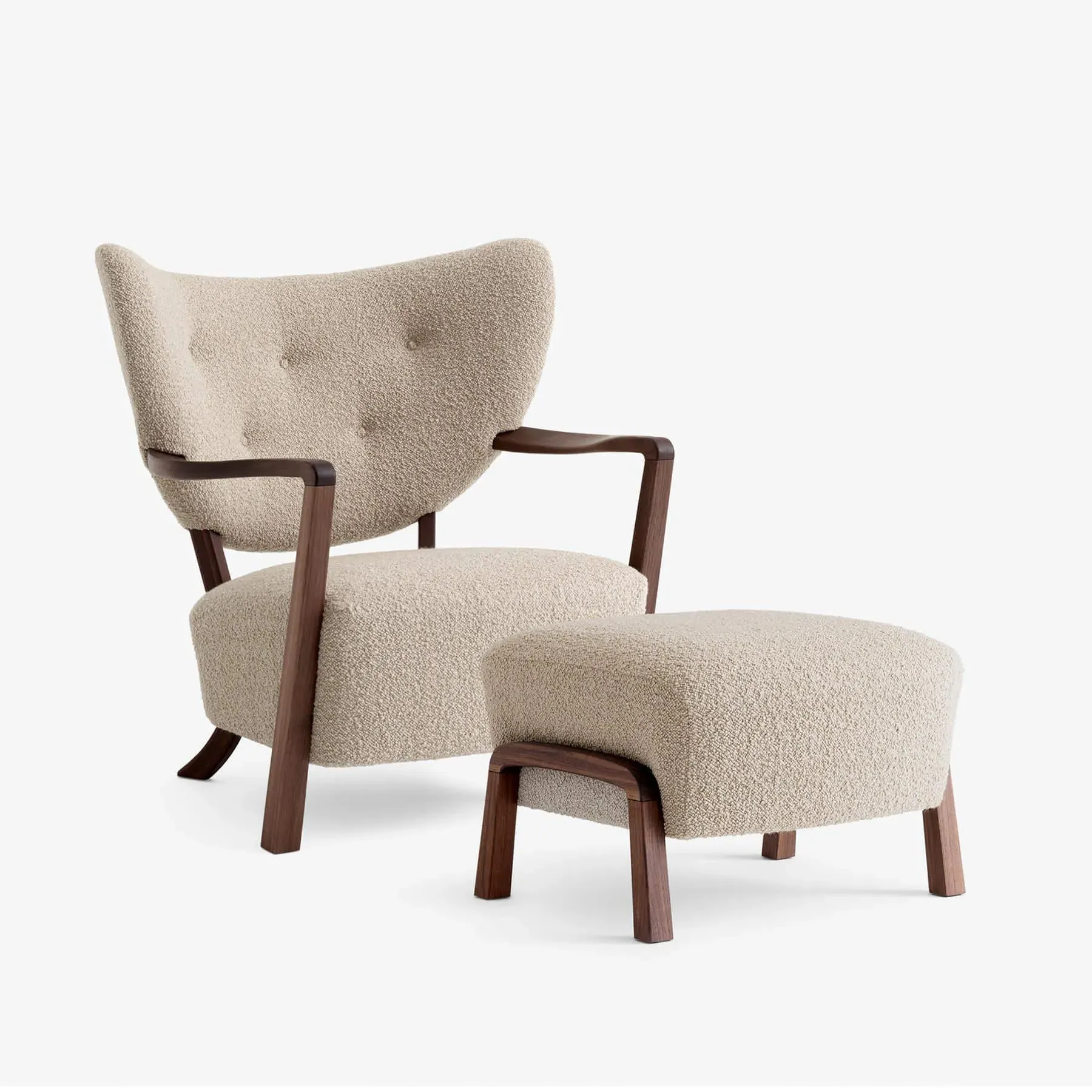 Experience the epitome of Danish Modern design with the Wulff ADT2 Lounge Chair & ADT3 Ottoman by &Tradition. First crafted in a traditional Danish workshop by Cabinetmaker Jørgen Wolff, this iconic duo seamlessly blends form and function, embodying the essence of mid-century sophistication. Crafted with meticulous attention to detail, the Wulff lounge chair boasts sculptural armrests and an expansive, wing-shaped backrest that showcase the finest craftsmanship. Each curve and contour reflects the skilled hands of artisans, resulting in a piece that exudes timeless elegance and unparalleled comfort. Reimagined for contemporary living spaces, the Wulff ADT2 Lounge Chair & ADT3 Ottoman effortlessly elevate any interior with its striking architectural silhouette. Whether as a focal point in a cosy reading nook or as a statement piece in a modern living room, this iconic design invites you to indulge in luxurious relaxation and style.